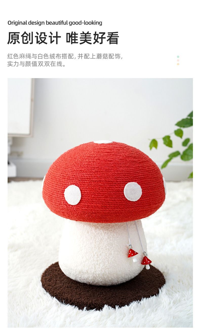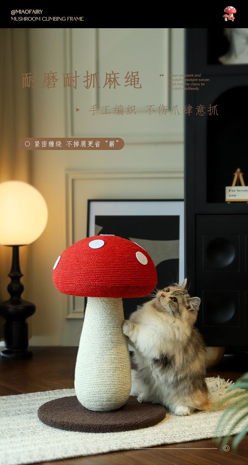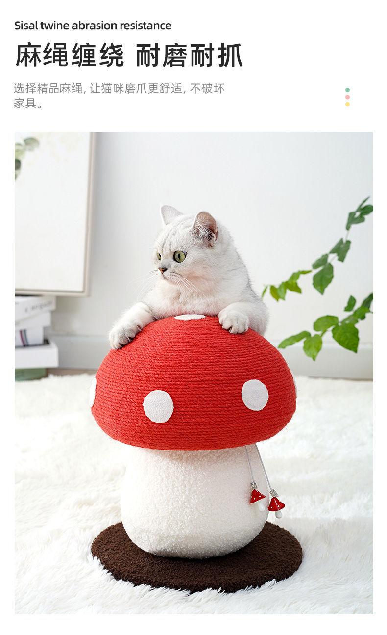 붉은 버섯 고양이 스크래치 보드, 전체 소나무 섬유 고양이 스크래치 기둥 장난감, 내마모성 및 비분해성 수직 고양이 클라이밍 프레임, 작은 아파트, 공간을 차지하지 않음