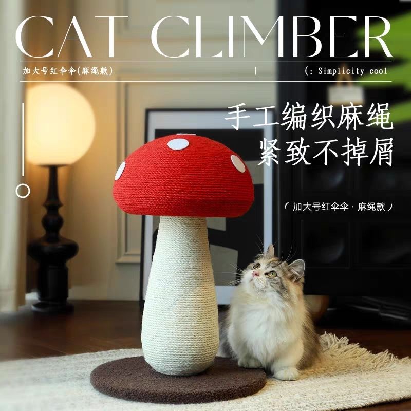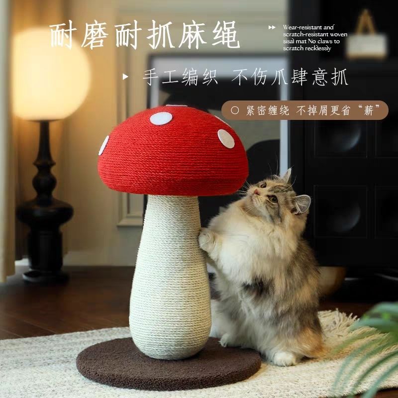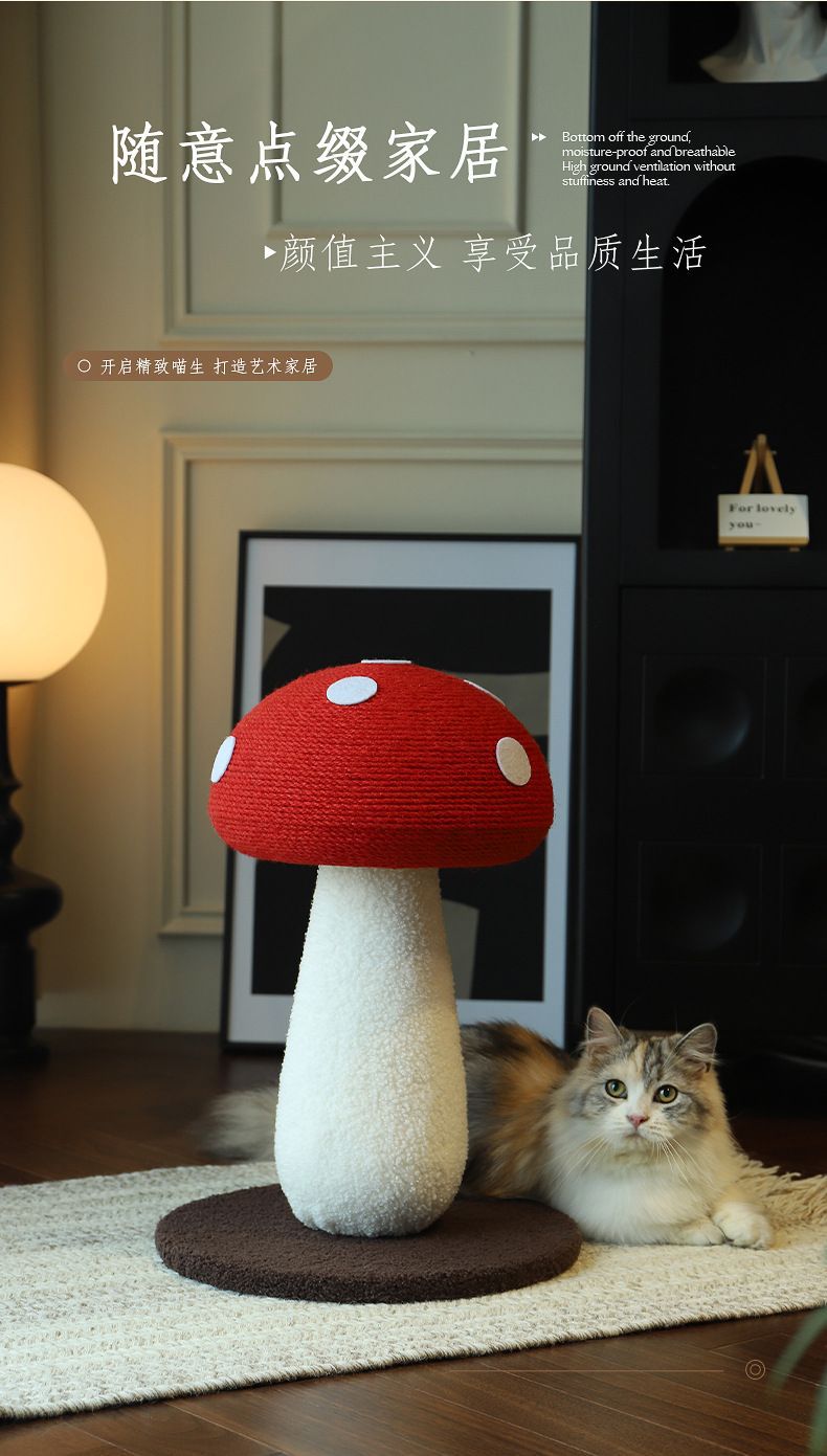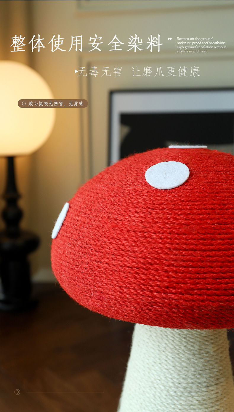 붉은 버섯 고양이 스크래치 보드, 전체 소나무 섬유 고양이 스크래치 기둥 장난감, 내마모성 및 비분해성 수직 고양이 클라이밍 프레임, 작은 아파트, 공간을 차지하지 않음