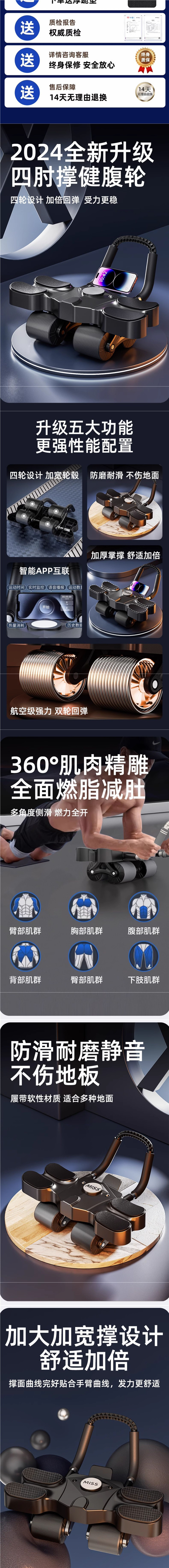 [특허받은 4륜 4팔꿈치 모델-블랙] 두꺼워진 무릎 패드/스마트 APP 상호 연결/자동 리바운드/휴대폰 홀더 포함