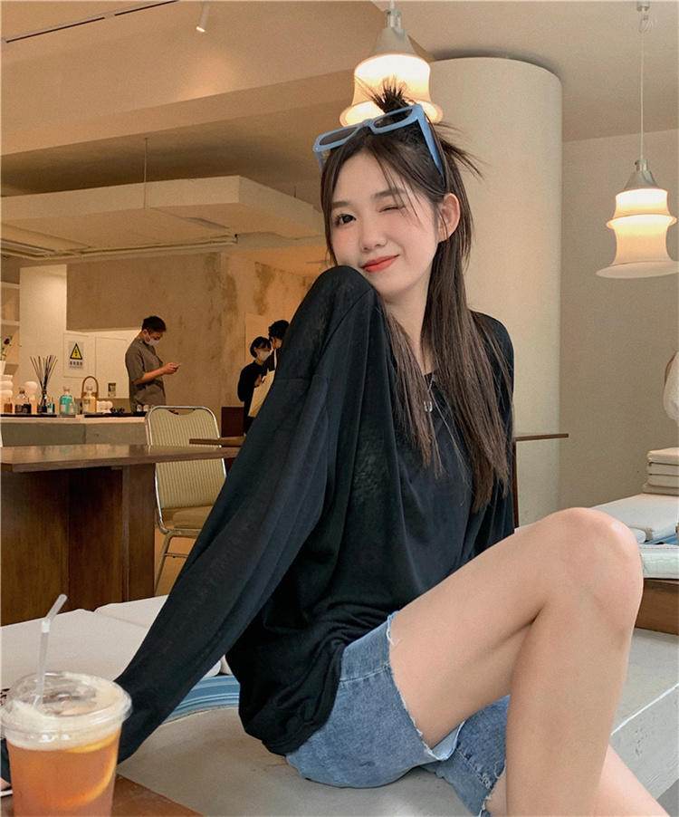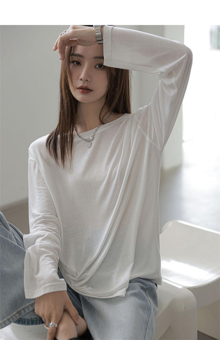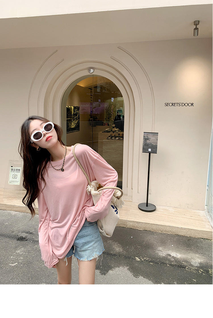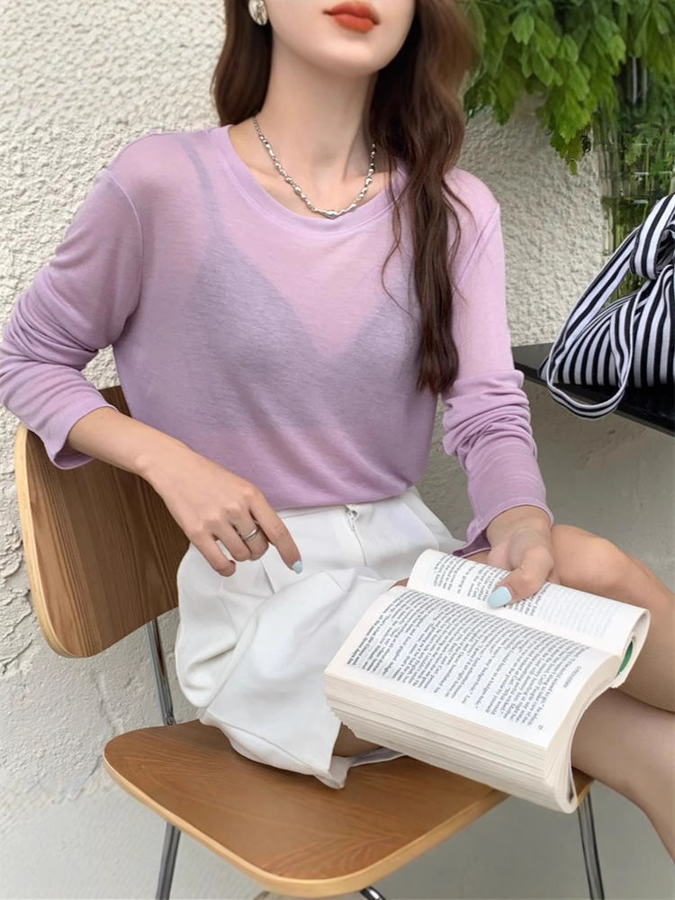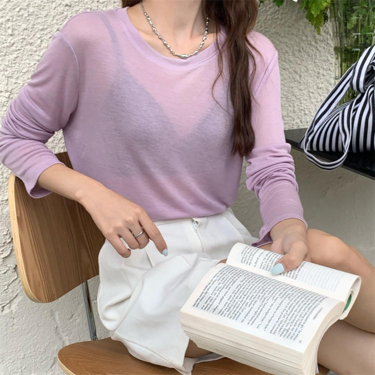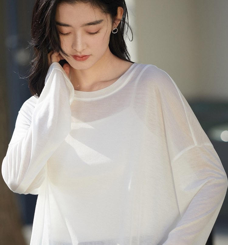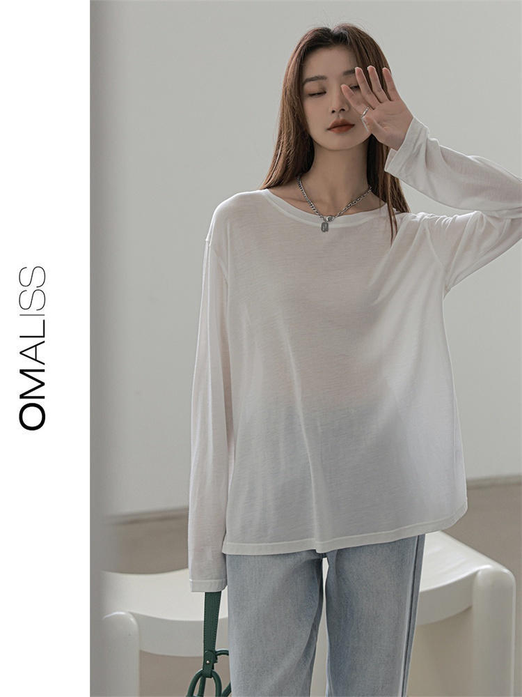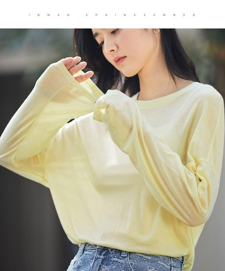 자외선 차단 긴팔 티셔츠, 라운드넥 텐셀 루즈 리오셀 마스크 코트, 여성용 솔리드 컬러 레이지 스타일