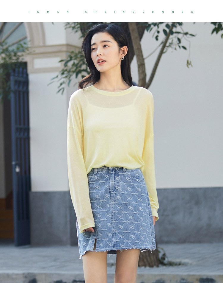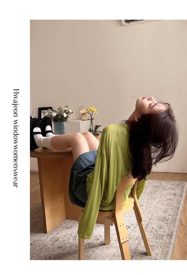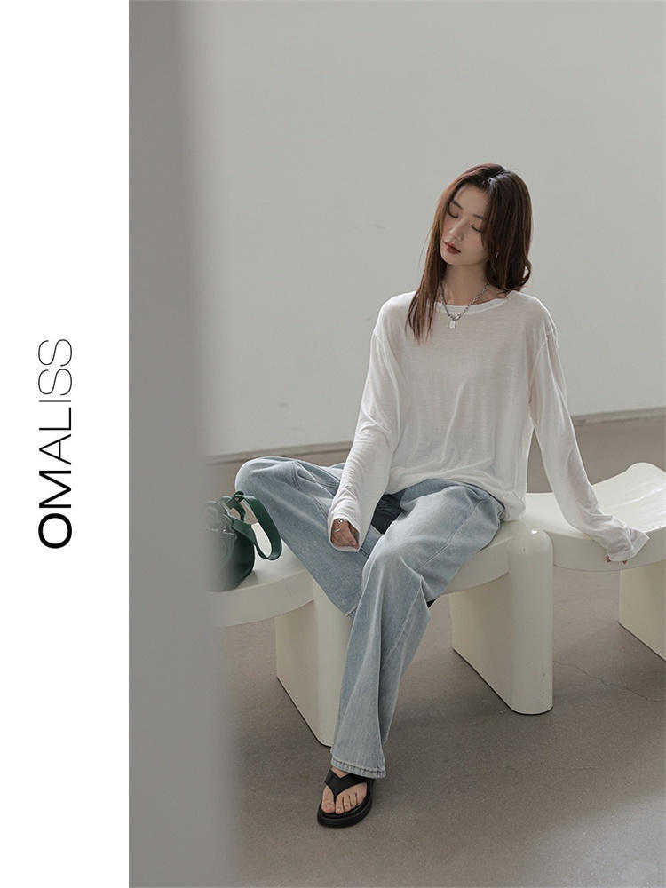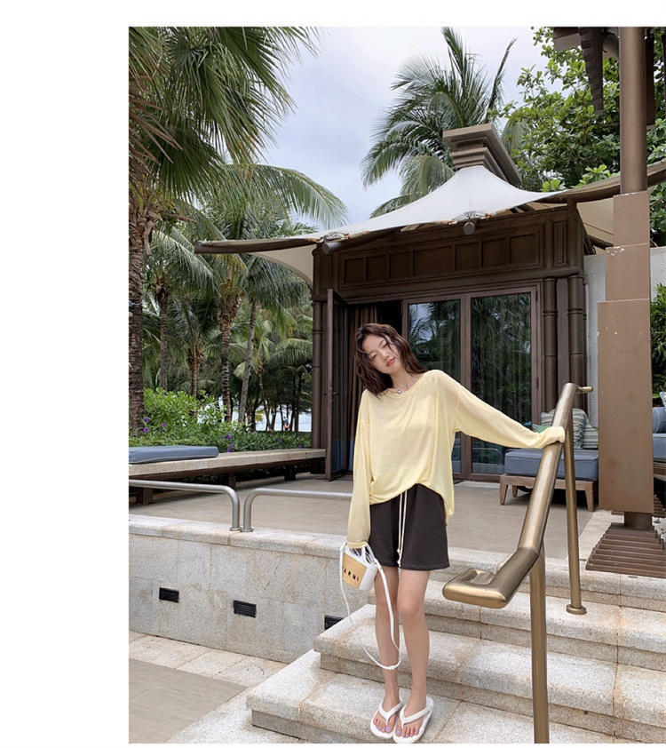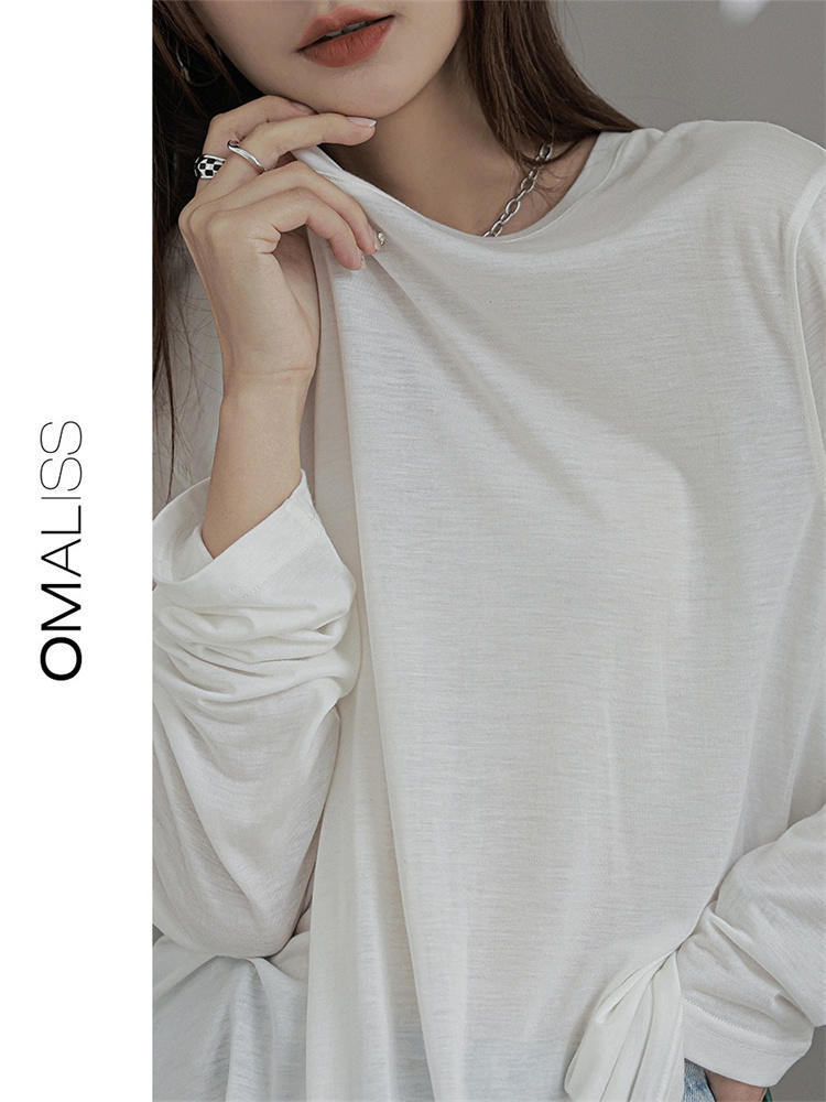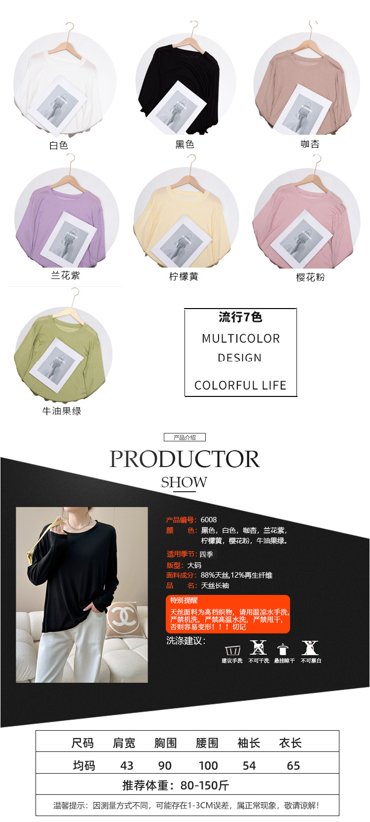 자외선 차단 긴팔 티셔츠, 라운드넥 텐셀 루즈 리오셀 마스크 코트, 여성용 솔리드 컬러 레이지 스타일