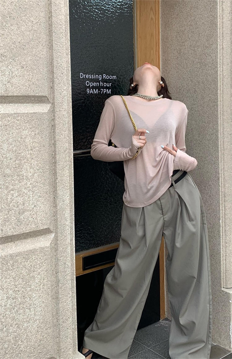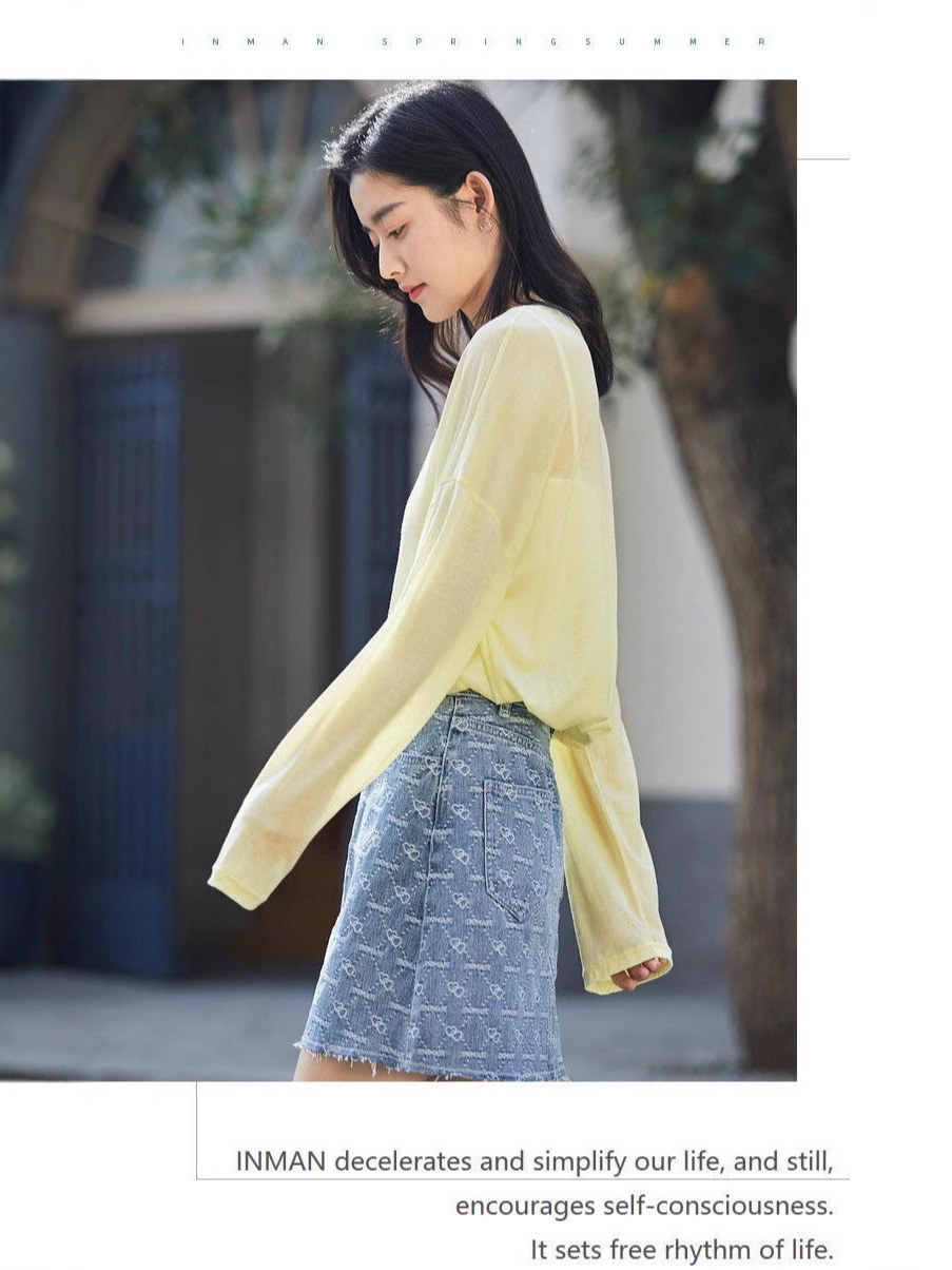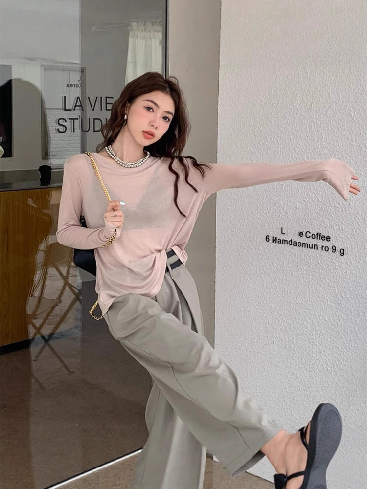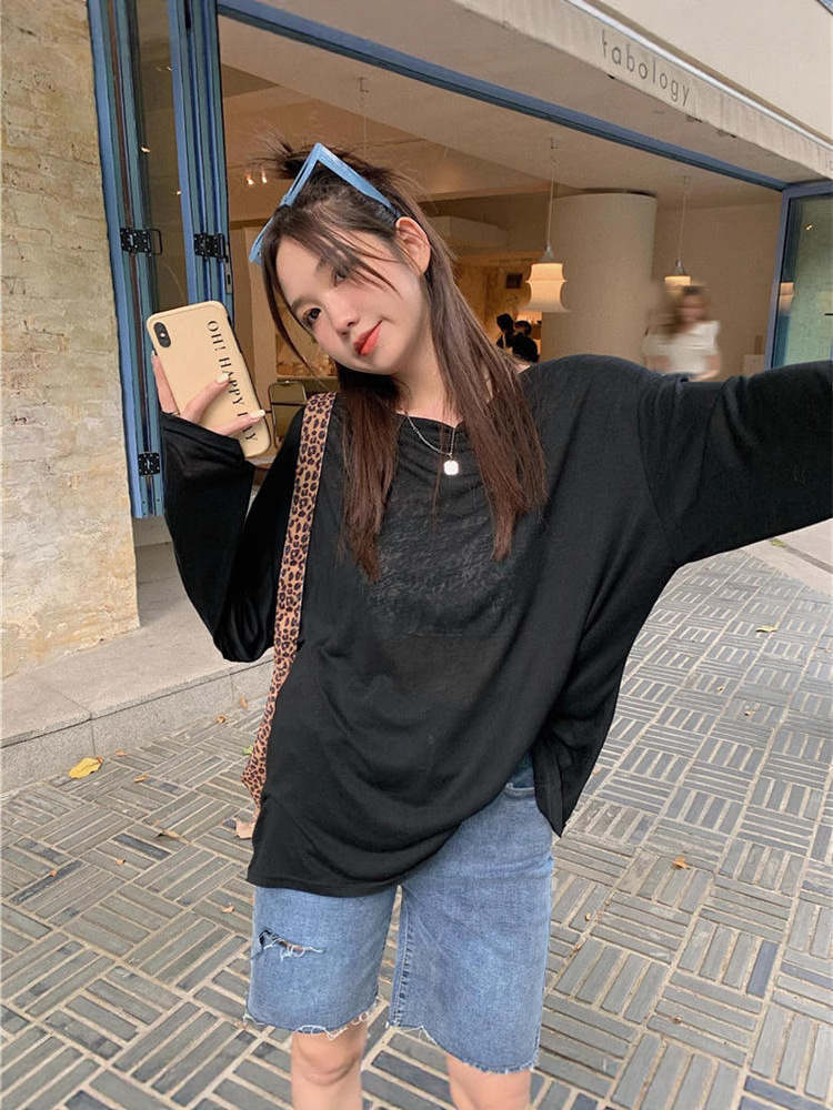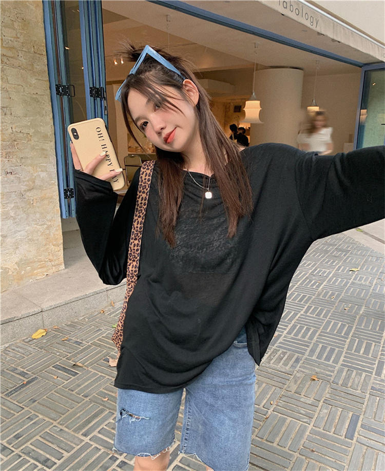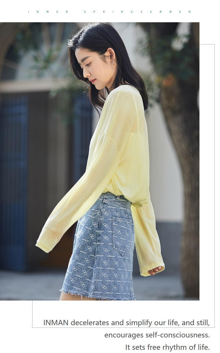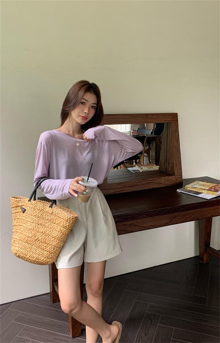 자외선 차단 긴팔 티셔츠, 라운드넥 텐셀 루즈 리오셀 마스크 코트, 여성용 솔리드 컬러 레이지 스타일