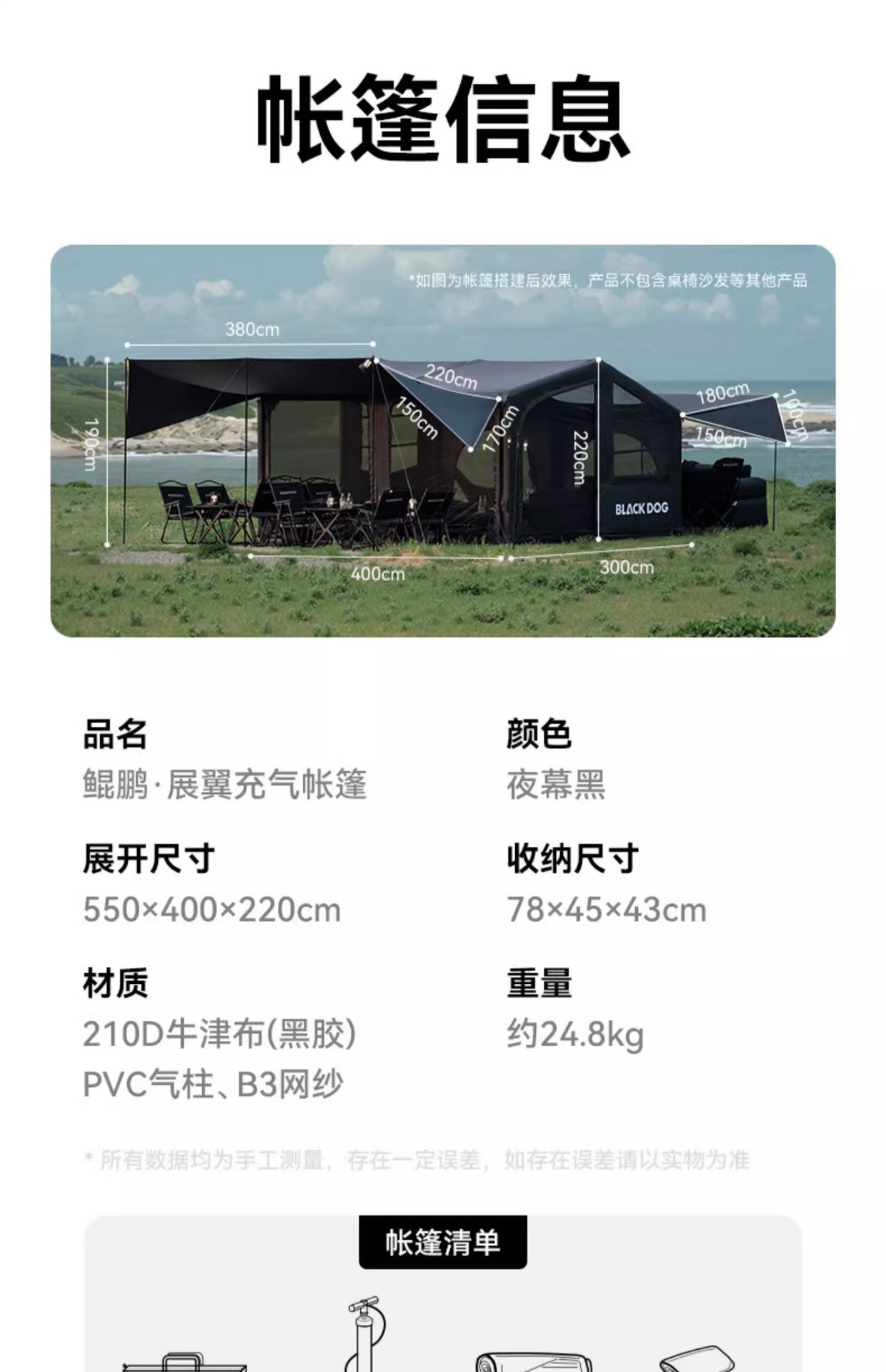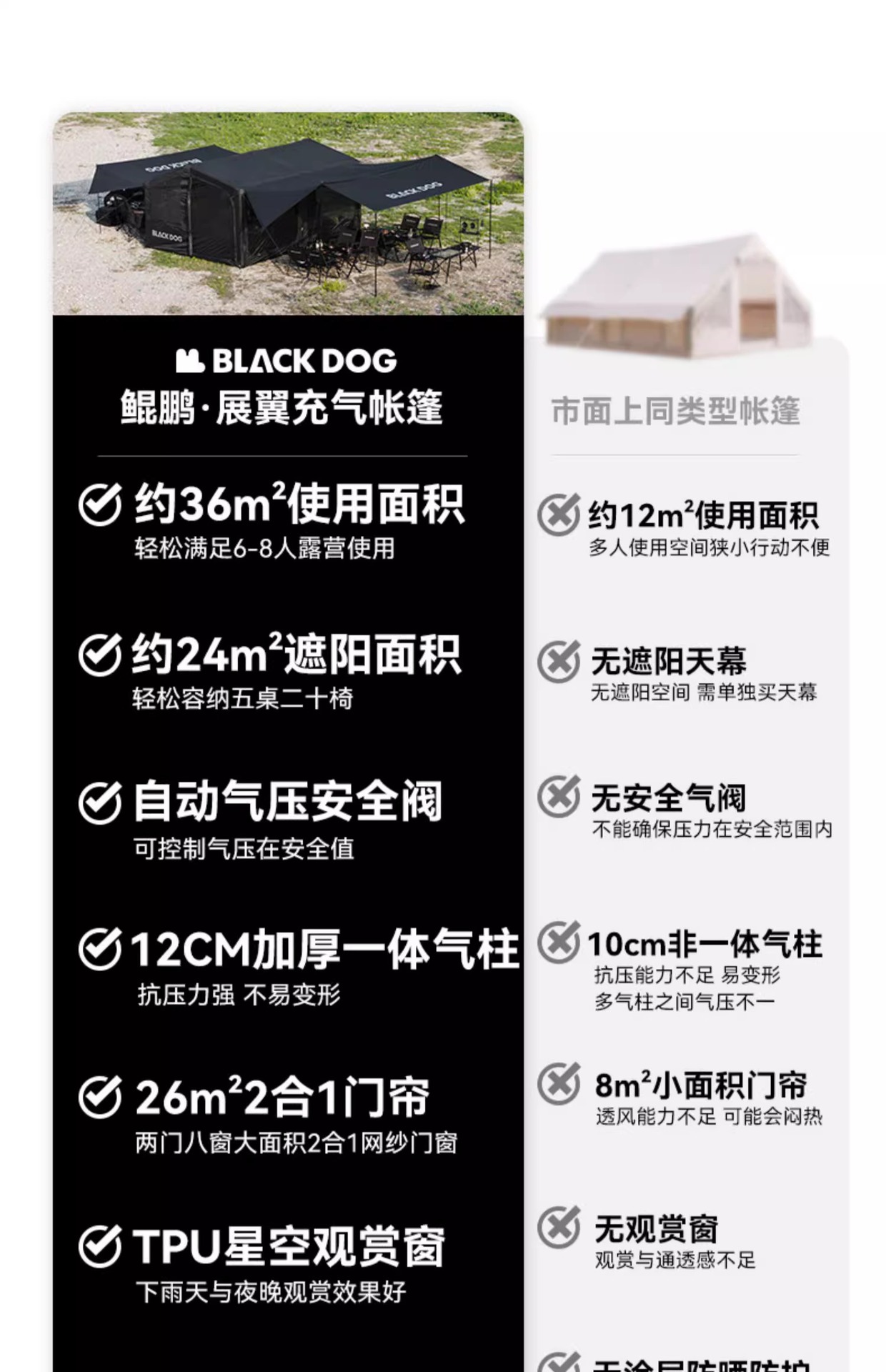 스팟 블랙독 정품 Kunpeng-Zhanyi 풍선 텐트 [확장 캐노피 + 레인 커버 포함]