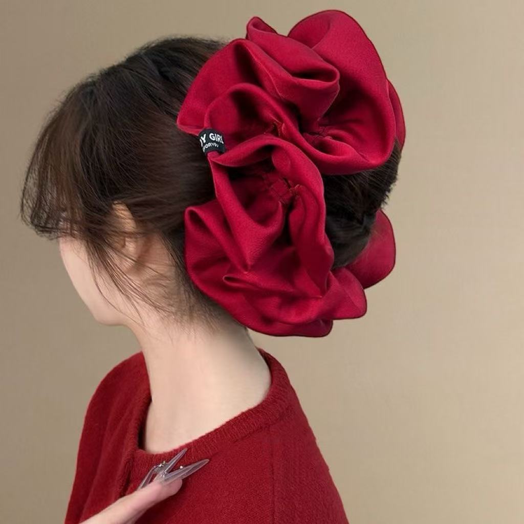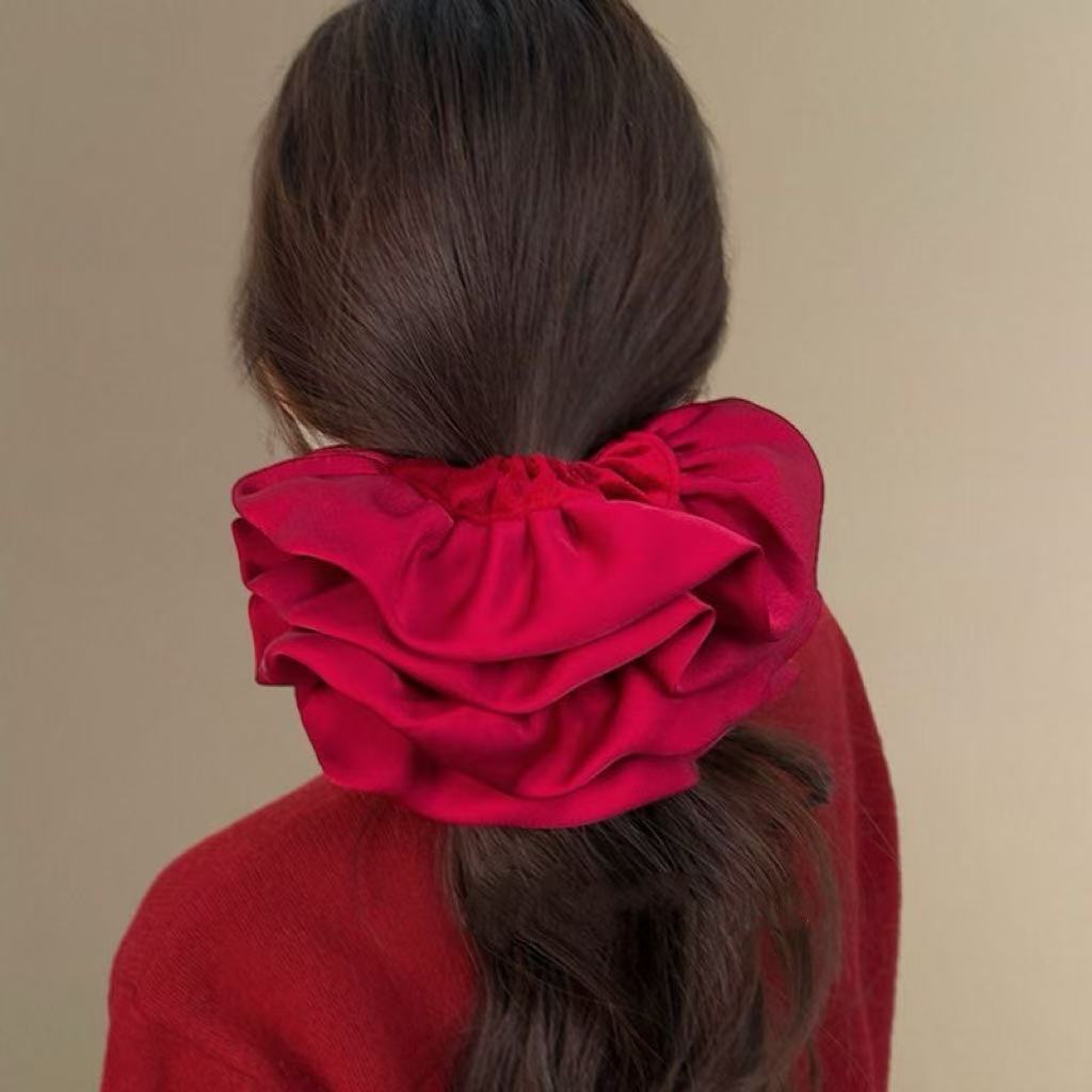 2#빨간색 이중층 패브릭 머리끈