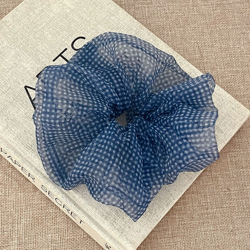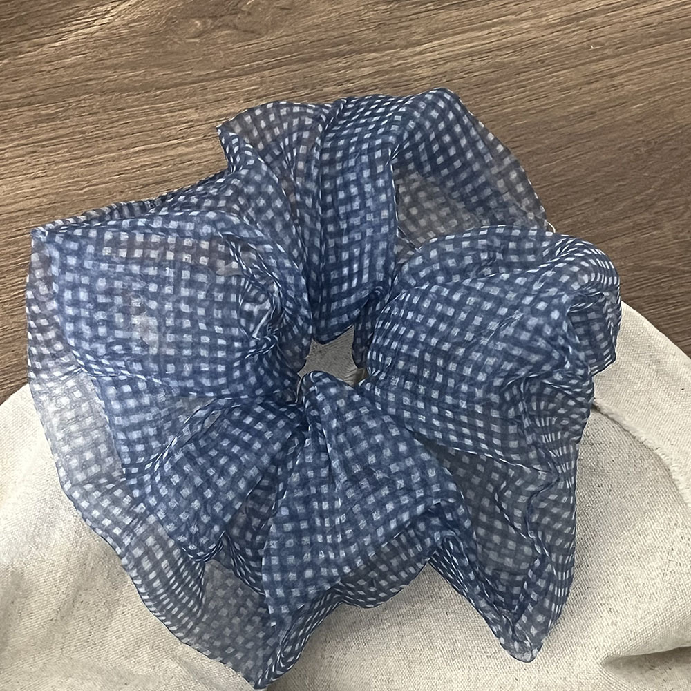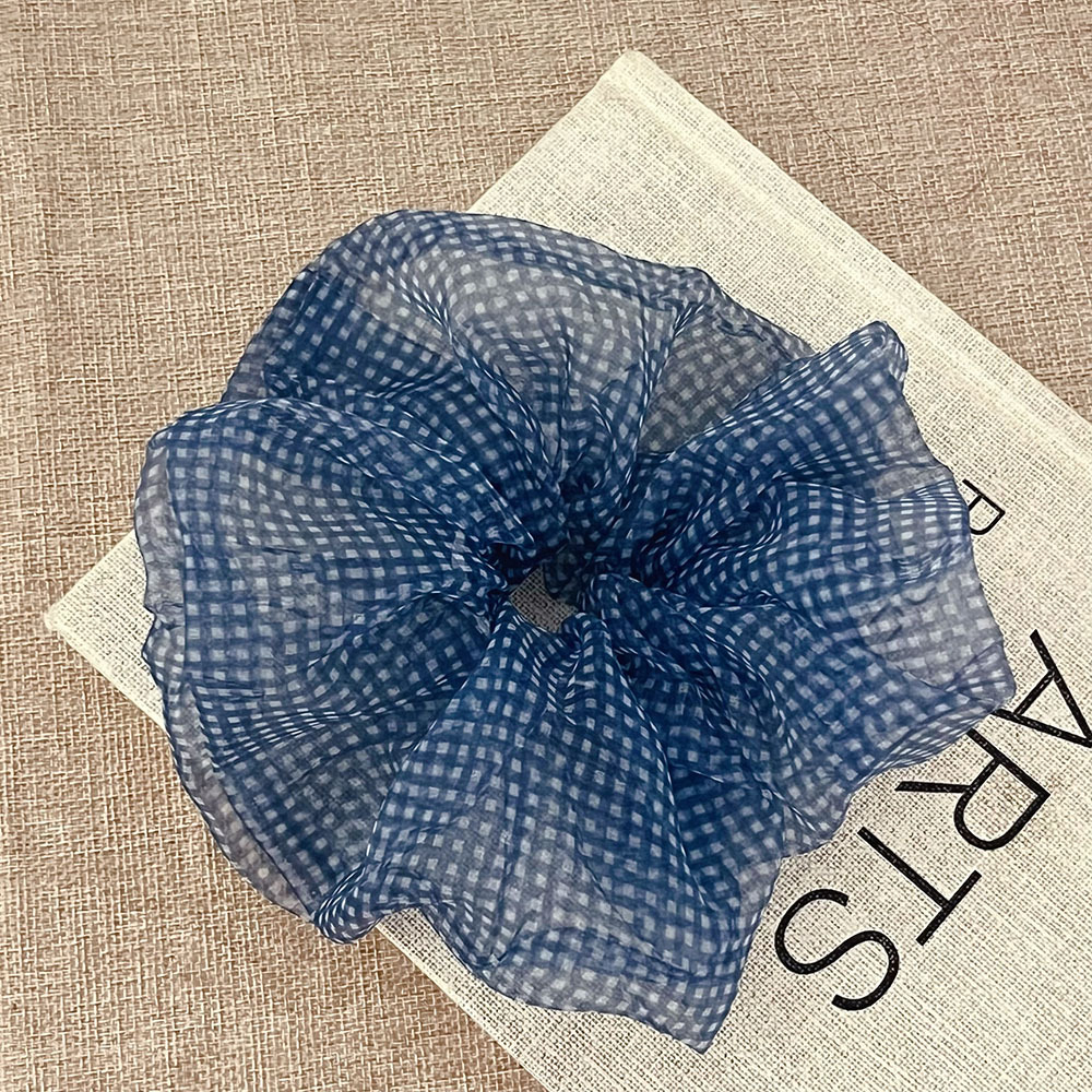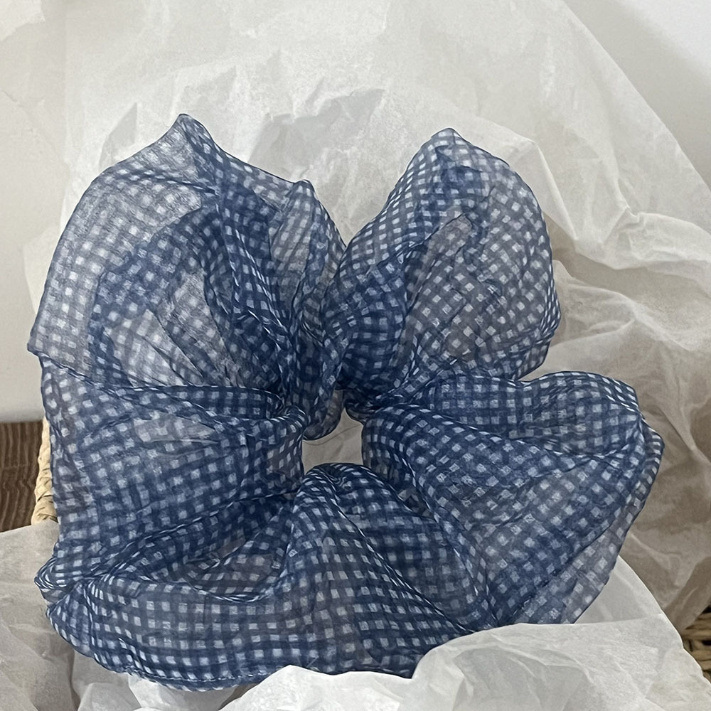 환상적인 프렌치 블루 체크 무늬 머리끈, 고급 버블 메쉬, 심플한 새로운 스타일의 머리끈, 여성용 고무줄 헤어 액세서리