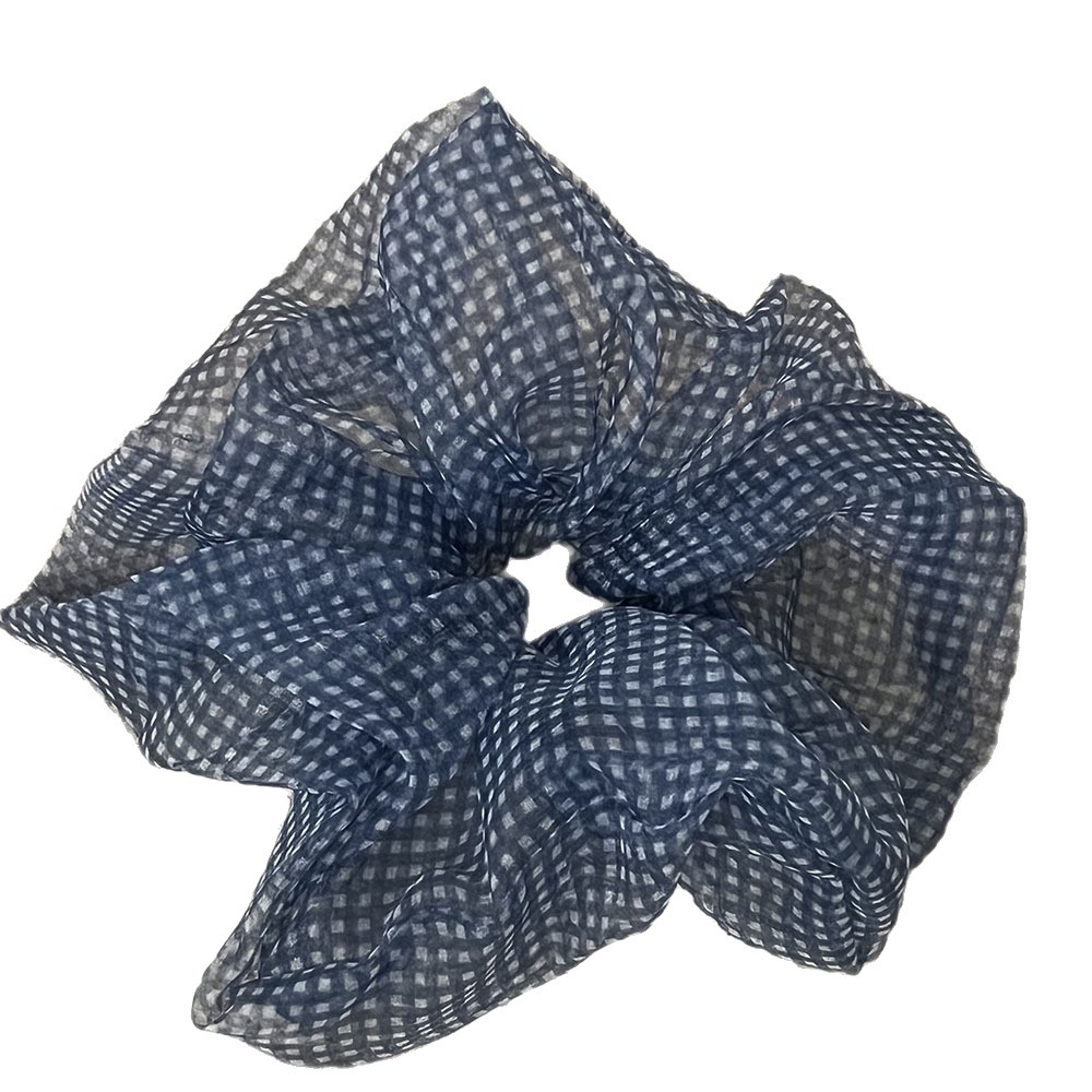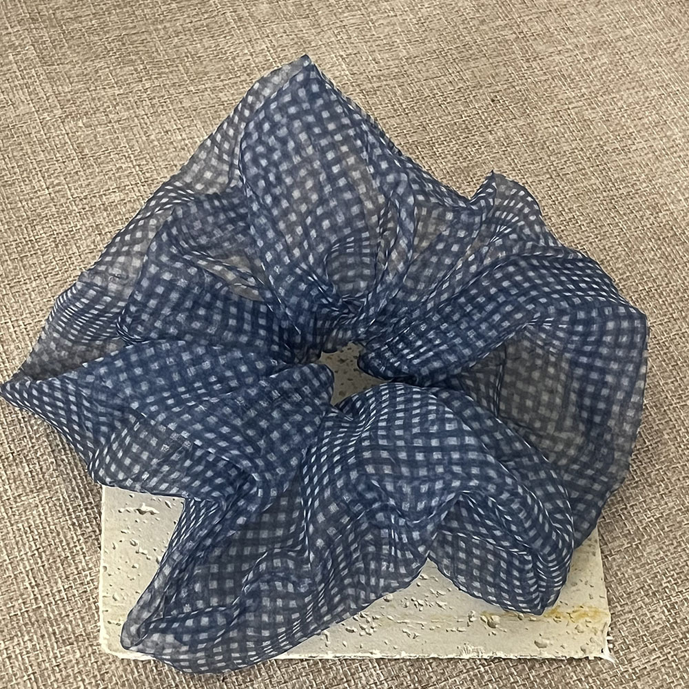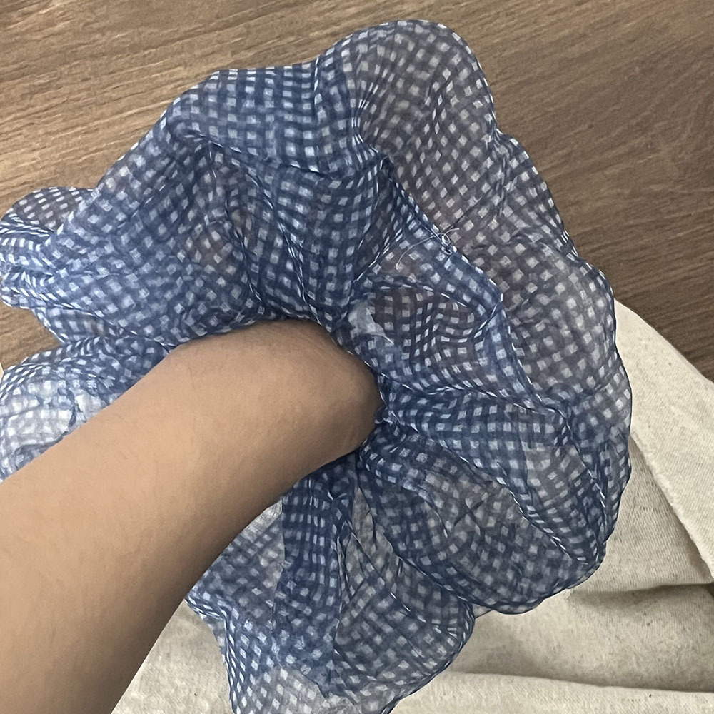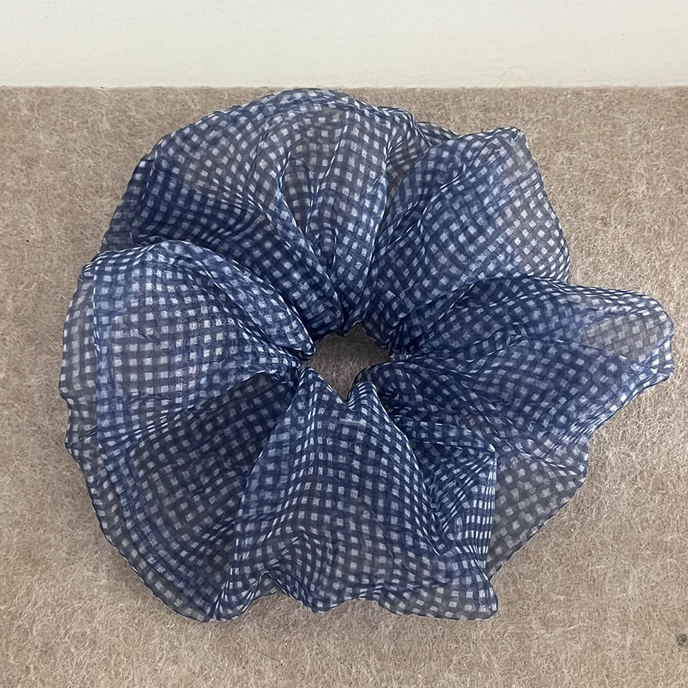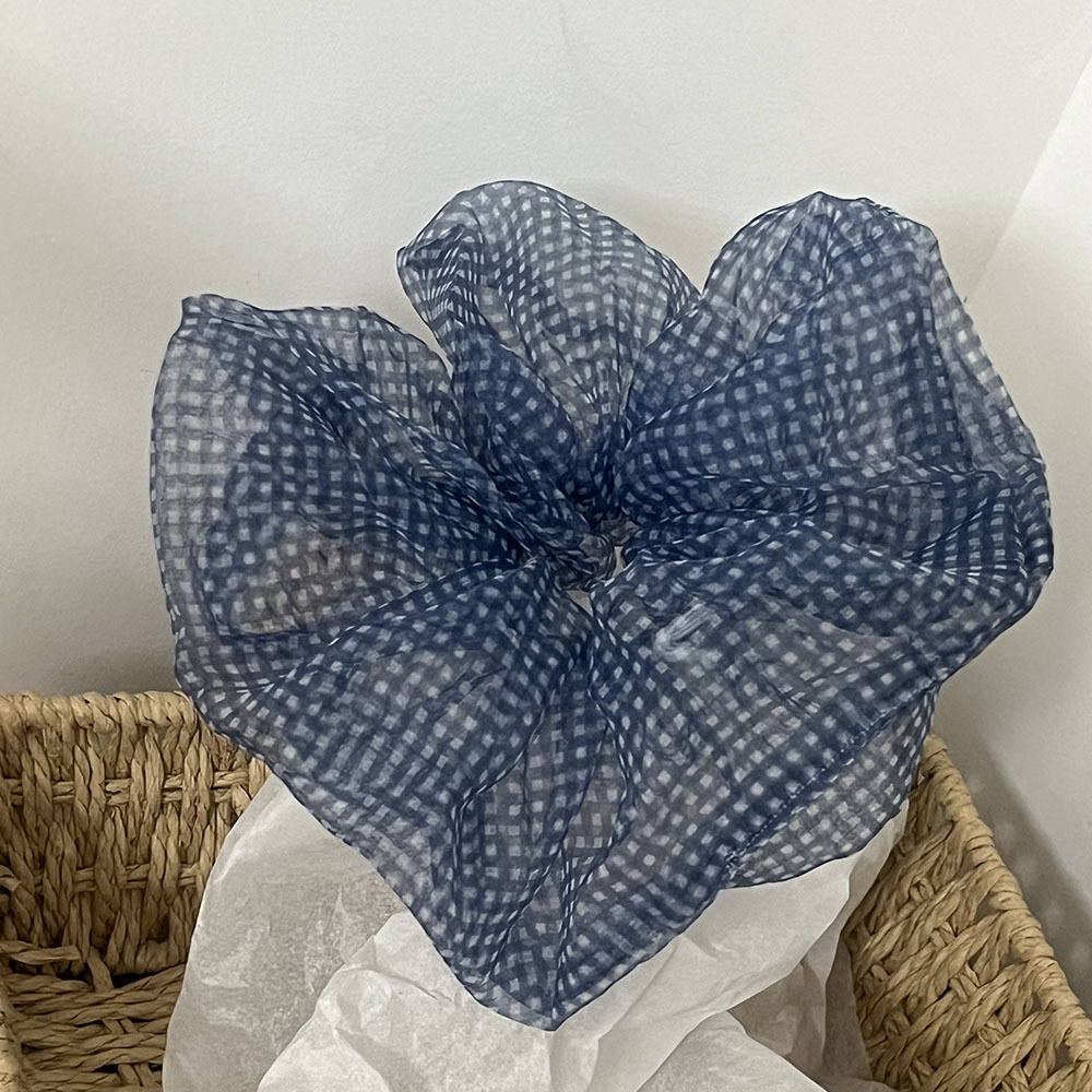 환상적인 프렌치 블루 체크 무늬 머리끈, 고급 버블 메쉬, 심플한 새로운 스타일의 머리끈, 여성용 고무줄 헤어 액세서리