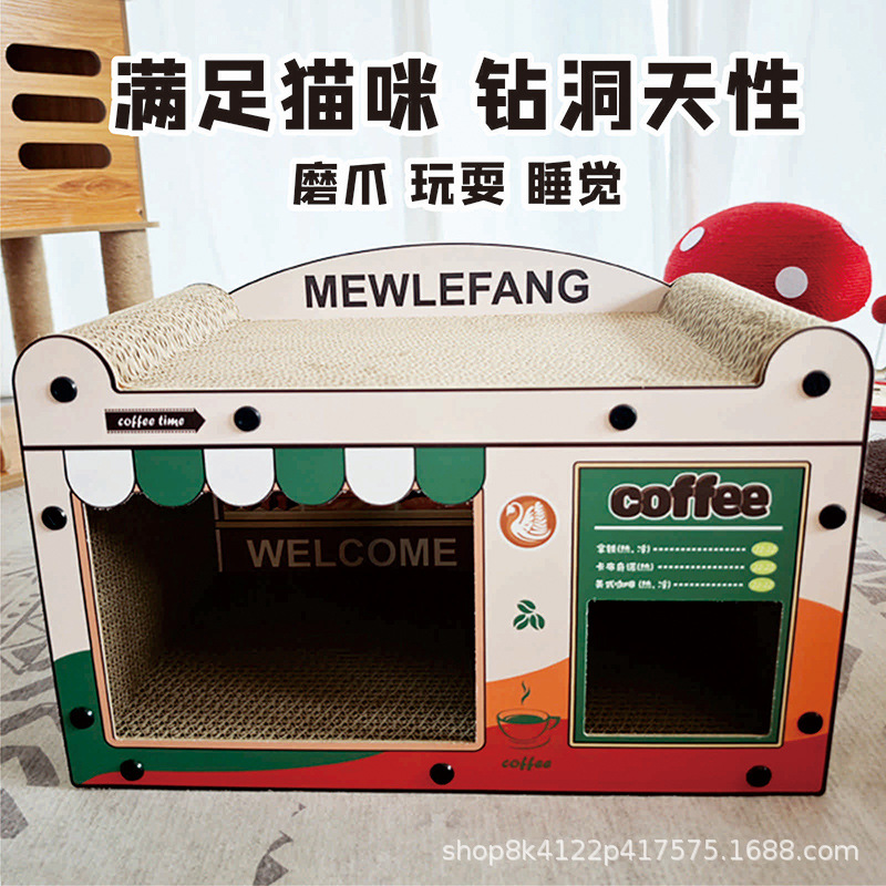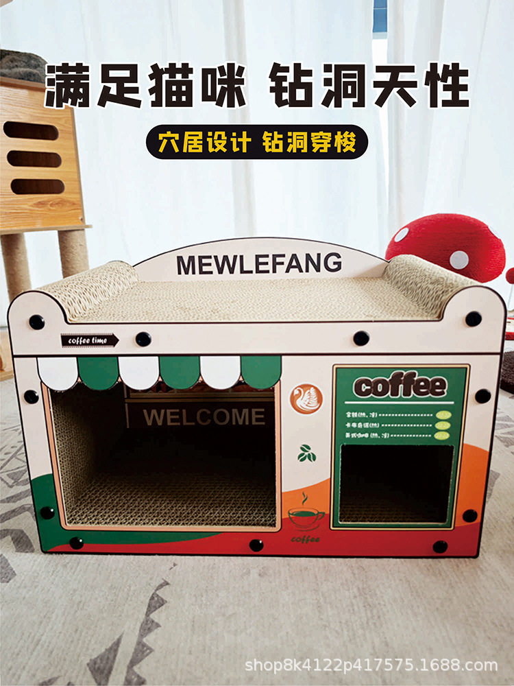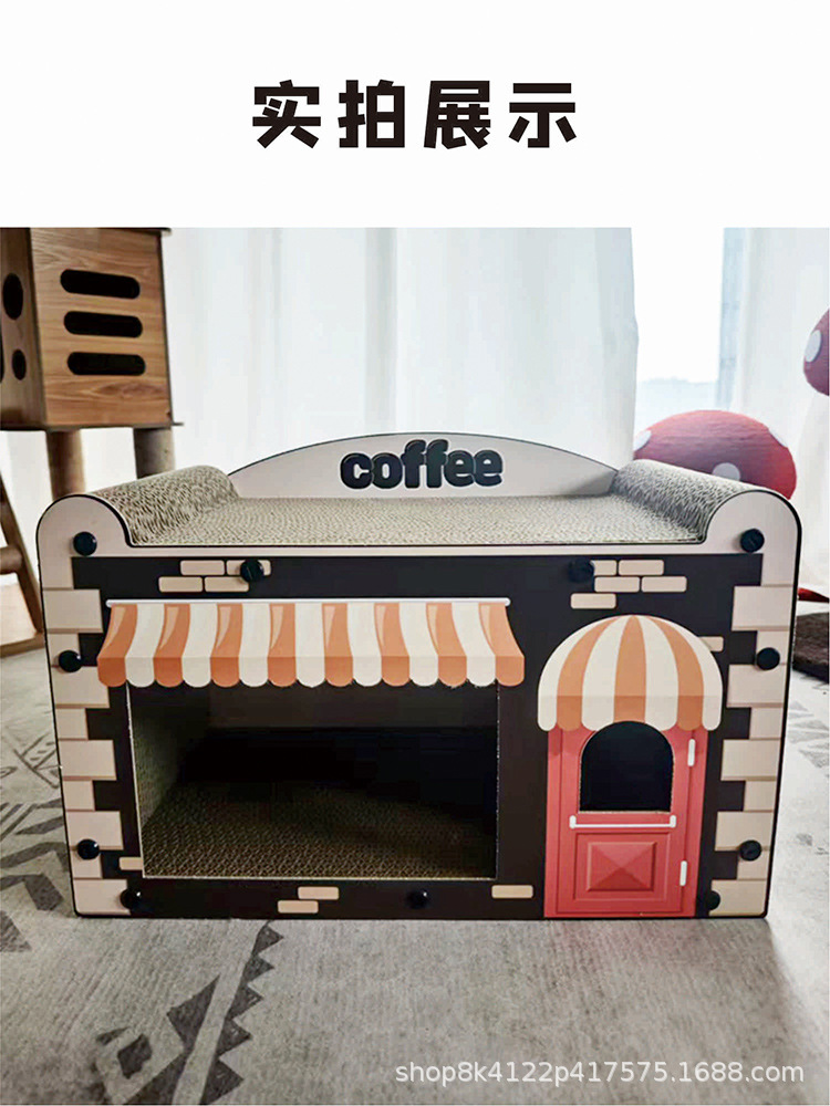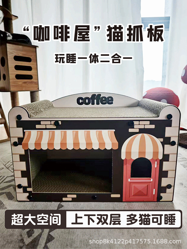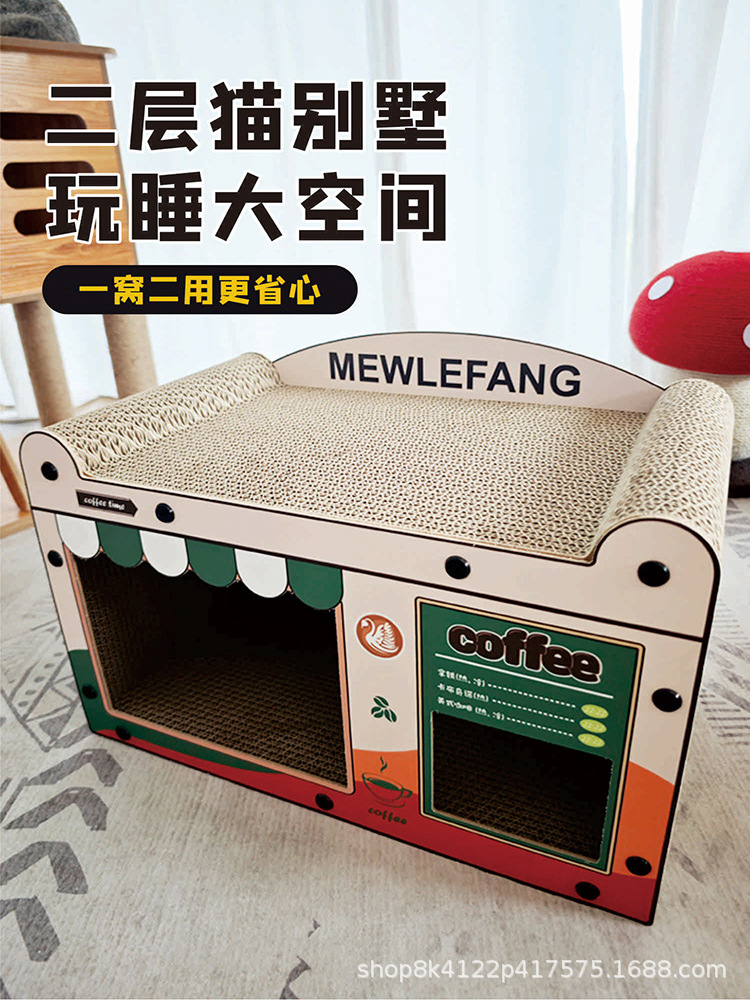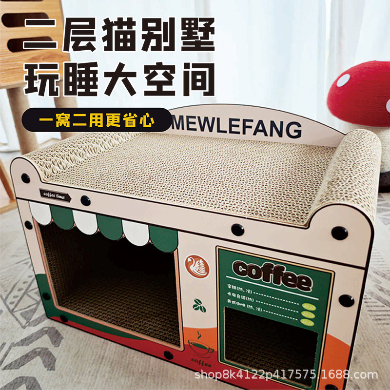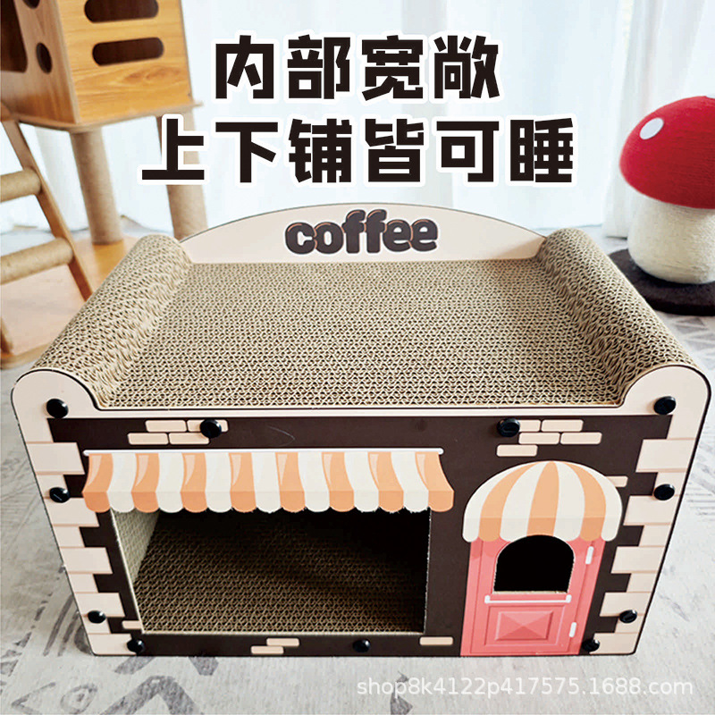 고양이 스크래치 보드 새로운 커피 하우스 스크래치 방지, 내마모성 및 부스러기 낙하가 쉽지 않은 수직 소파 이중층 고양이 둥지 올인원 올 시즌 사용 가능