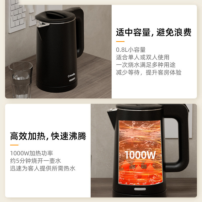 Creade 호텔 주전자 호텔 가정용 304 스테인레스 스틸 전기 주전자 공장 직접 공급