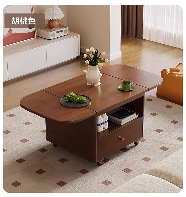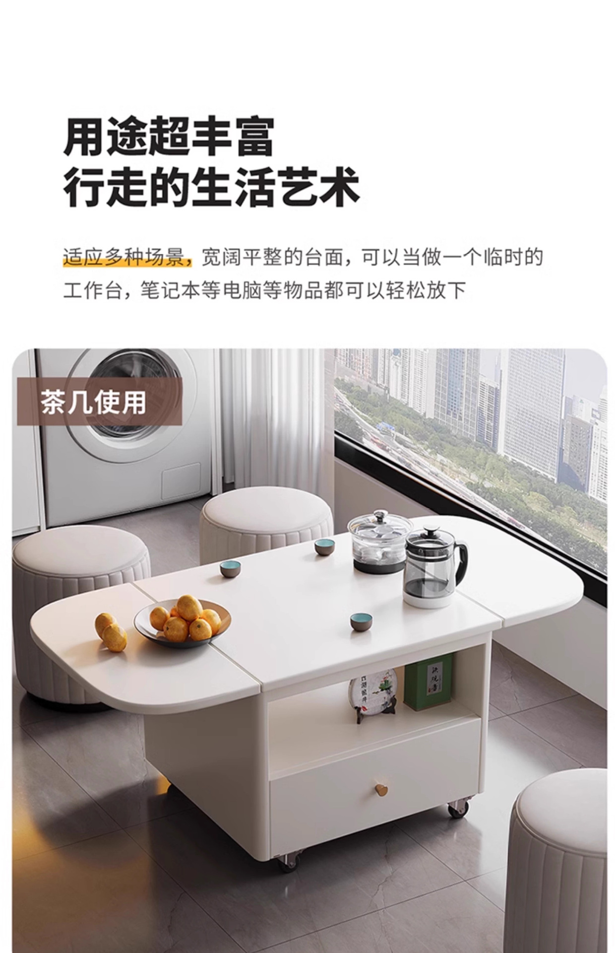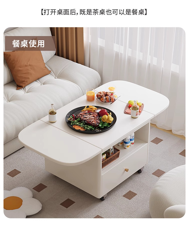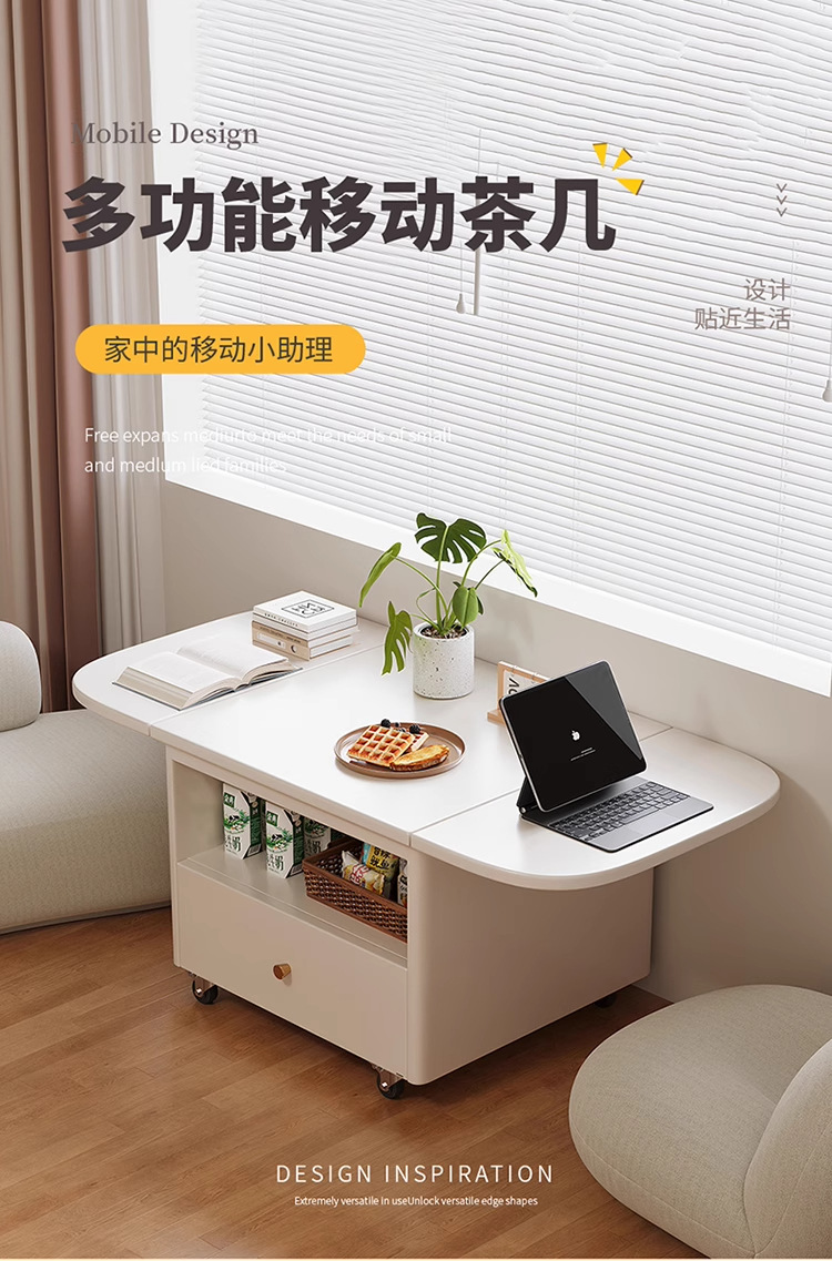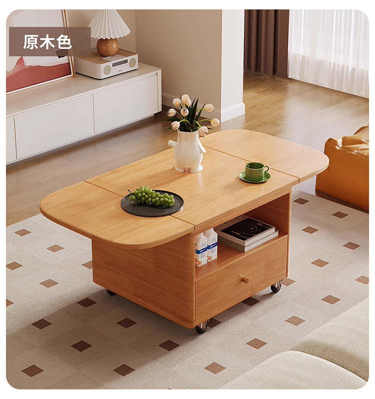 크림 스타일 접이식 커피 테이블 사이드 테이블 간단한 현대 작은 아파트 단단한 나무 거실 모바일 티 테이블 발코니 트롤리