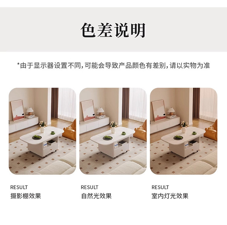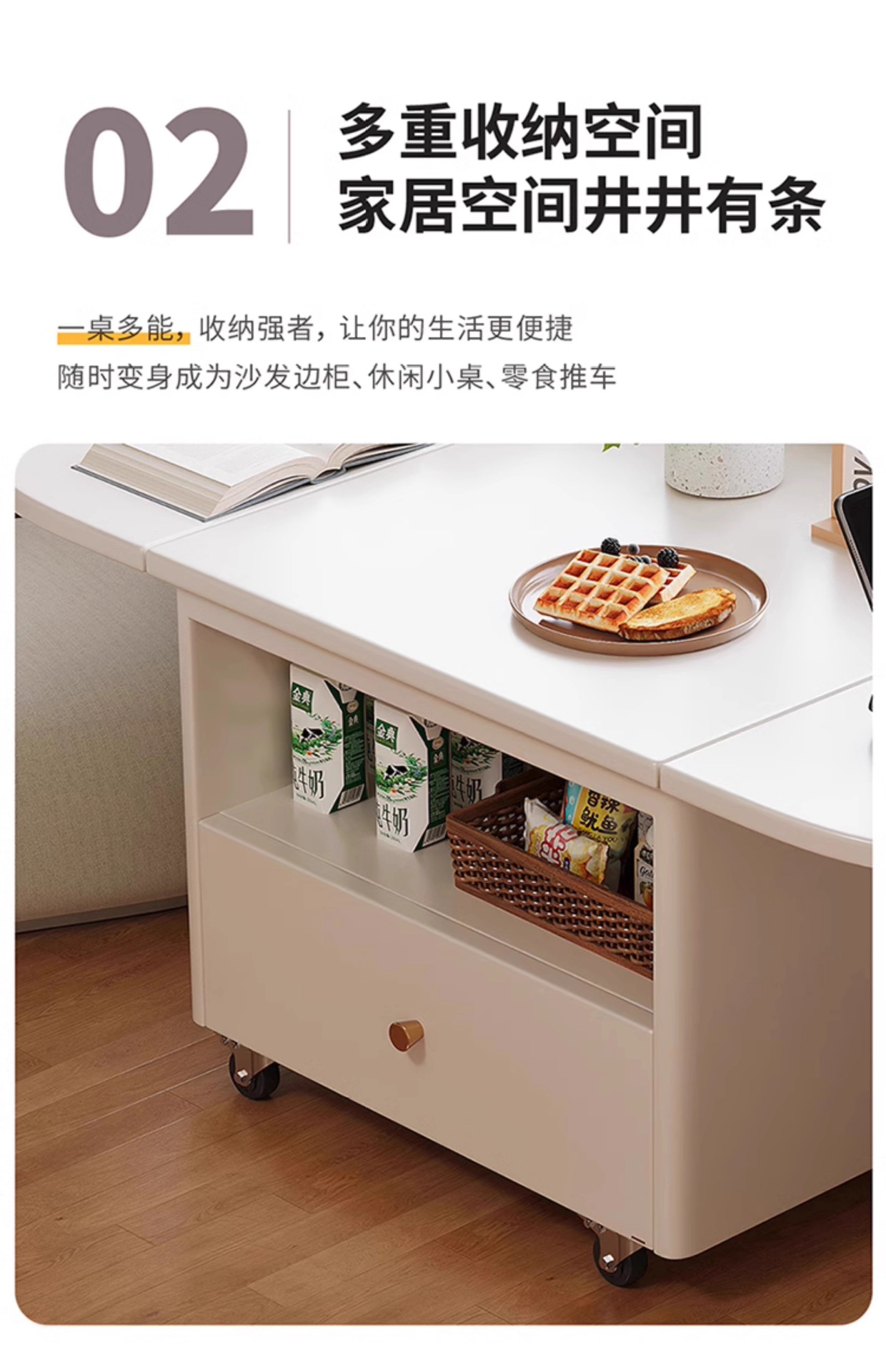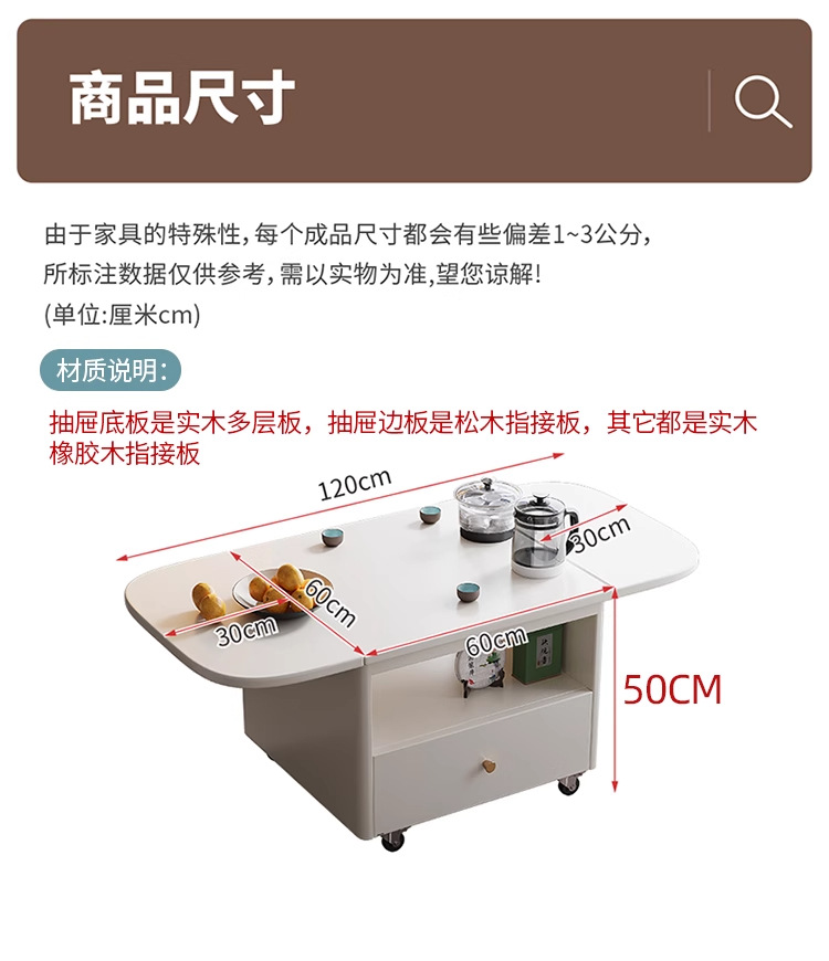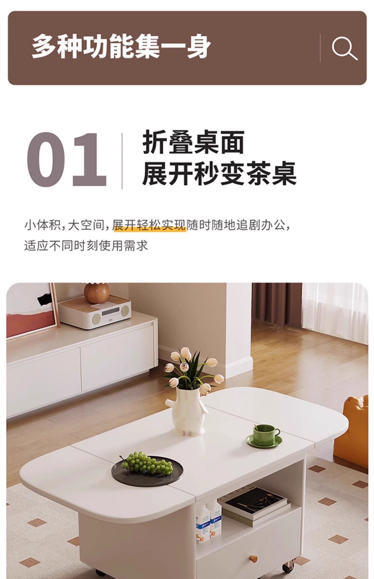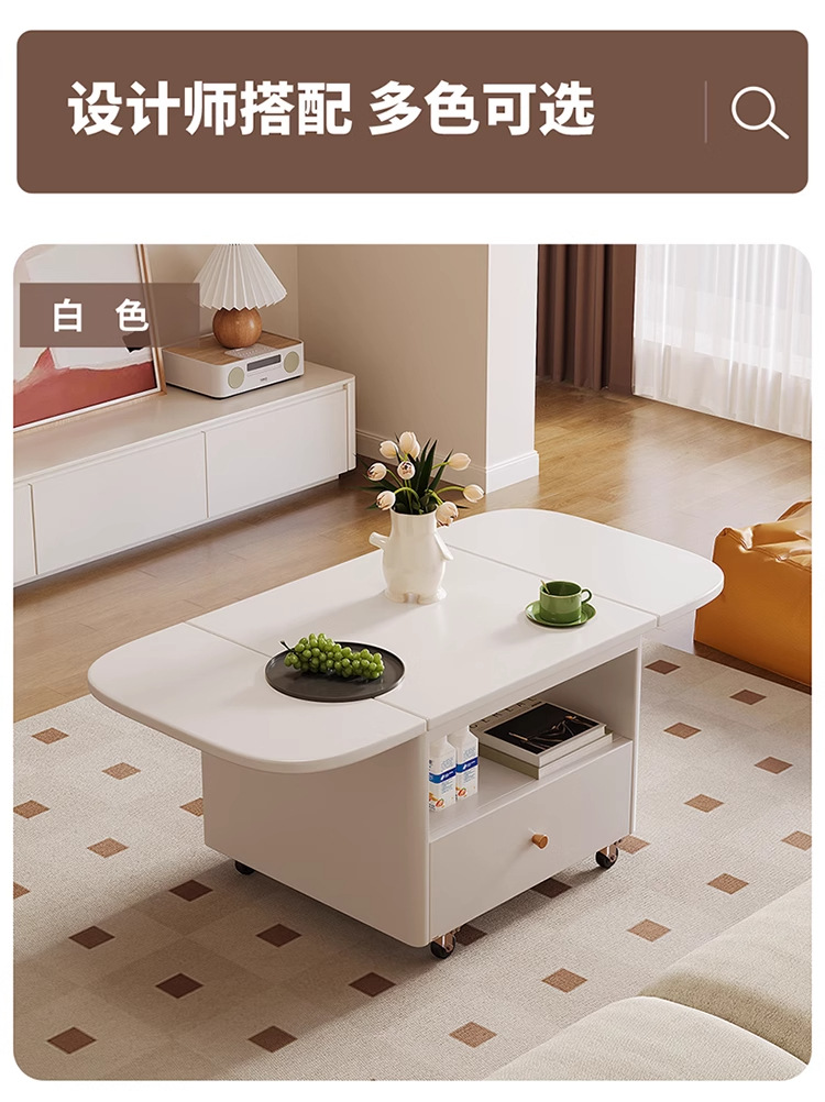크림 스타일 접이식 커피 테이블 사이드 테이블 간단한 현대 작은 아파트 단단한 나무 거실 모바일 티 테이블 발코니 트롤리