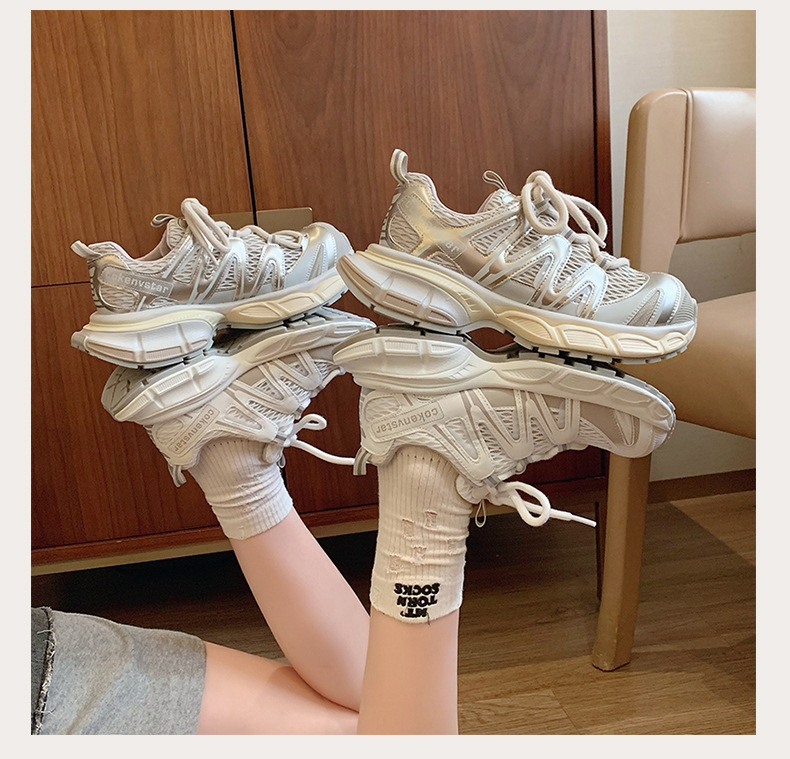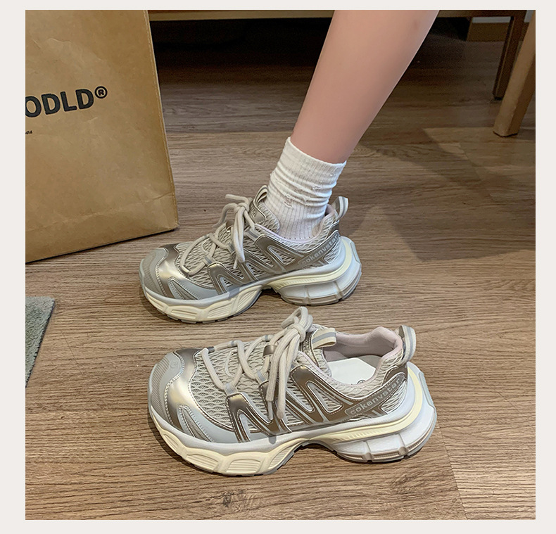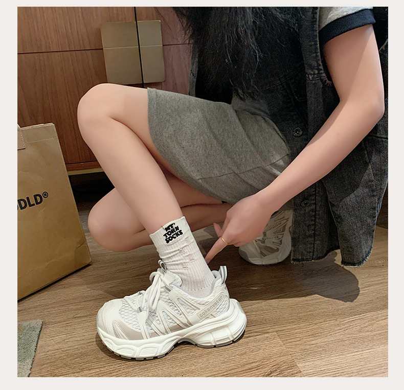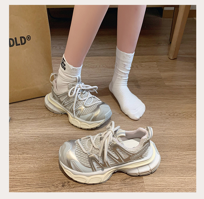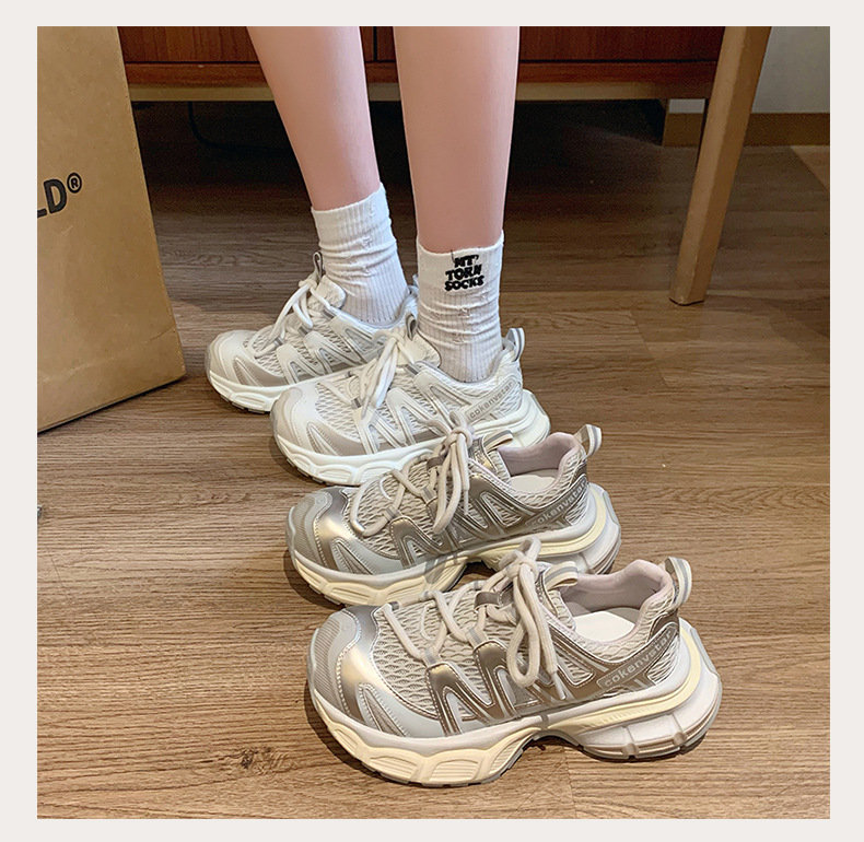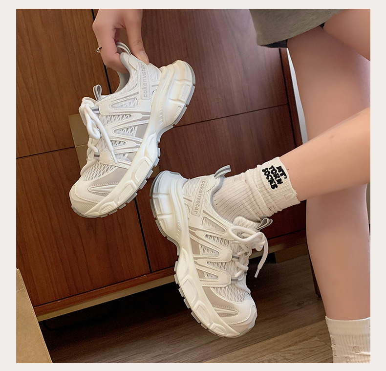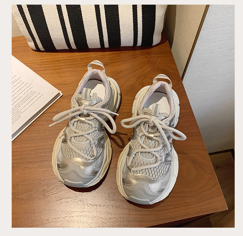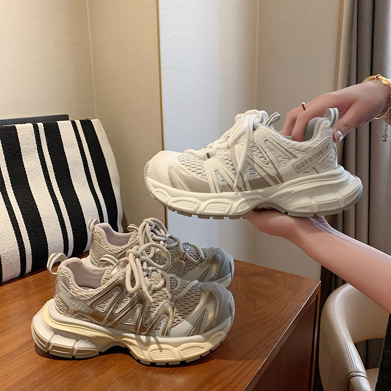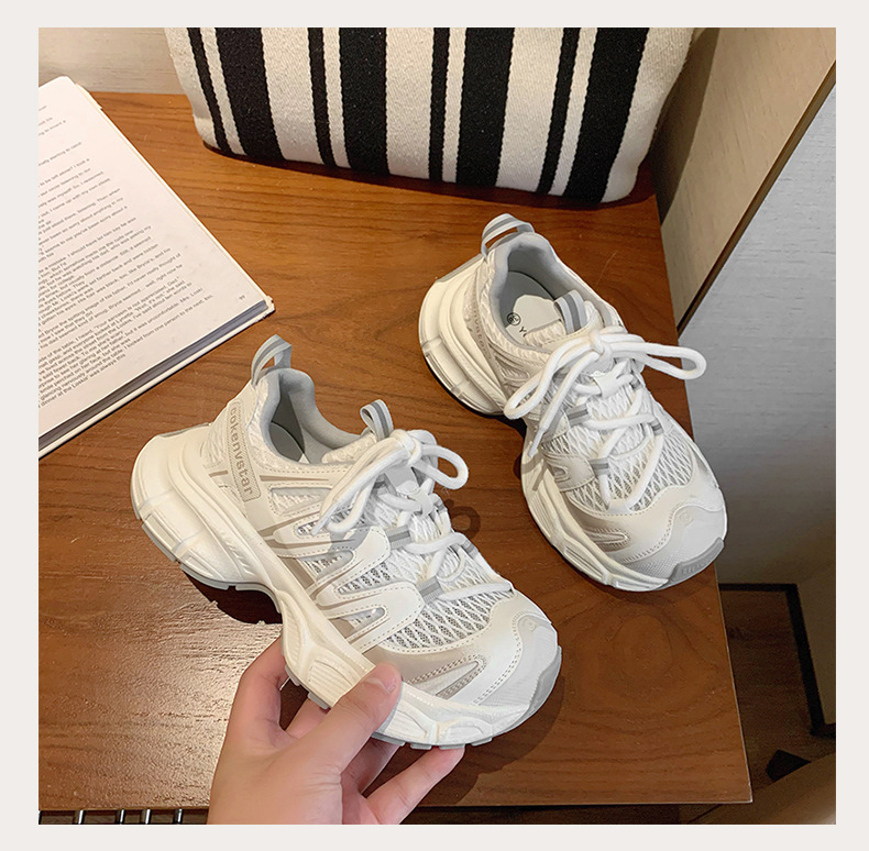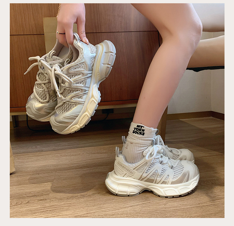여성을 위한 한국식 두꺼운 밑창 아빠 신발 2025 여름 새로운 스타일 중공 통기성 캐주얼 신발 다용도 높이 증가 운동화