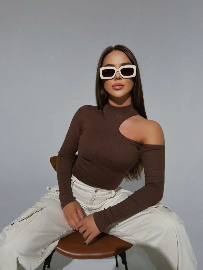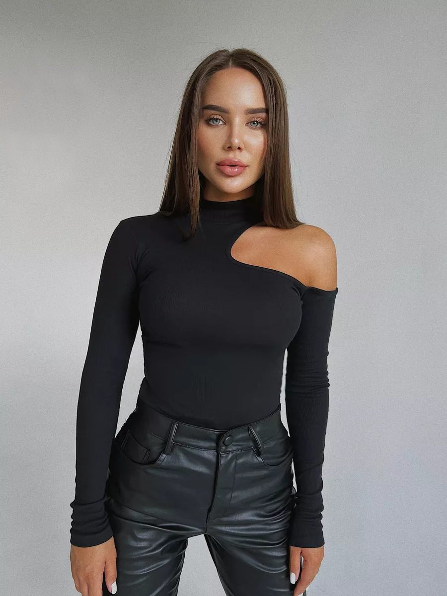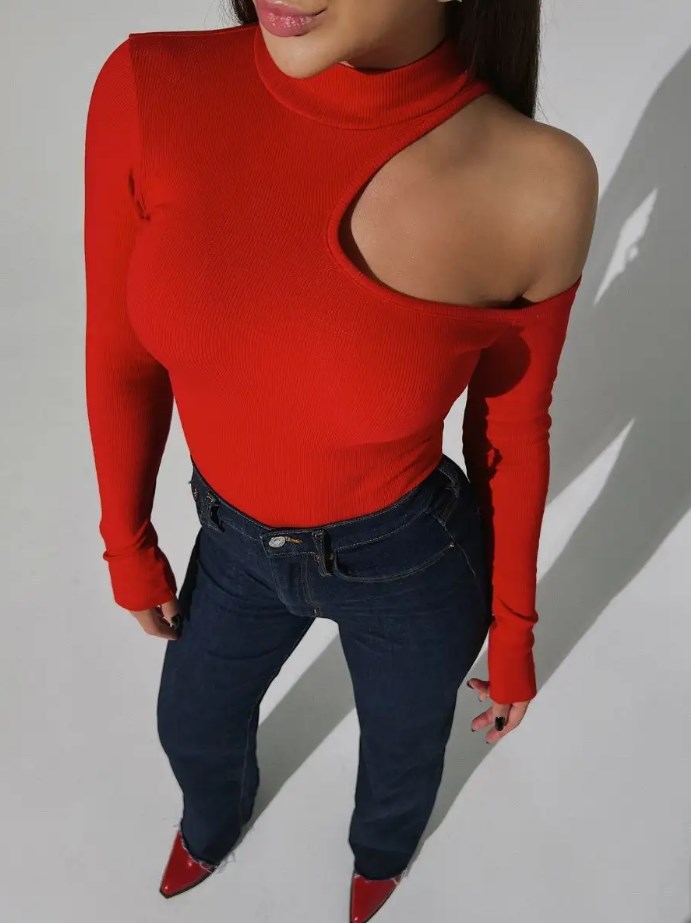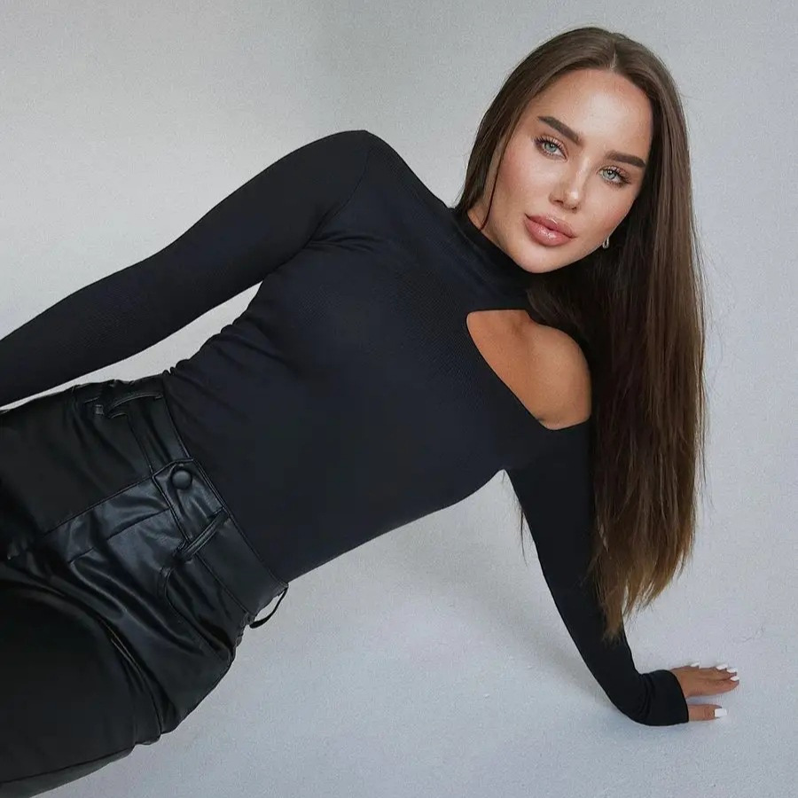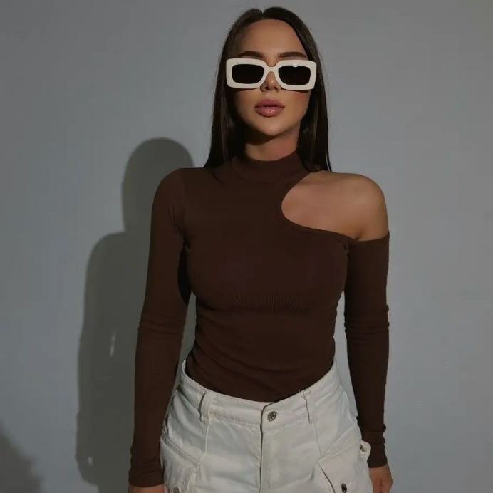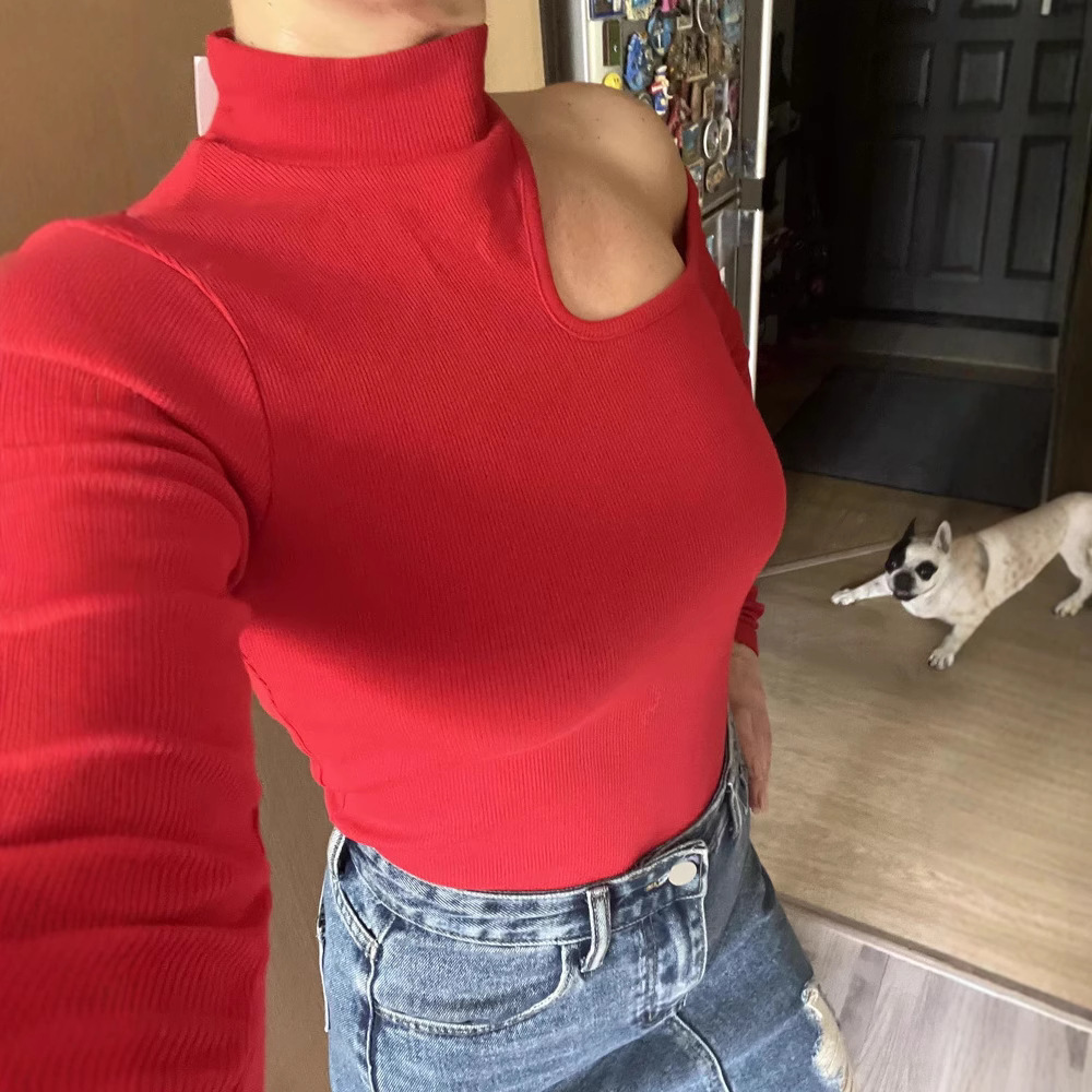 국경 간 2025 가을, 겨울 Amazon 비대칭 칼라 니트 바닥 셔츠 유럽과 미국 슬림 오프 숄더 긴팔 티셔츠 여성용