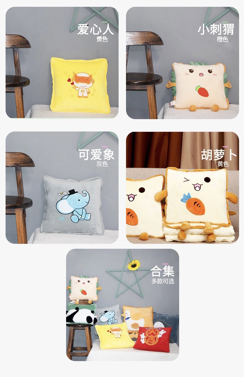 베개 이불 이중 목적 담요 투인원 만화 사무실 낮잠 작은 베개 접이식 베개 자동차 에어컨 이불