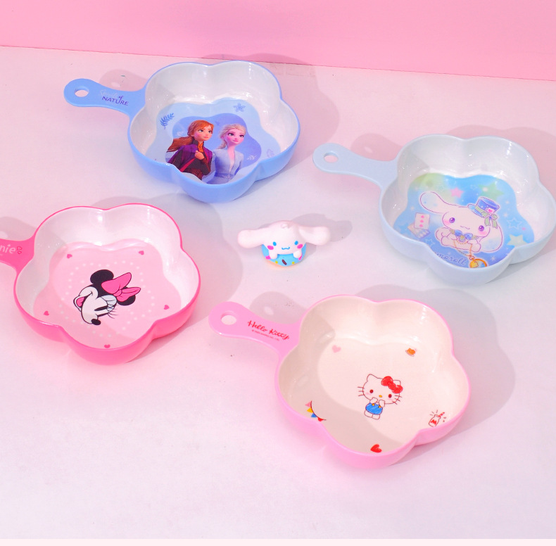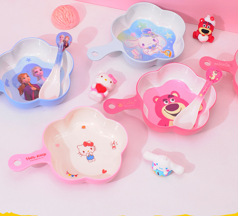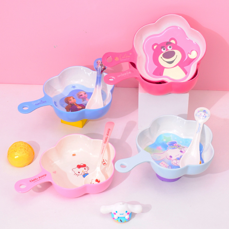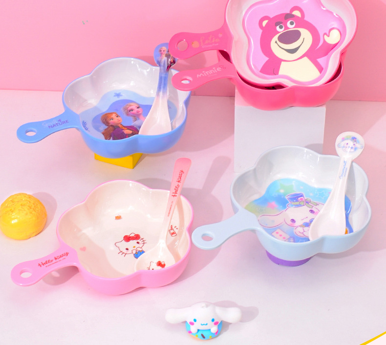 Wuhe 만화 그릇 HelloKitty 손잡이 그릇 절묘한 아름다운 소녀 밥 그릇 인터넷 연예인 레이스 그릇 아기 식기