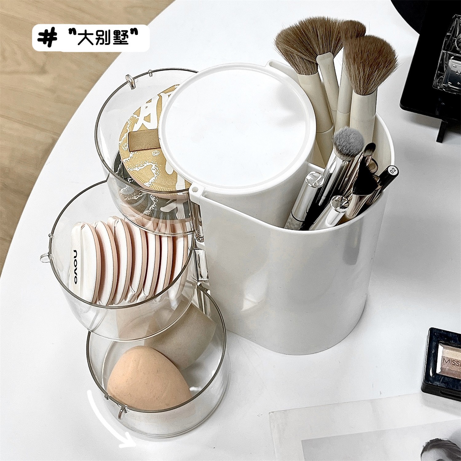 파우더 퍼프 보관 상자 회전 방진 드레싱 테이블 데스크탑 뷰티 에그 에어 쿠션 립스틱 메이크업 브러쉬 보관 상자 보관함