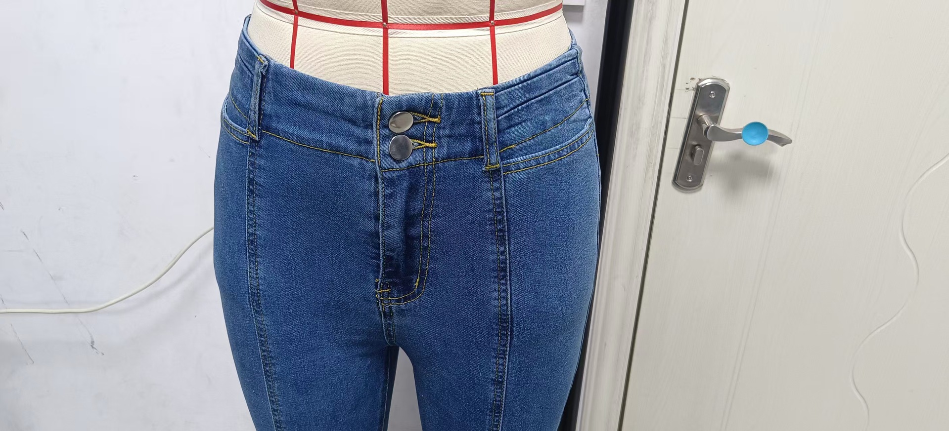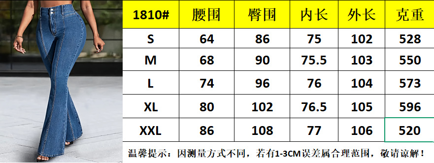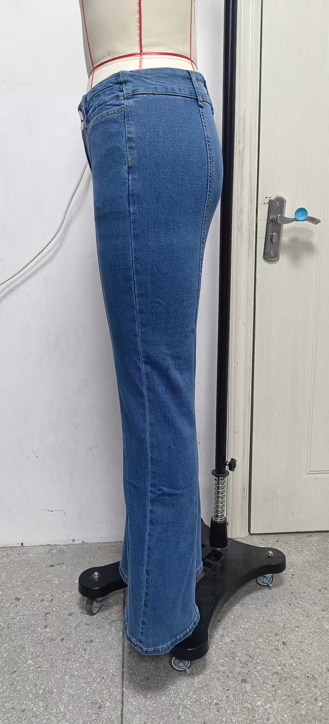 유럽과 미국의 대외 무역 국경 간 여성의 새로운 봄, 가을 스플 라이스 스타일로 슬림하고 신축성 있는 미드 웨이스트 플레어 청바지