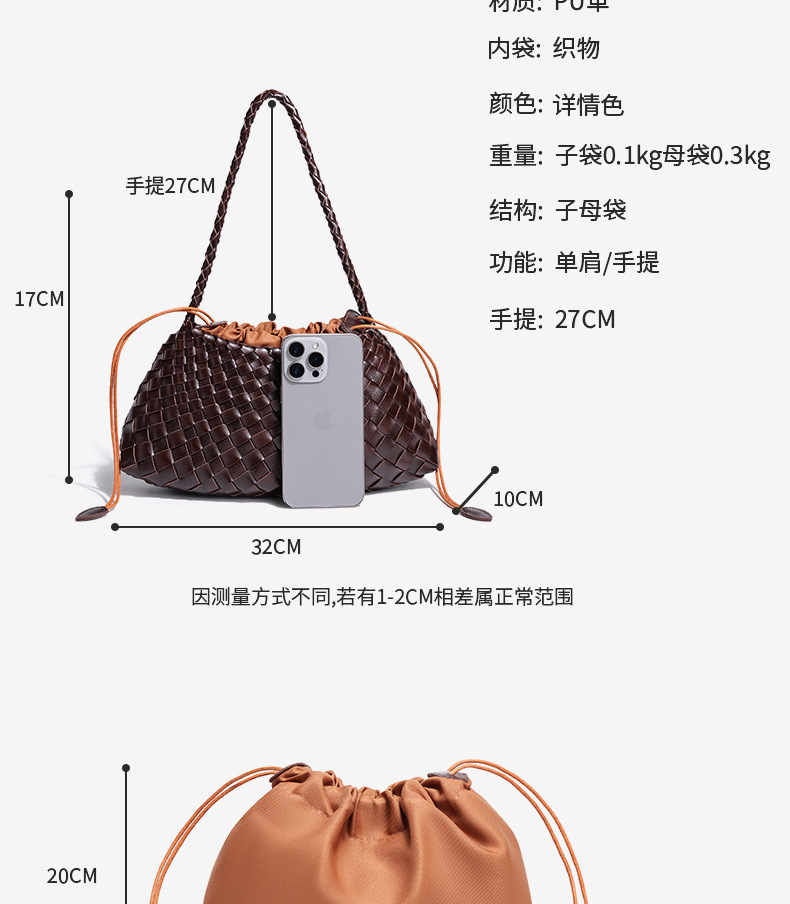 하이 엔드 패션 가죽 어깨 메신저 가방 내부 포켓 대형 가방 뜨거운 판매 짠 가방 숙녀 핸드백 겨드랑이 가방
