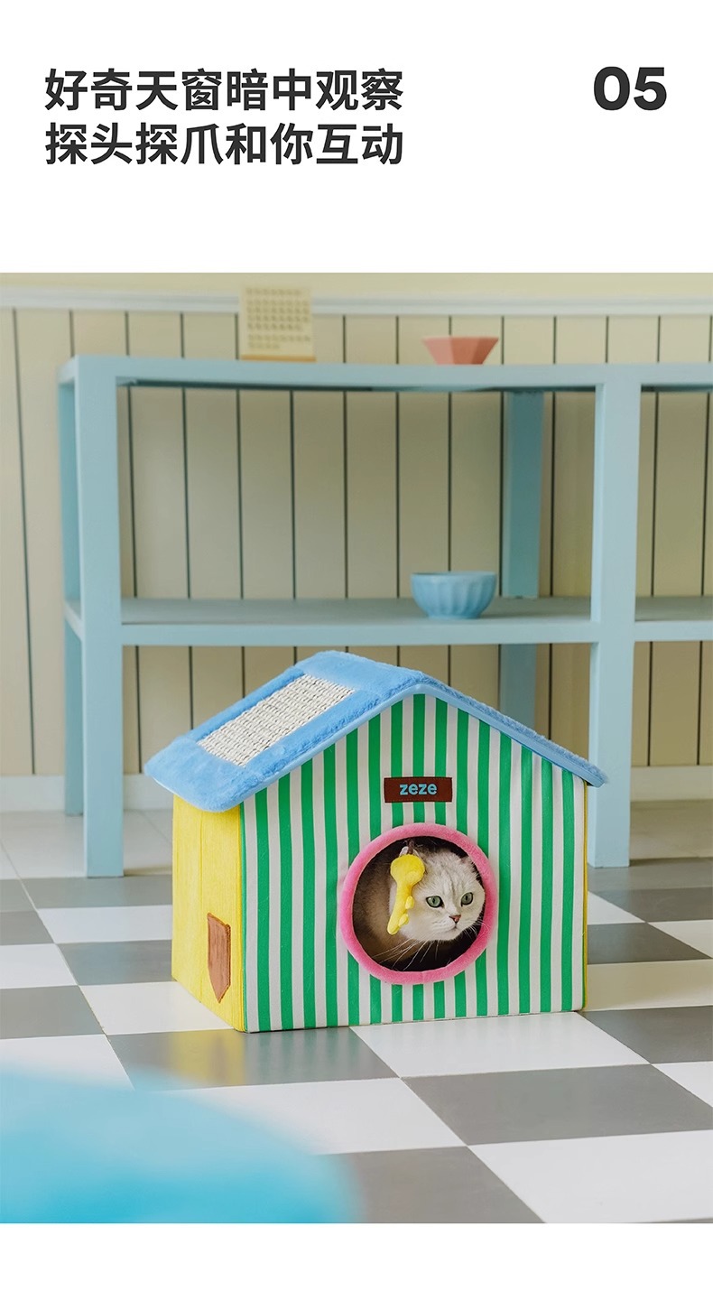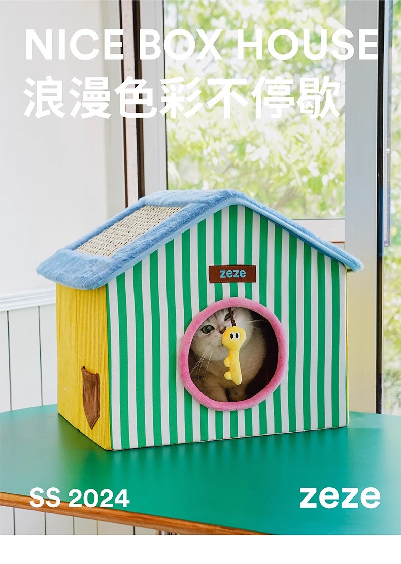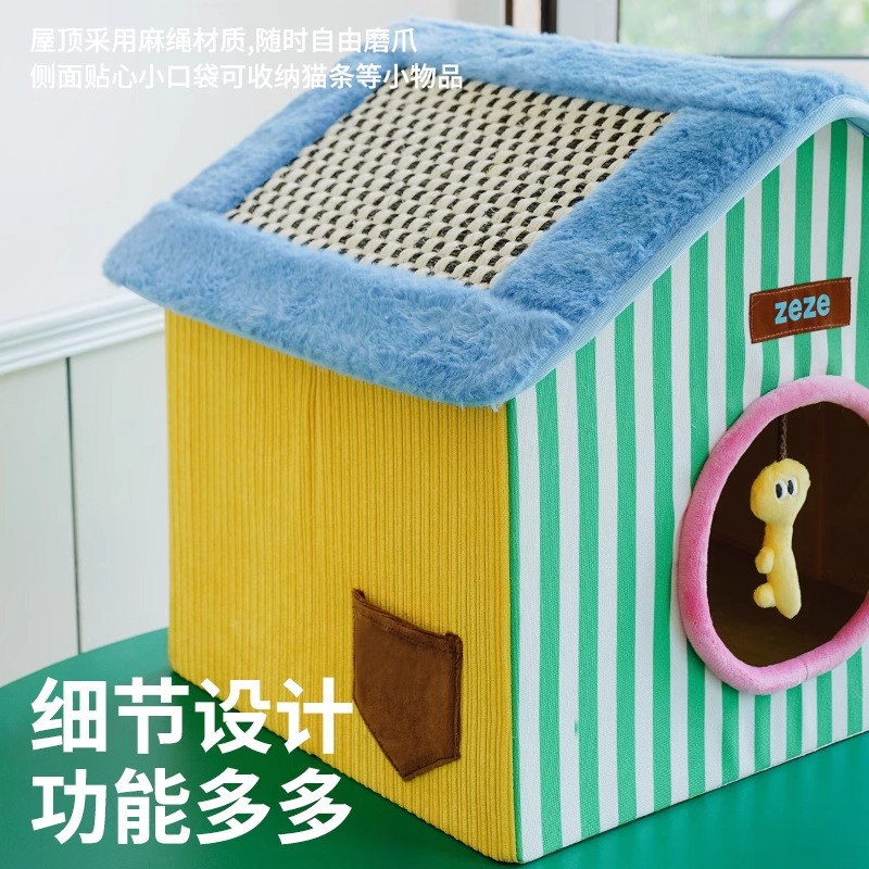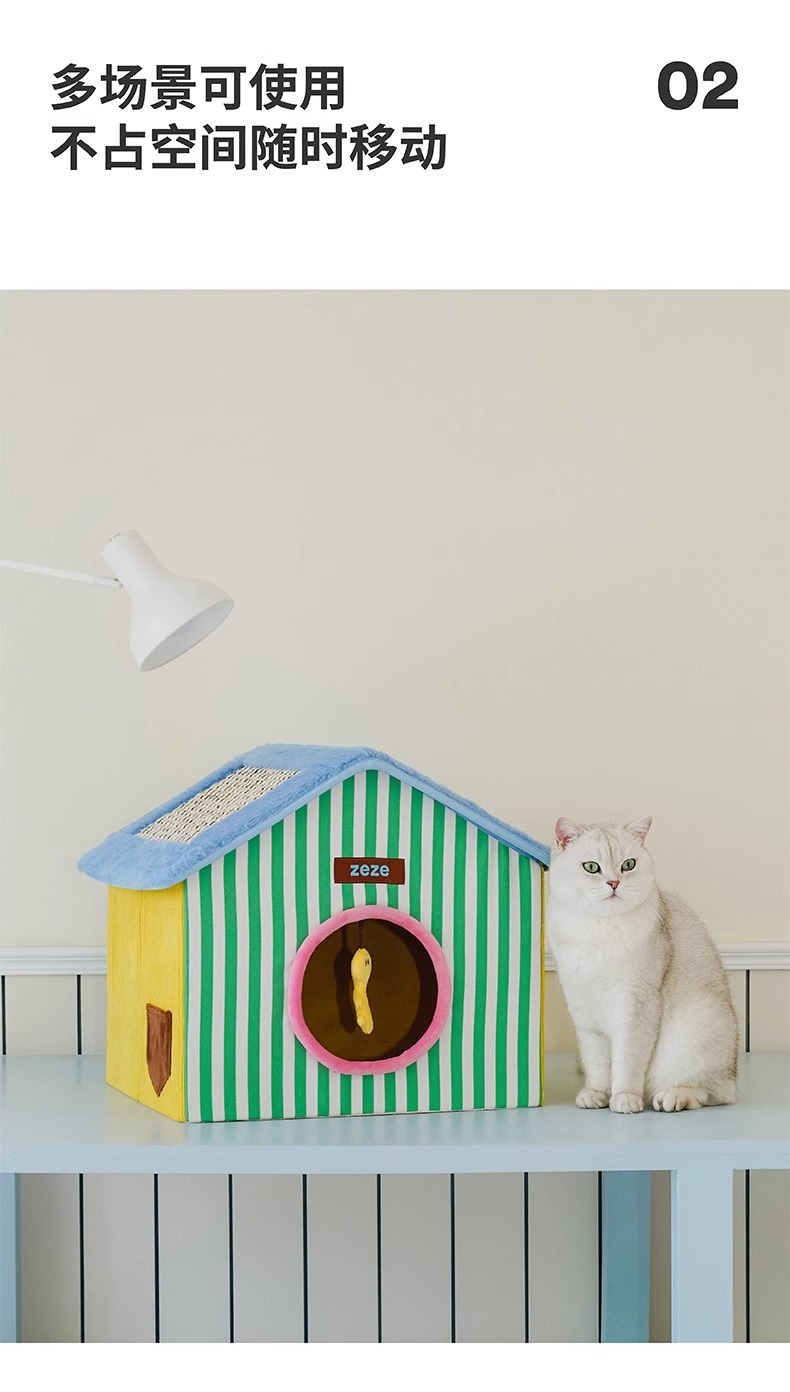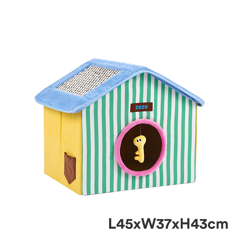 ZEZE 접이식 고양이 둥지 집 모양의 애완 동물 집 여름에는 공간을 차지하지 않으며 사계절 모두 사용할 수 있는 보편적인 애완 동물 용품 스크래치 보드 고양이 집
