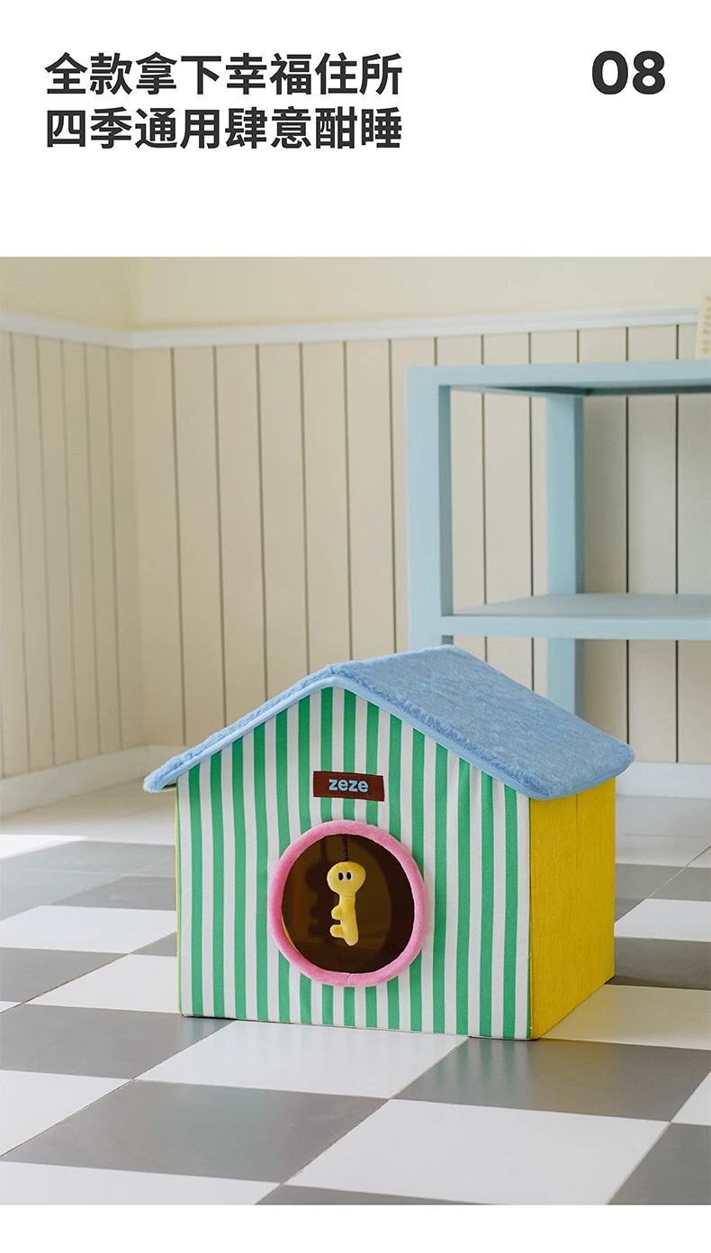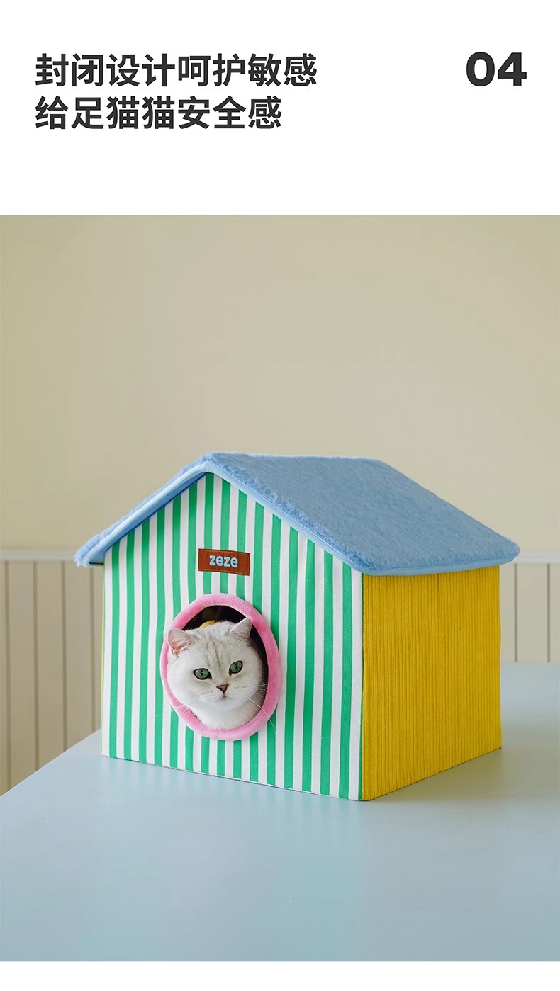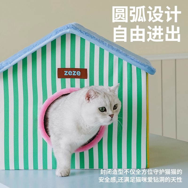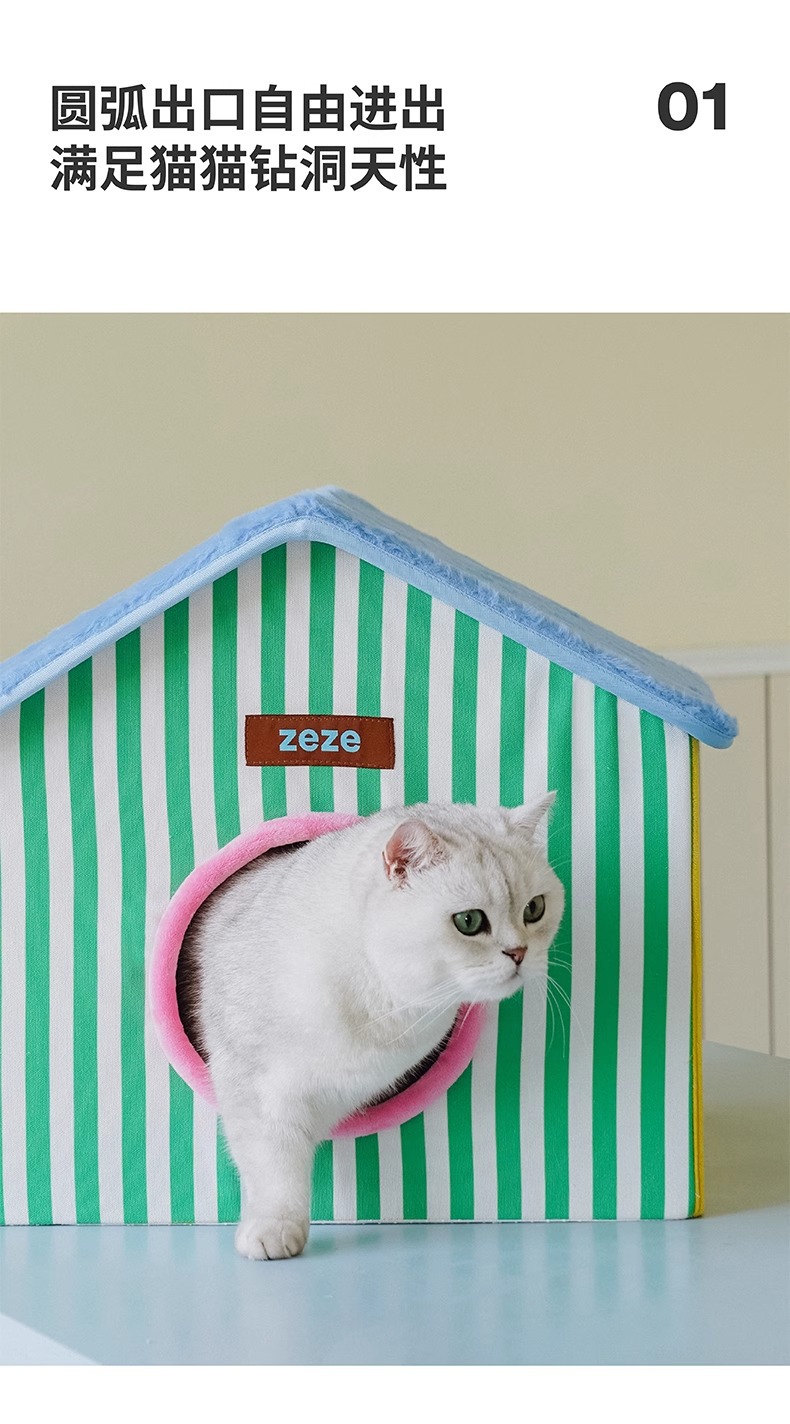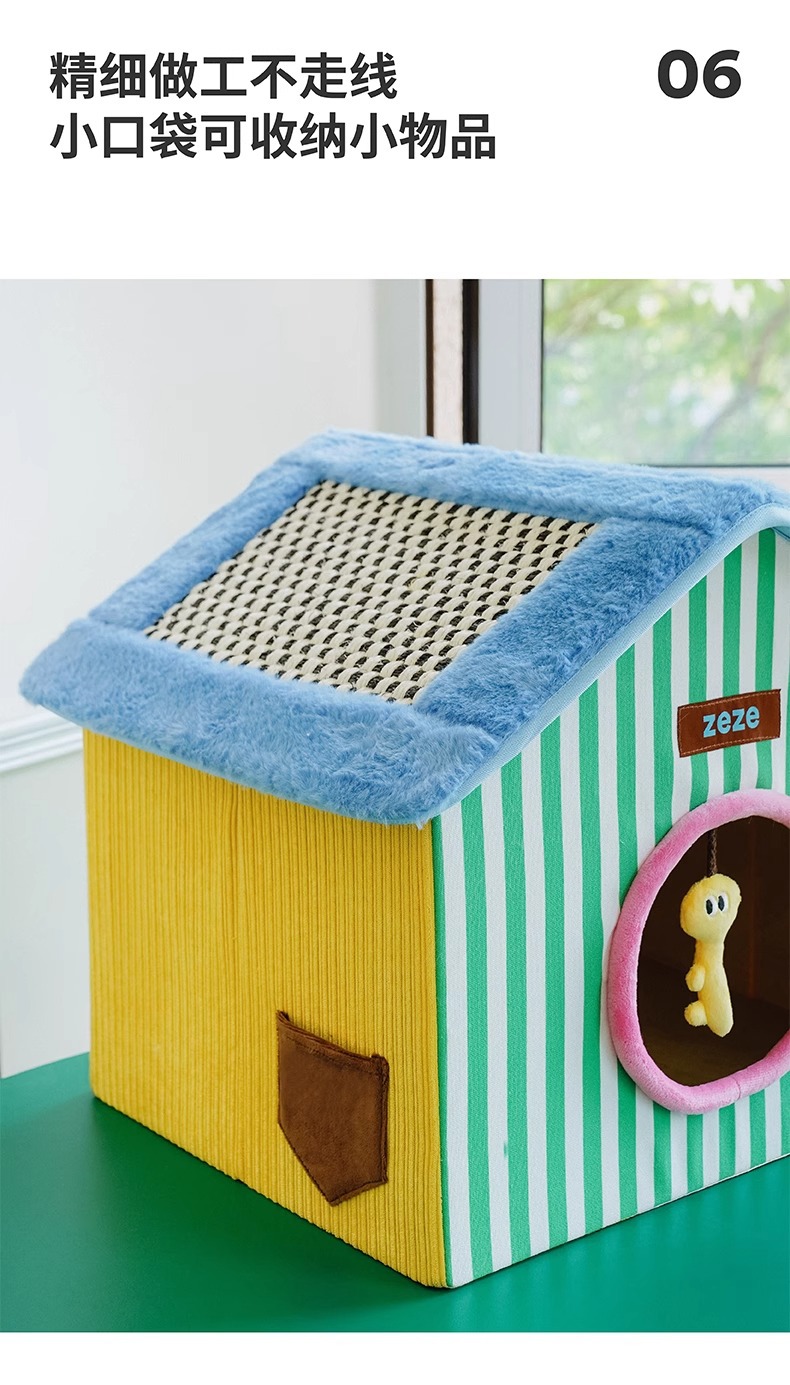ZEZE 접이식 고양이 둥지 집 모양의 애완 동물 집 여름에는 공간을 차지하지 않으며 사계절 모두 사용할 수 있는 보편적인 애완 동물 용품 스크래치 보드 고양이 집