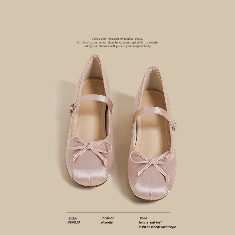 여성을위한 프랑스 복고풍 메리 제인 신발 2025 여름 새로운 핑크 발레 작은 크기 플랫 바닥 내부 강화 펌프 신발