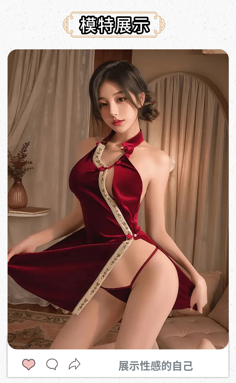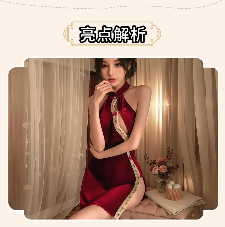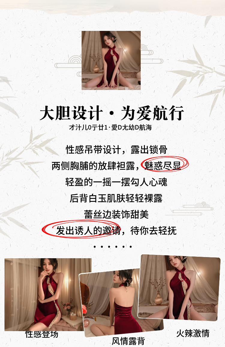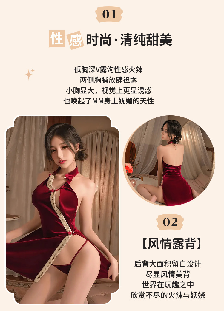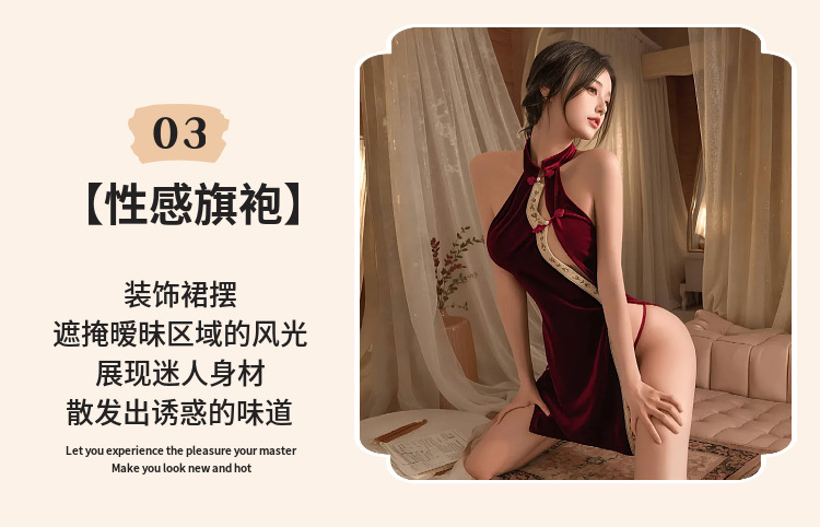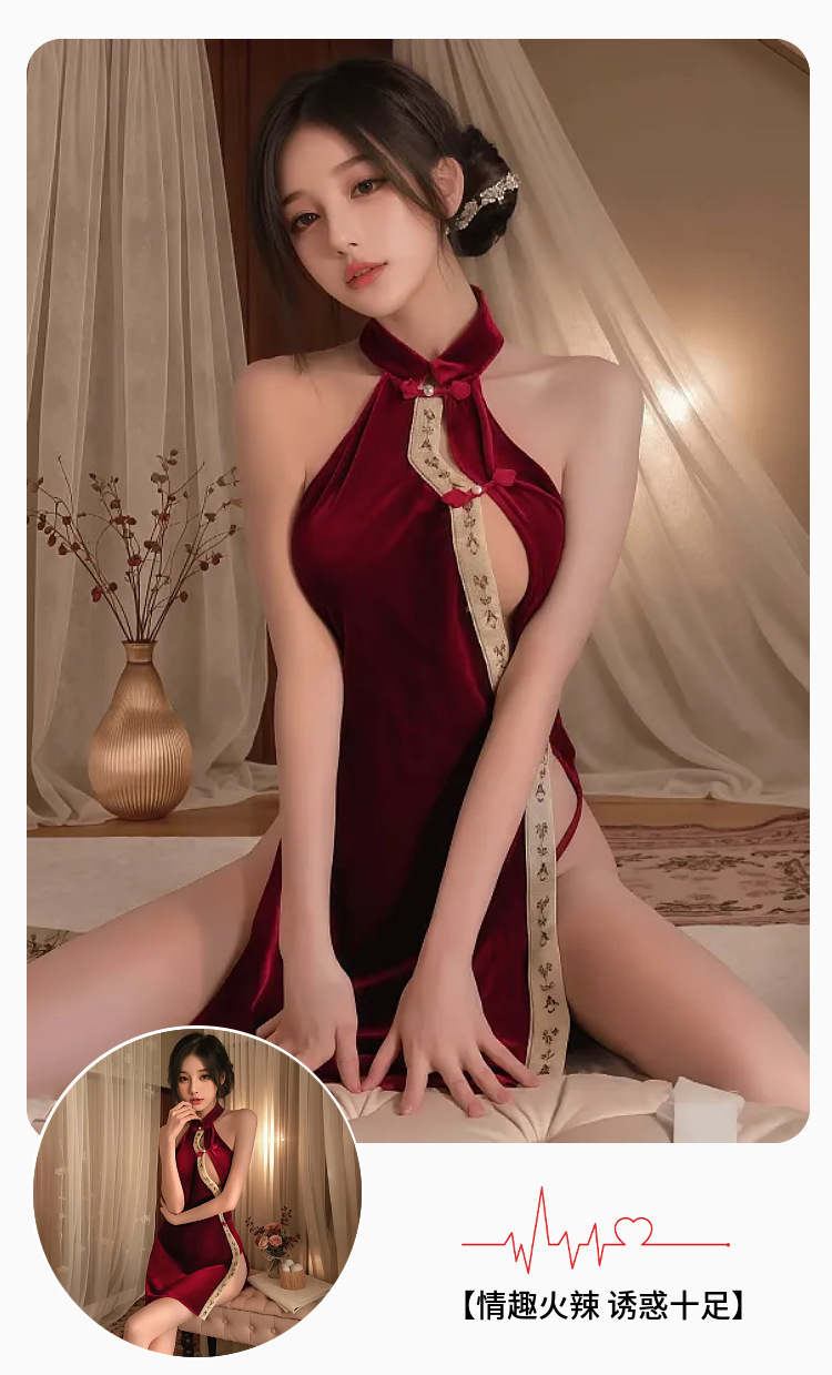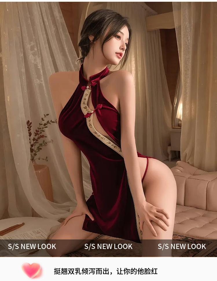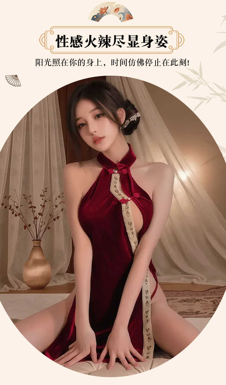 섹시한 속옷, 섹시한 중국 스타일 버클 벨벳 치파오, 속이 빈 하이웨이스트 슬릿 유니폼 슈트, 복고풍 슬릿 잠옷