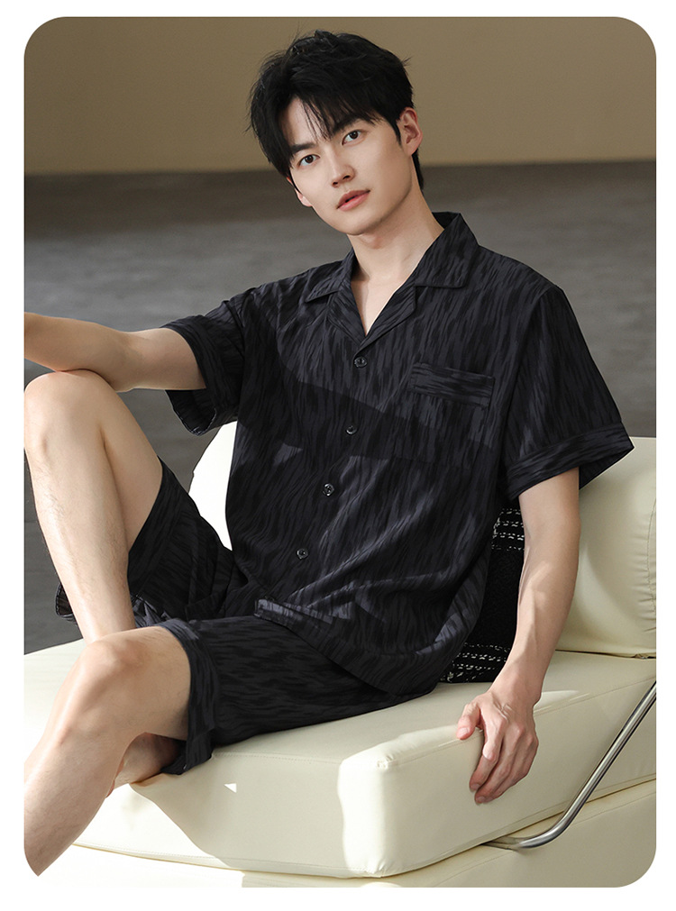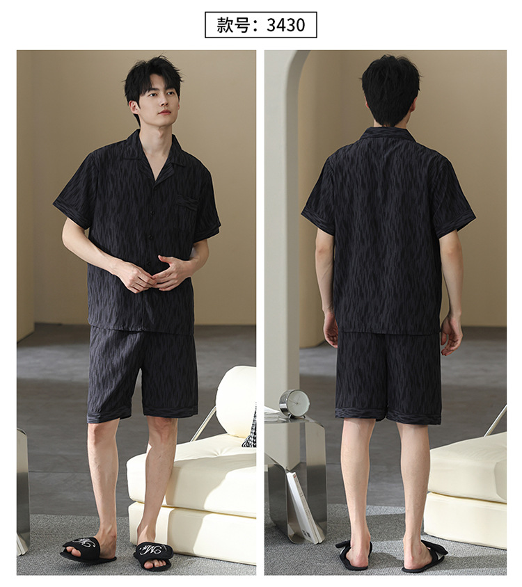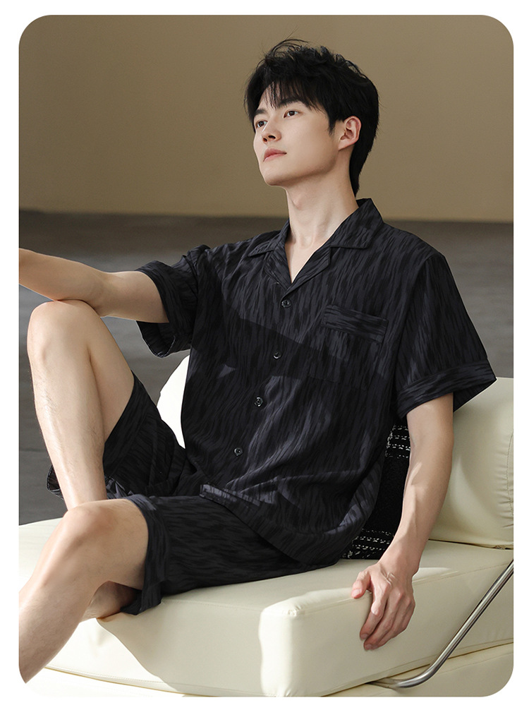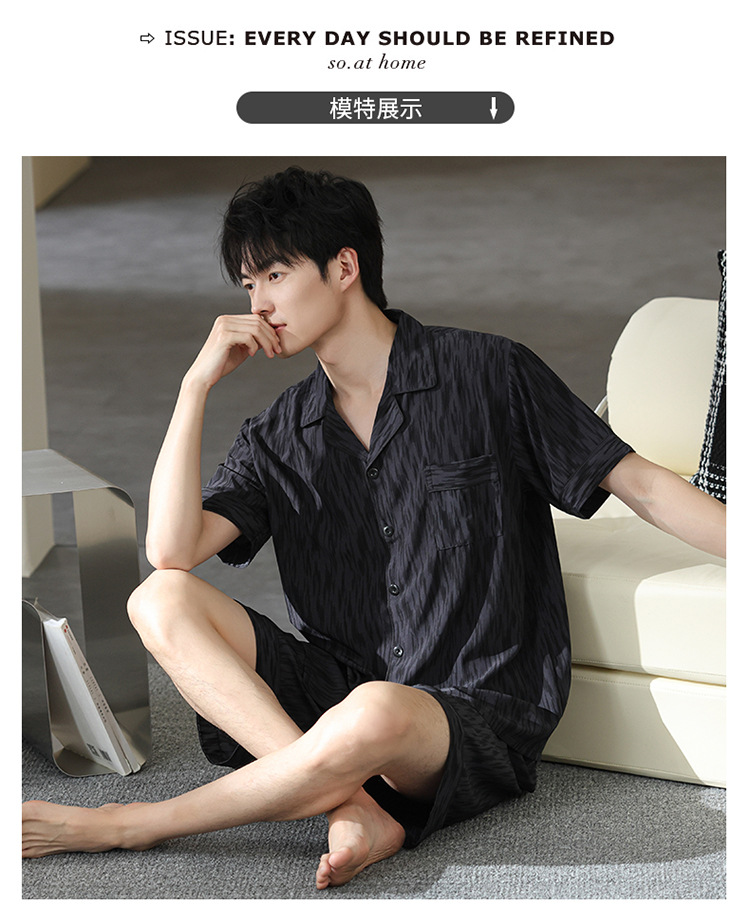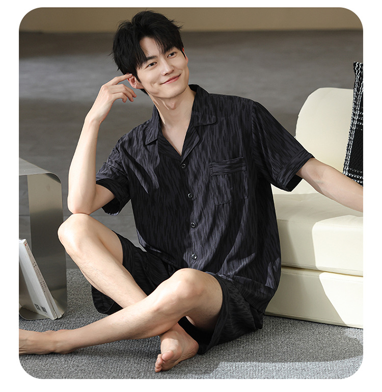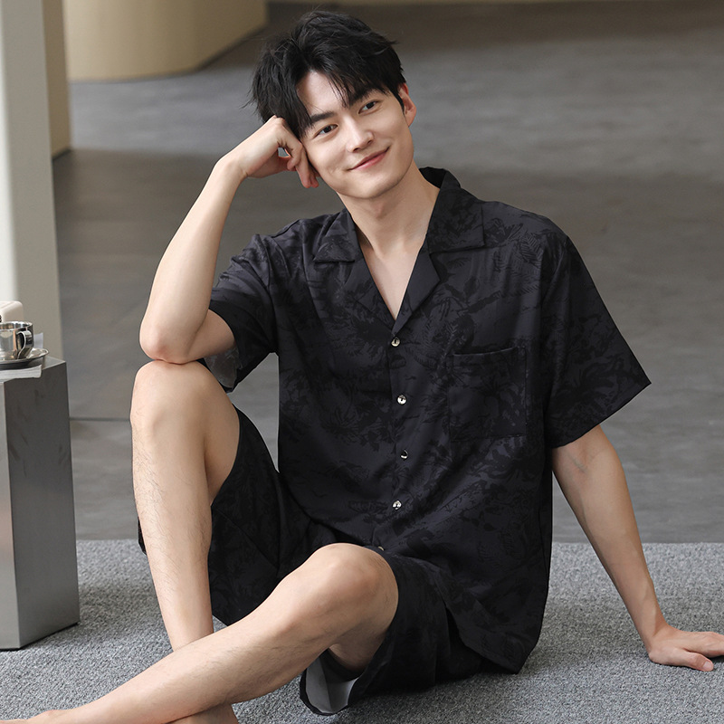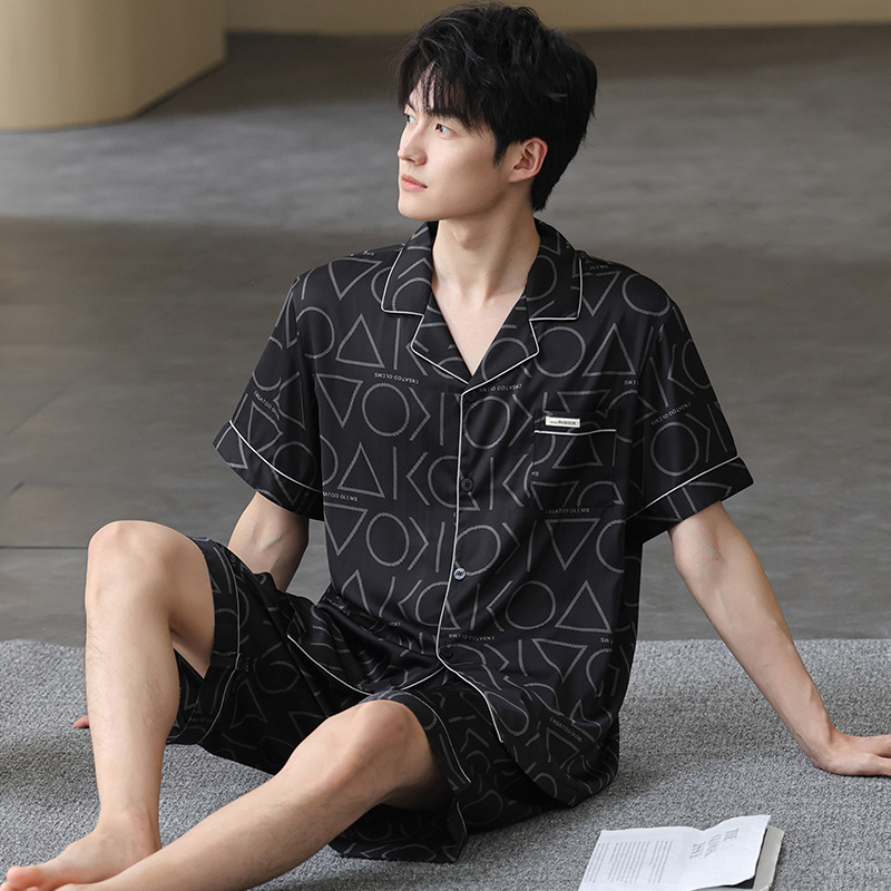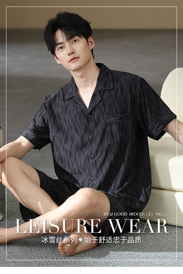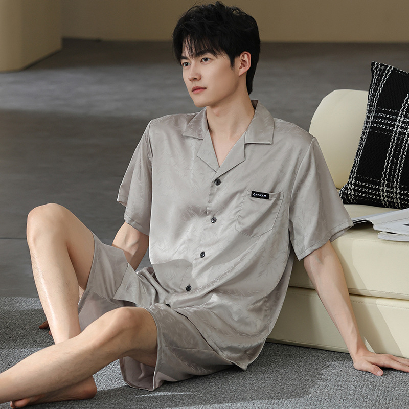남성 잠옷 남성 여름 얼음 실크 2025 새로운 반팔 얇은 대형 청소년 홈웨어 세트 여름