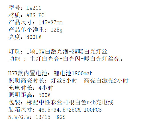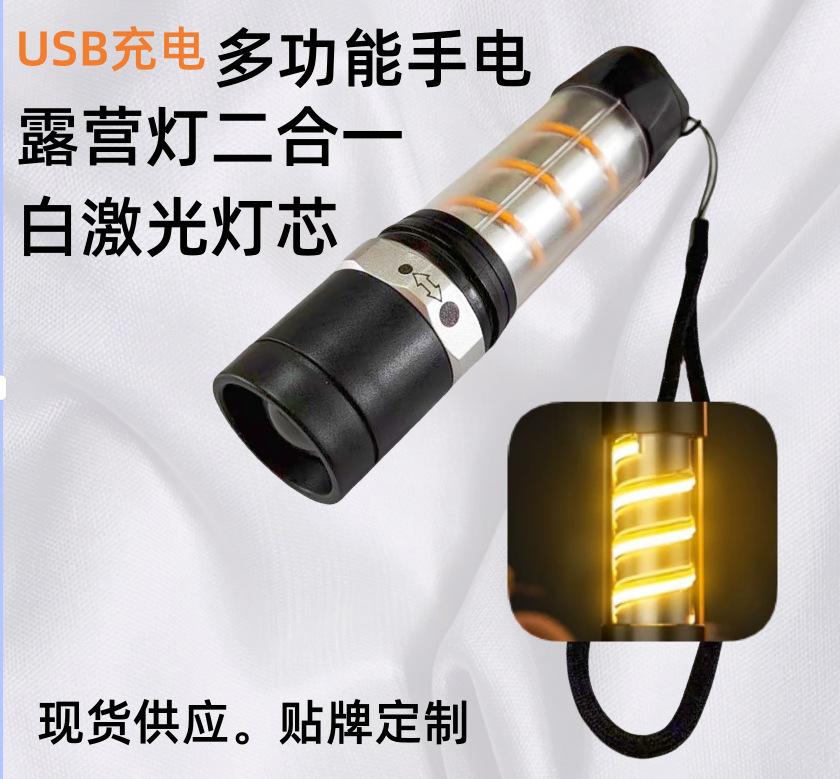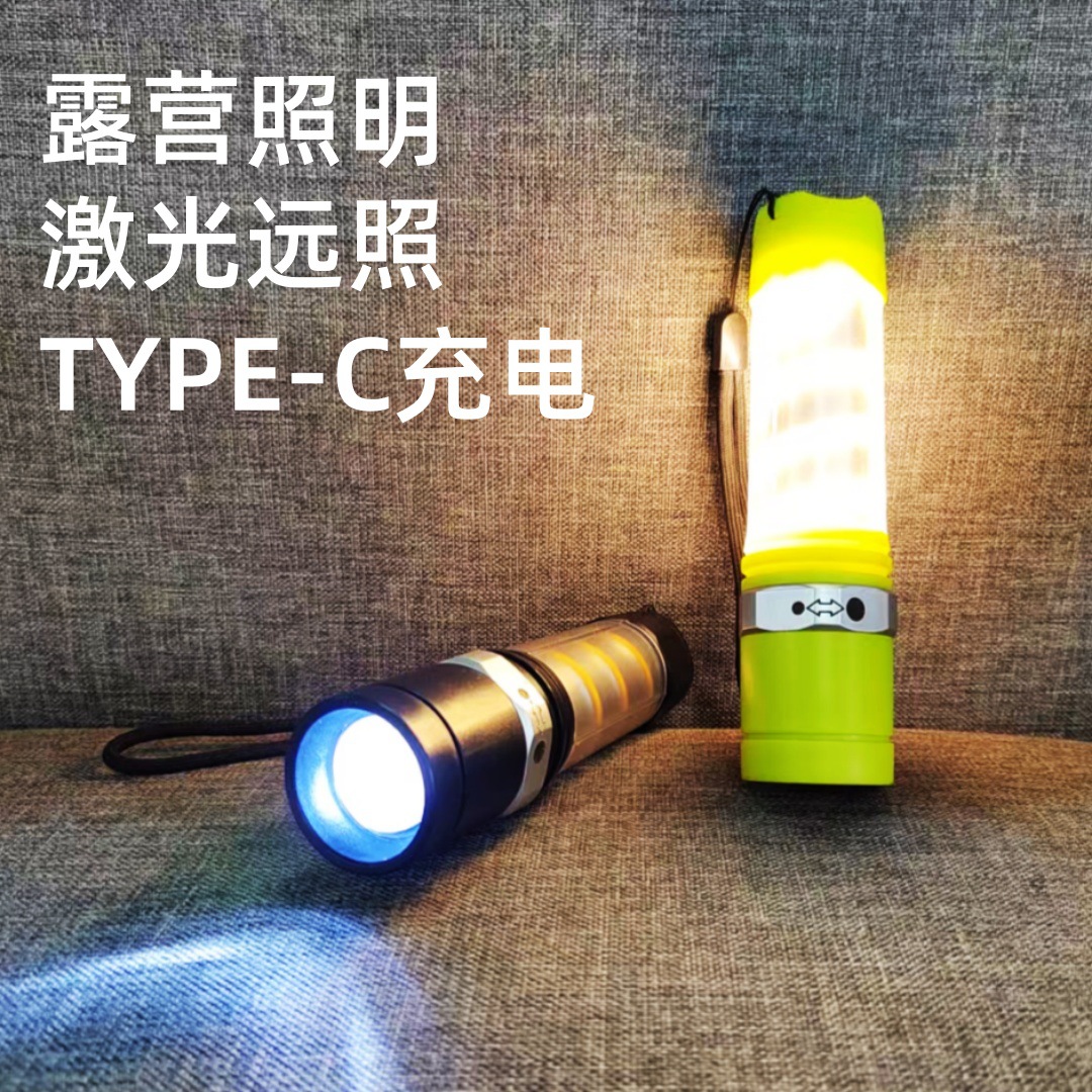 국경을 넘는 새로운 야외 회전식 강력한 조명 손전등, 충전식, 긴 배터리 수명, 초고휘도 백색 레이저 다기능 캠핑 램프