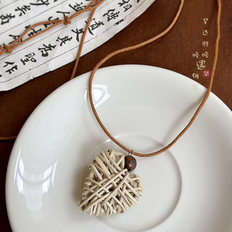 레트로 브레이드 하트 펜던트 목걸이, 여름 체인 스커트, 롱 스웨터 체인, 데일리로 활용하기 좋은 학생 액세서리