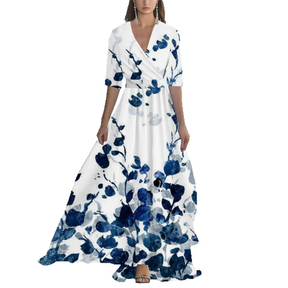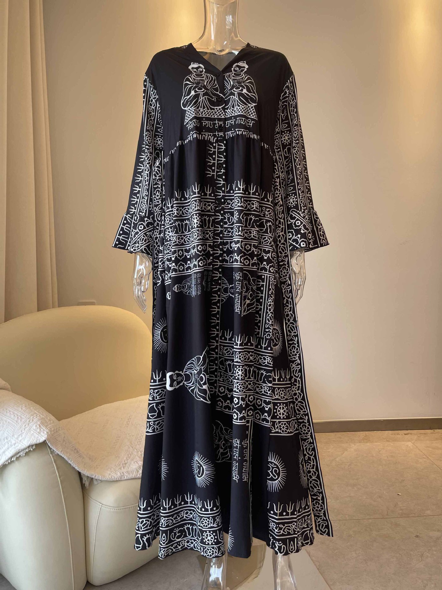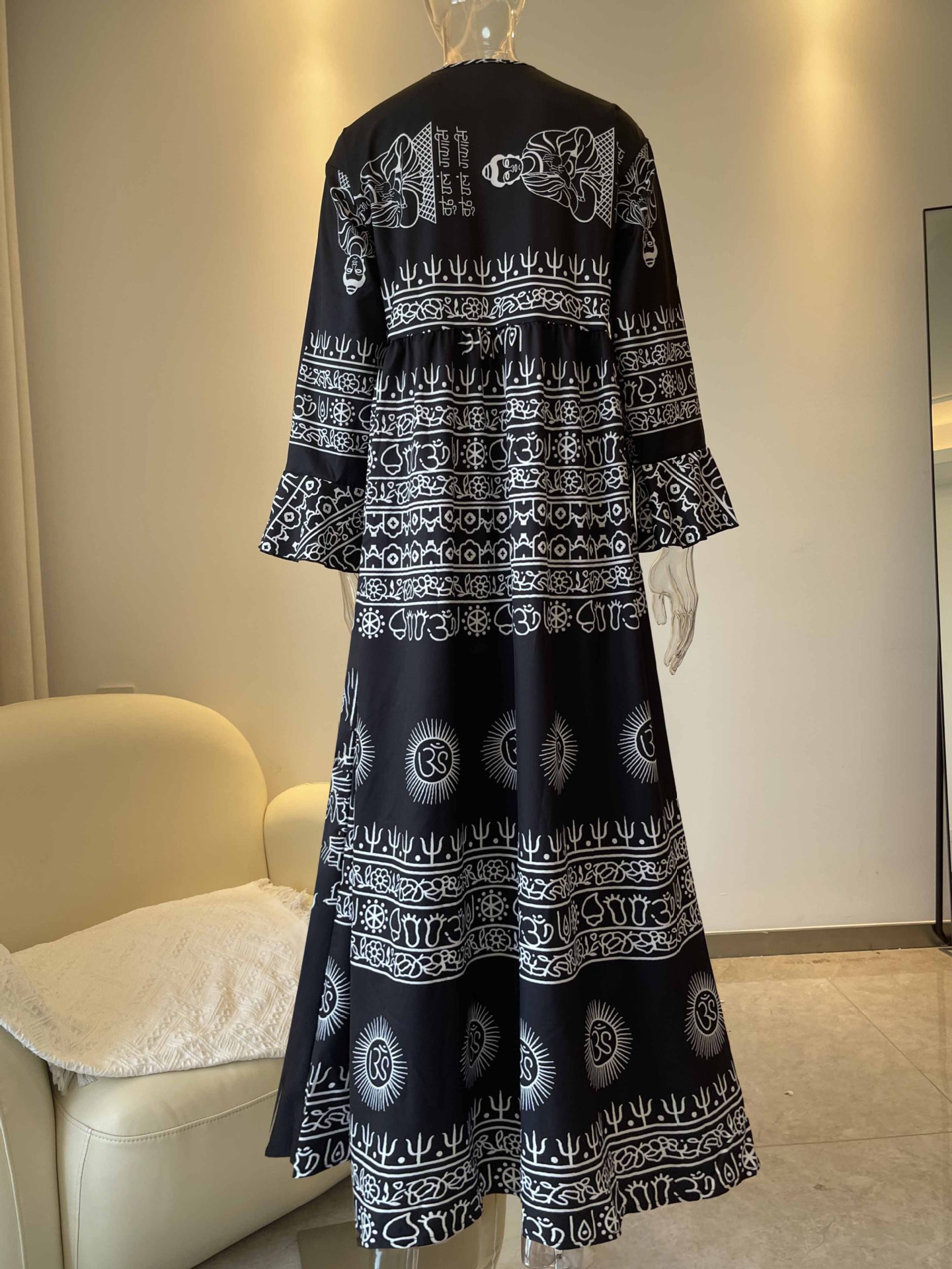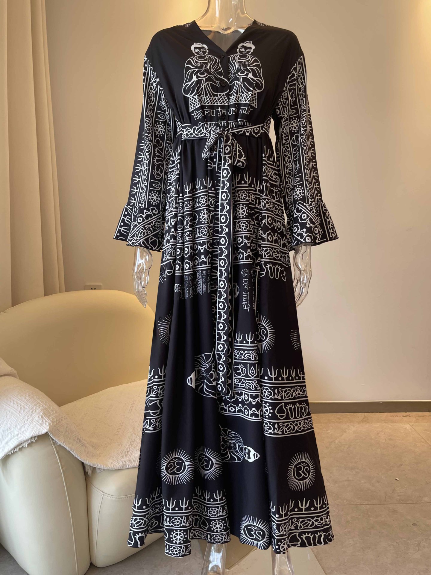 2025 아마존 쉬인 크로스보더 유럽 및 미국 우아한 캣워크 시폰 프린트 여성 드레스 재고 있음
