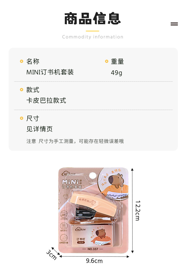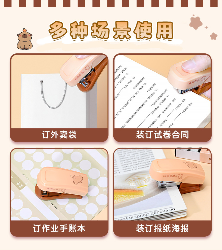 Kapibala 다기능 휴대용 학생 귀여운 스테이플러 세트 사무실 휴대용 노동 절약 스테이플러 문구