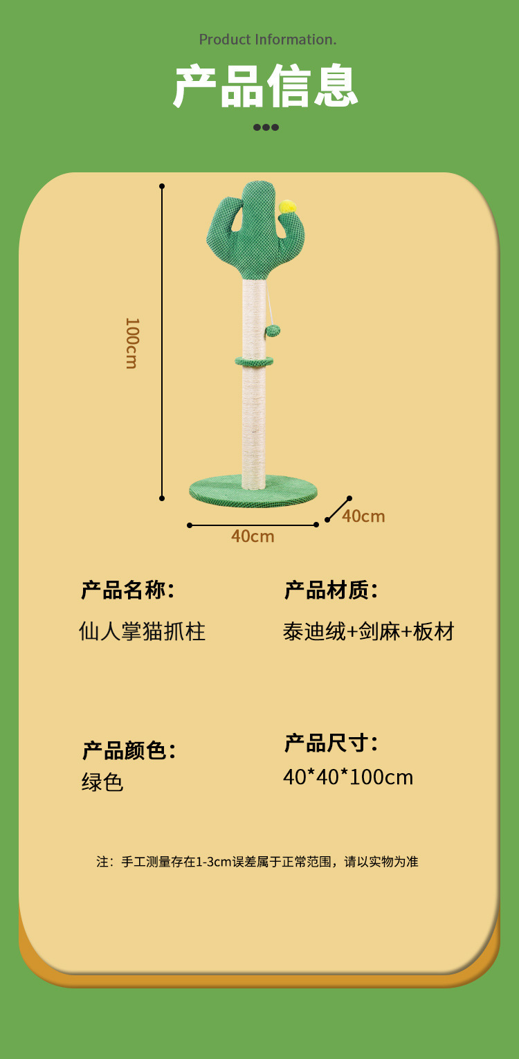 공장 도매 부스러기가 없는 내구성과 내마모성이 뛰어난 소형 사이잘 새로운 선인장 고양이 스크래치 포스트 고양이 클라이밍 프레임 고양이 스크래치 보드