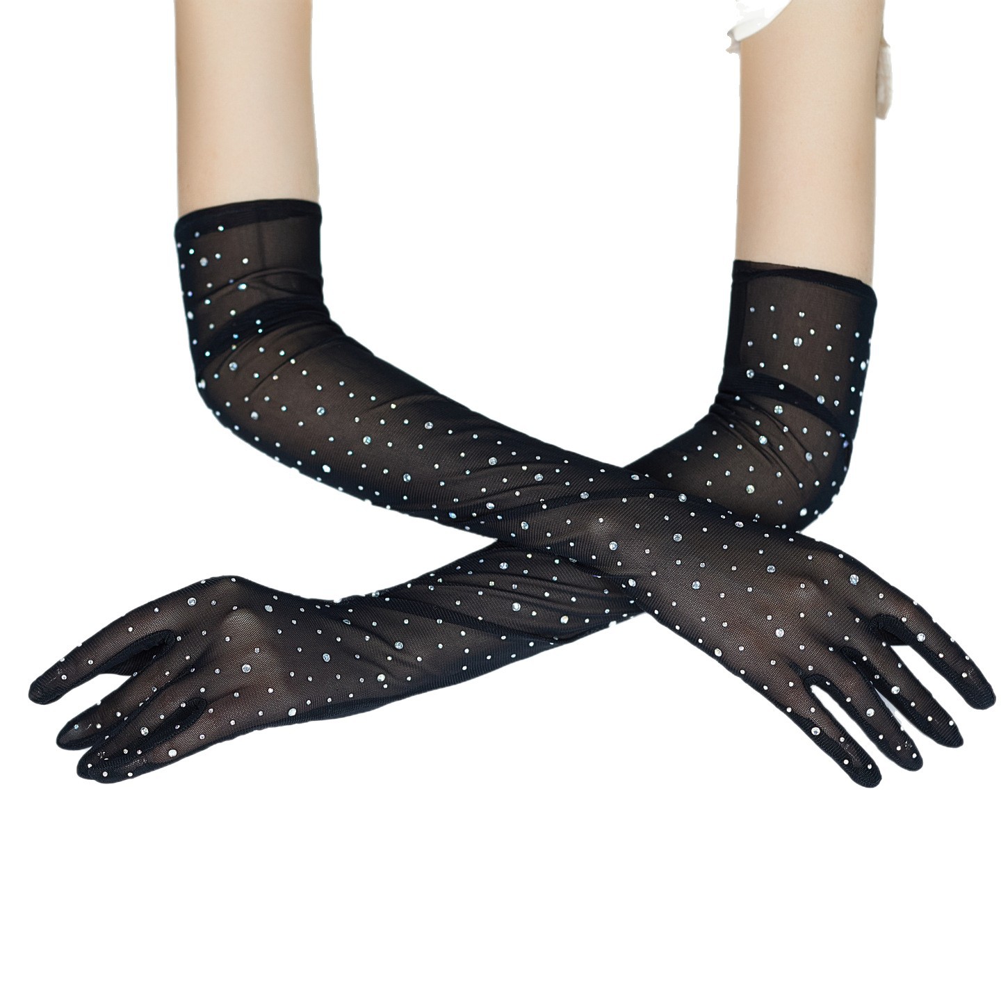 55cm 여성용 엑스트라 롱 스트레치 메쉬 핫 다이아몬드 레트로 이브닝 장갑 컬러 다이아몬드 코스 쇼 메쉬 장갑