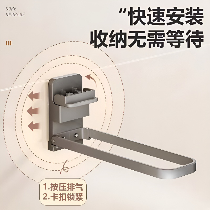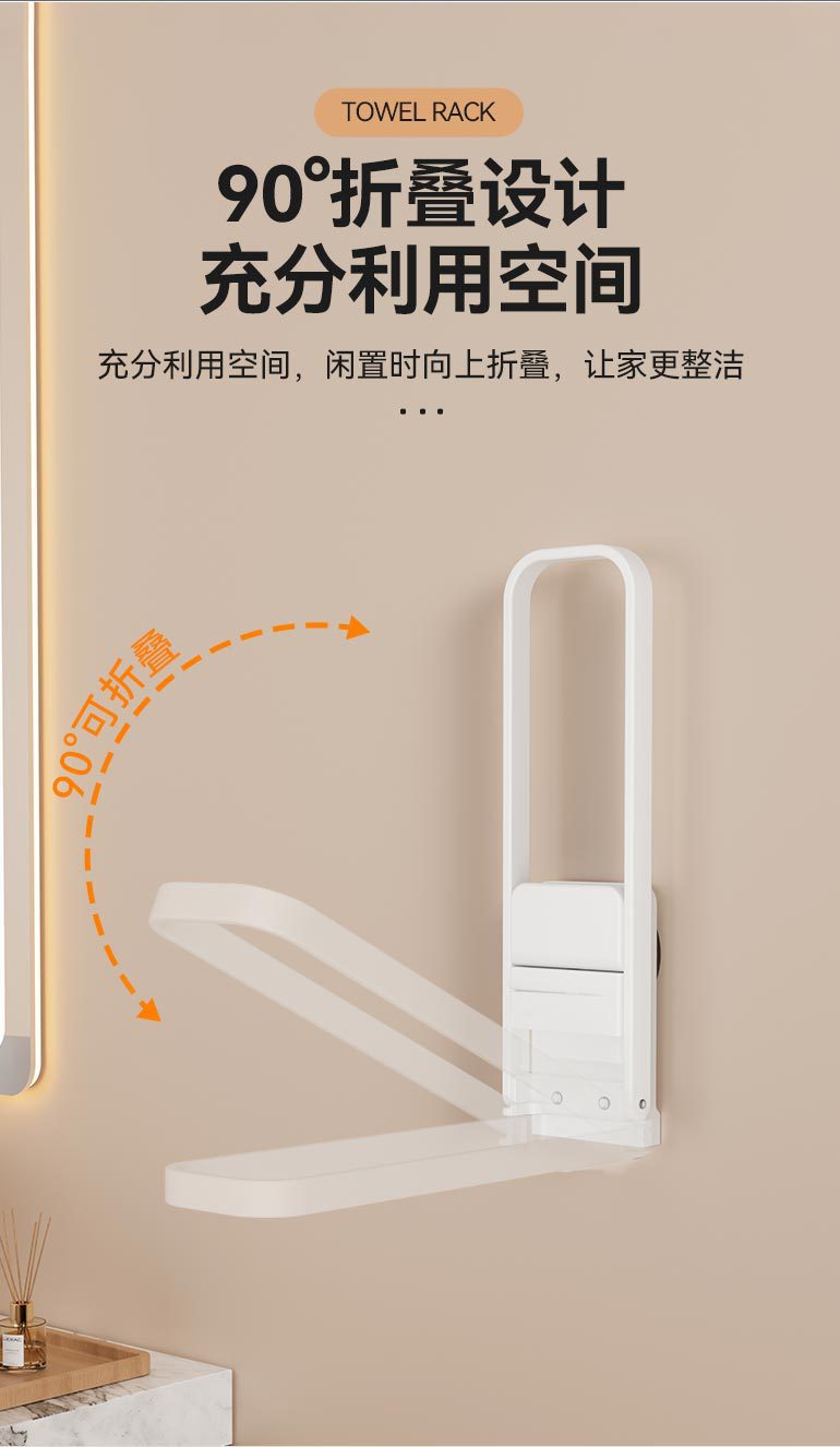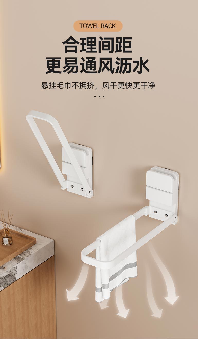 흡착걸이 수납용품, 펀치프리 발코니 벽걸이 접이식 옷걸이, 가정용 수납선반, 옷걸이