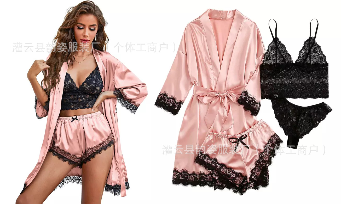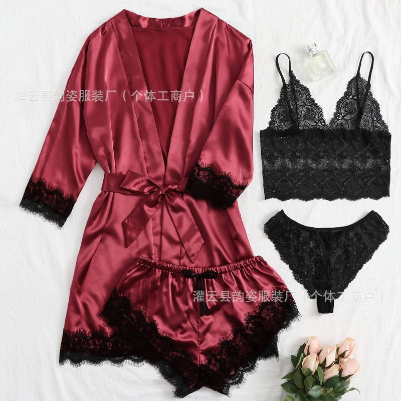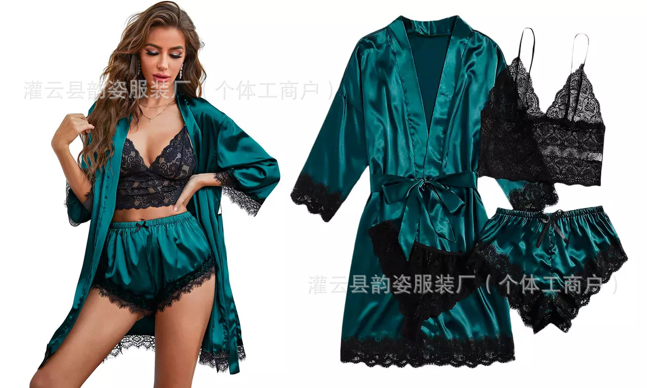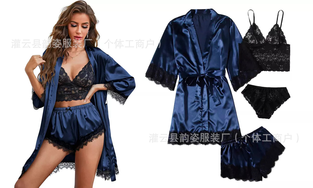 크로스보더 섹시 레이스 란제리 여성용 가을 겨울 실크 잠옷 에로틱 잠옷 세트 순수한 욕망 홈웨어 도매