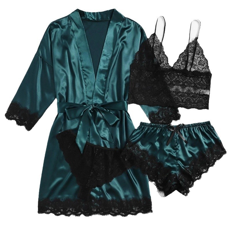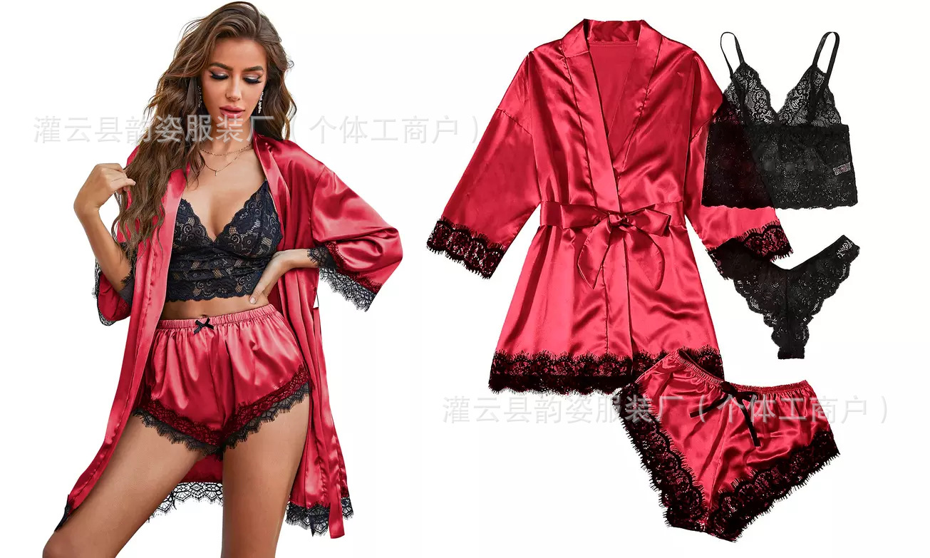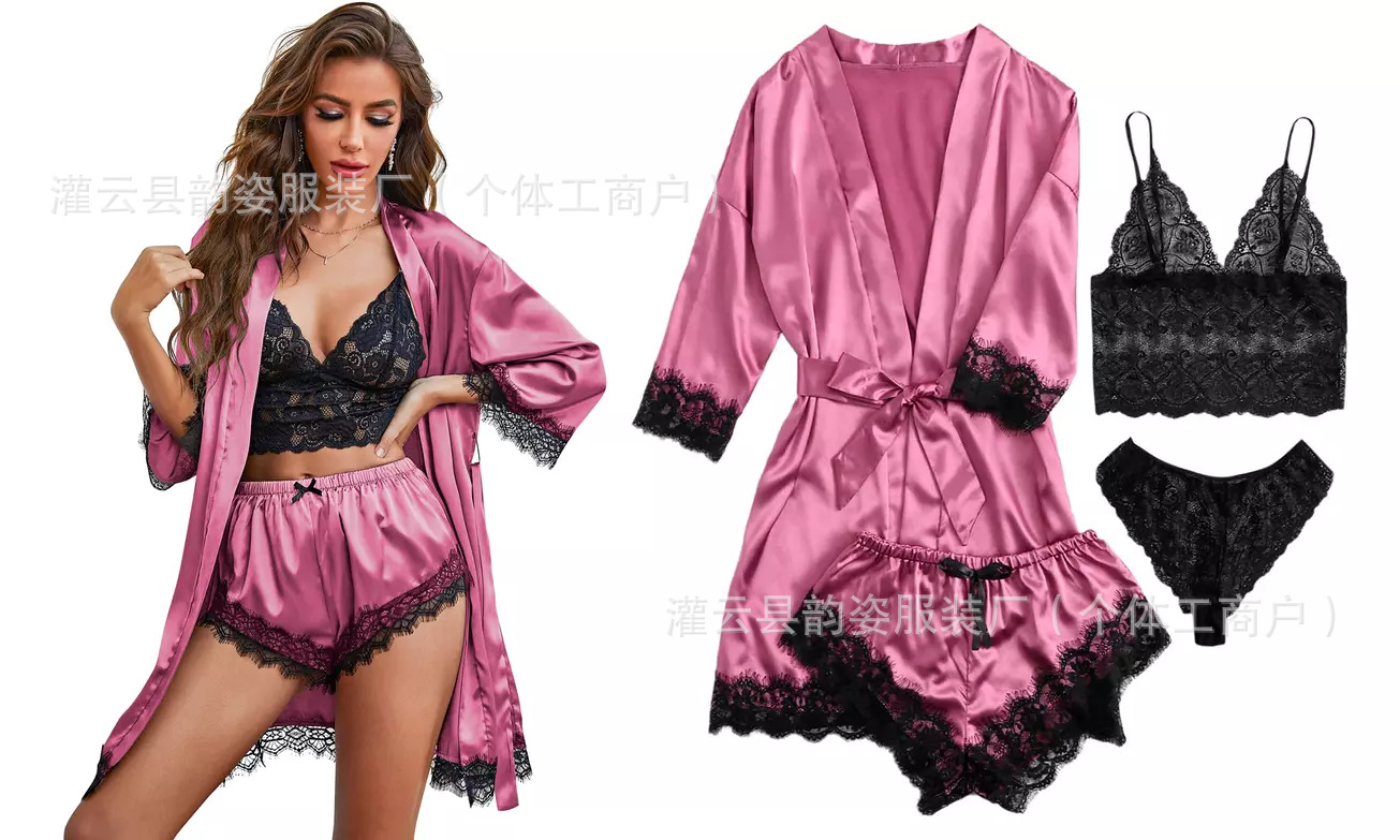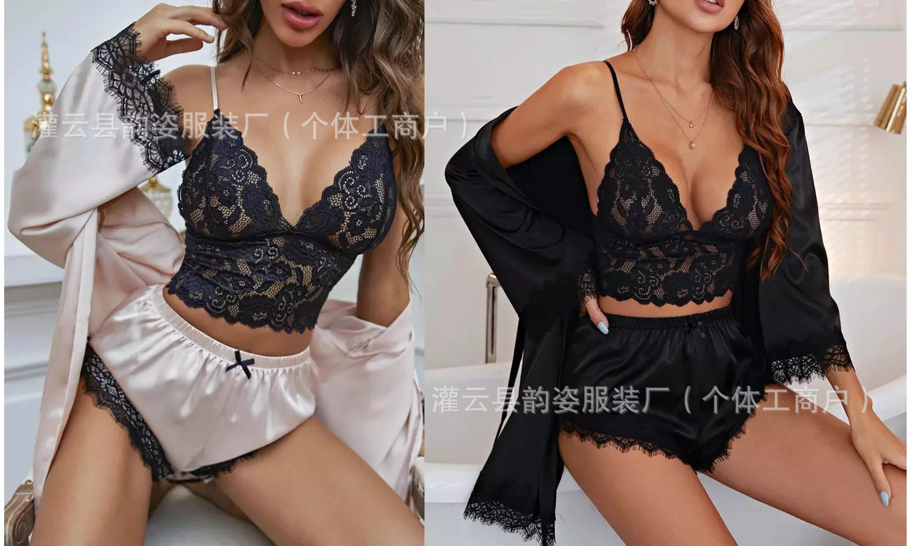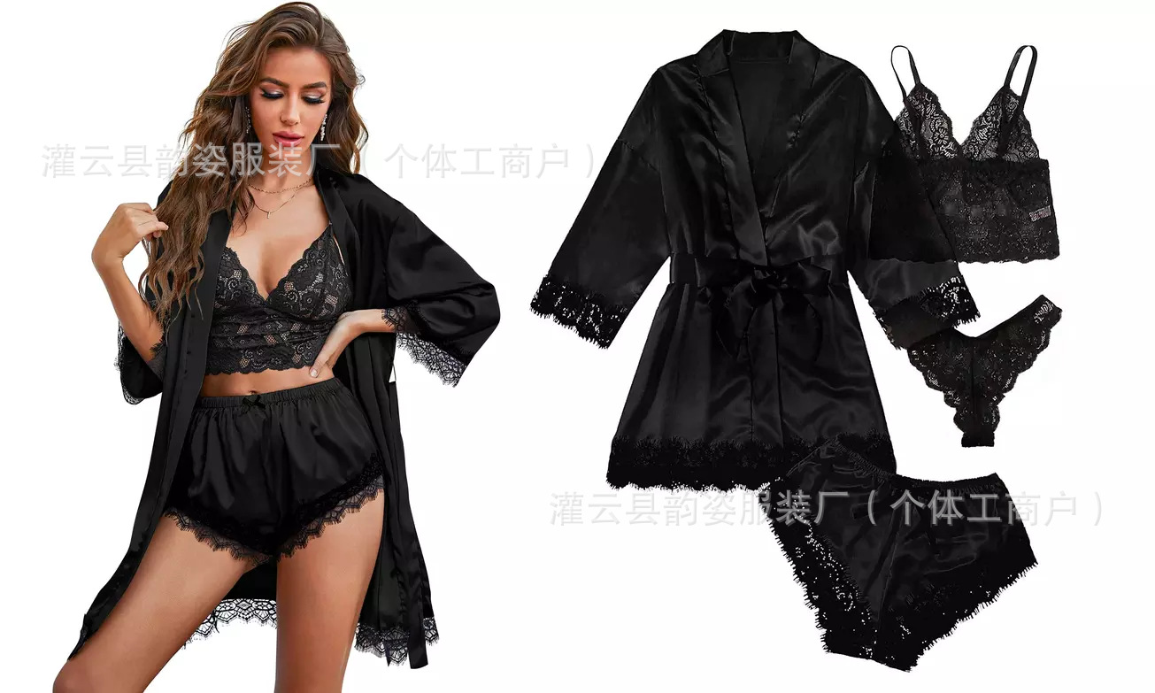크로스보더 섹시 레이스 란제리 여성용 가을 겨울 실크 잠옷 에로틱 잠옷 세트 순수한 욕망 홈웨어 도매