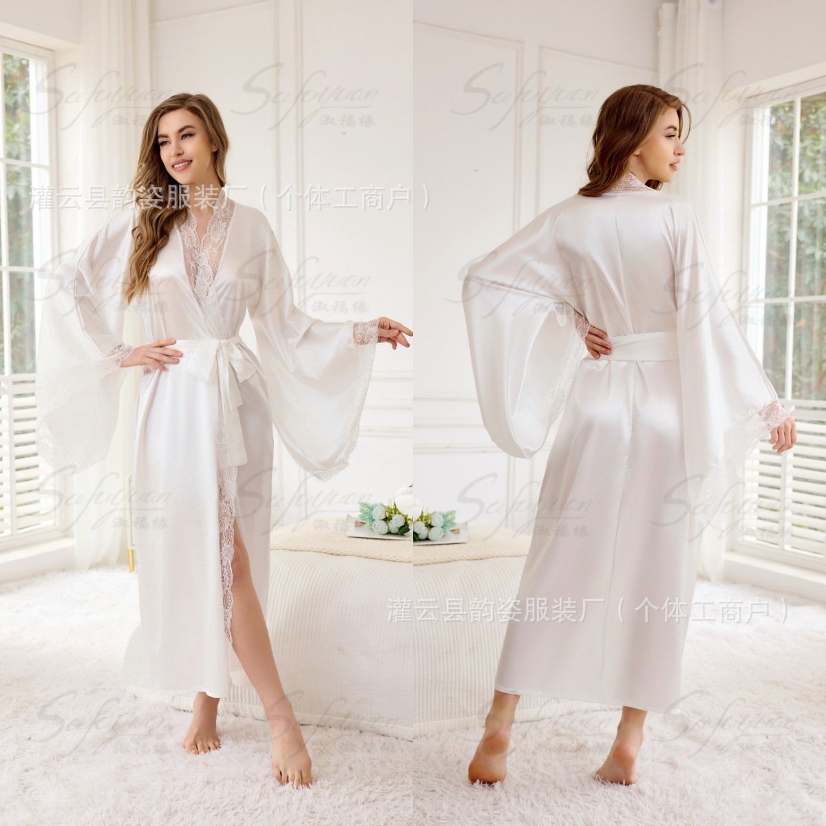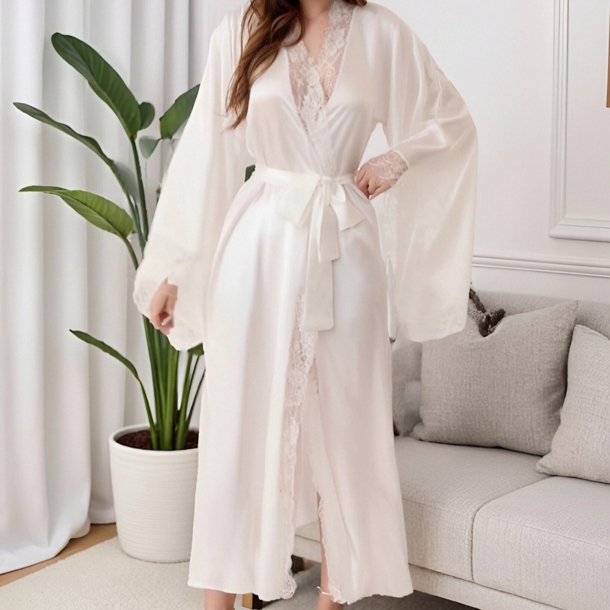 크로스보더 테무 여성용 플러스 사이즈 가운, 홈웨어, 여름 레이스 섹시 속옷, 목욕가운, 잠옷, 롱 가운 도매