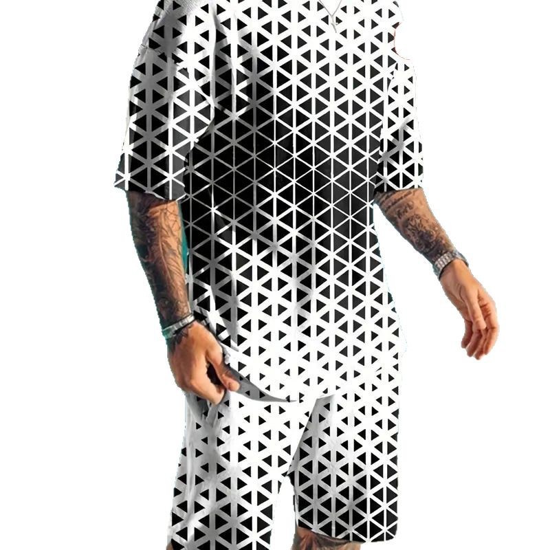 해변 휴가 비치 셔츠 세트 남성 여름 루즈 캐주얼 남성 반팔 반바지 투피스 세트