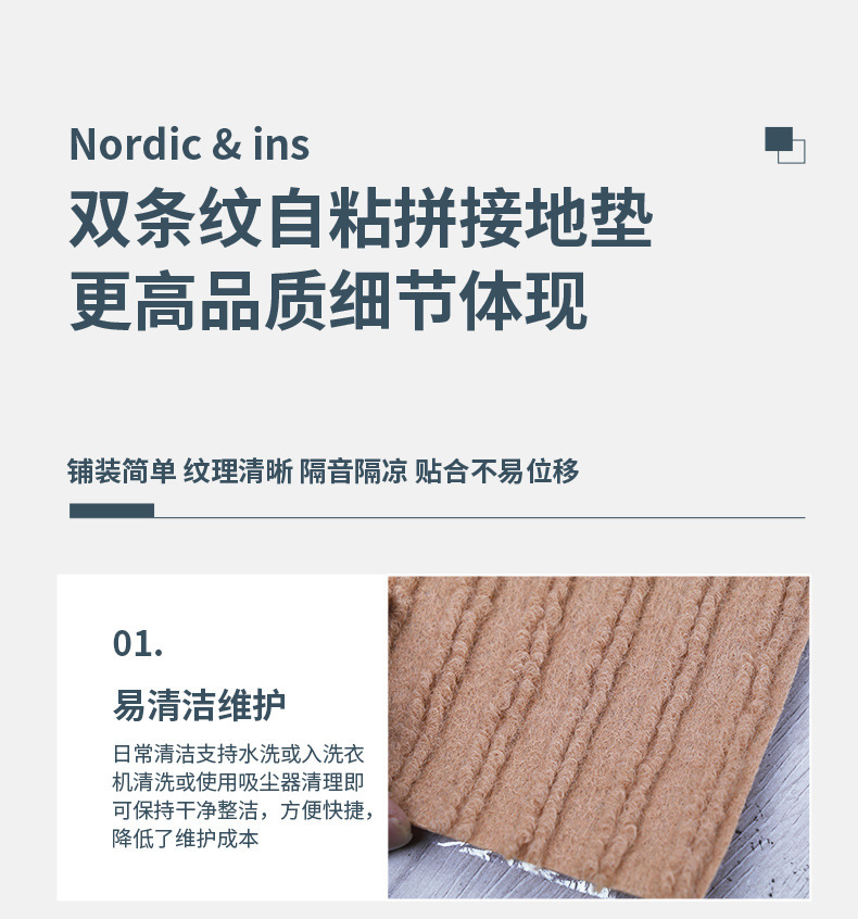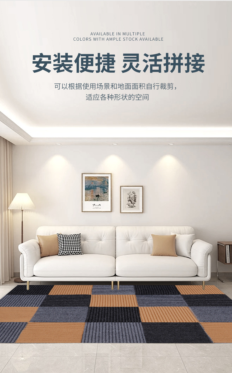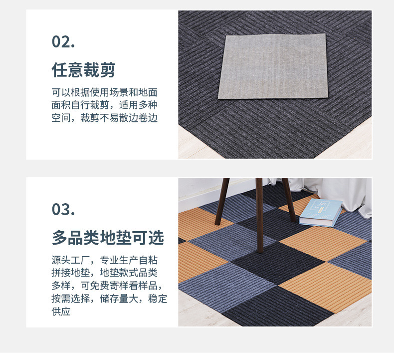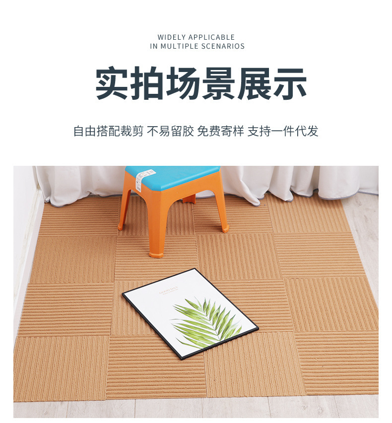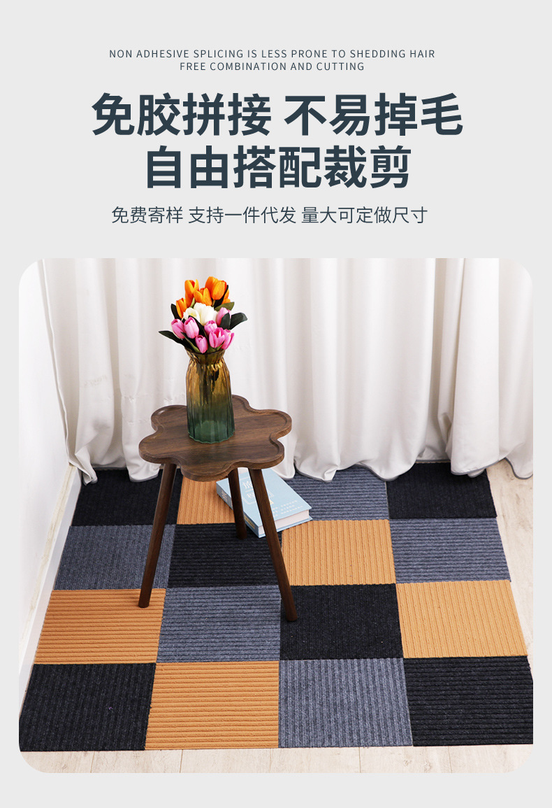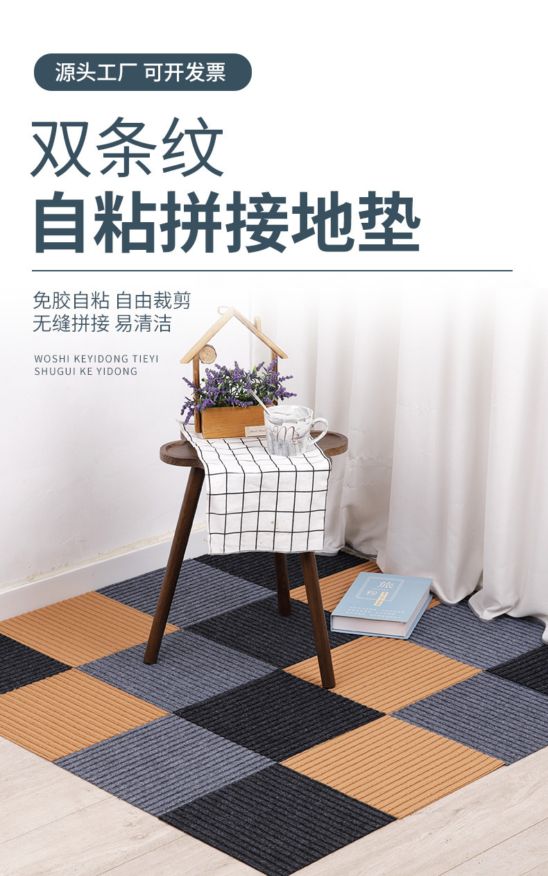 사무실 자체 접착 바닥 매트, 접착제가 포함된 사각형 접합 카펫, 흔적을 남기지 않고 세척 가능, 전체 바닥 카펫, 줄무늬 카펫