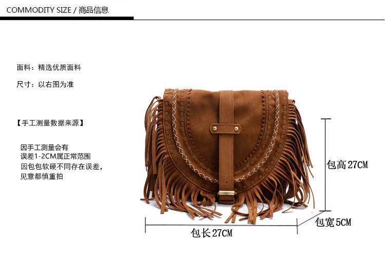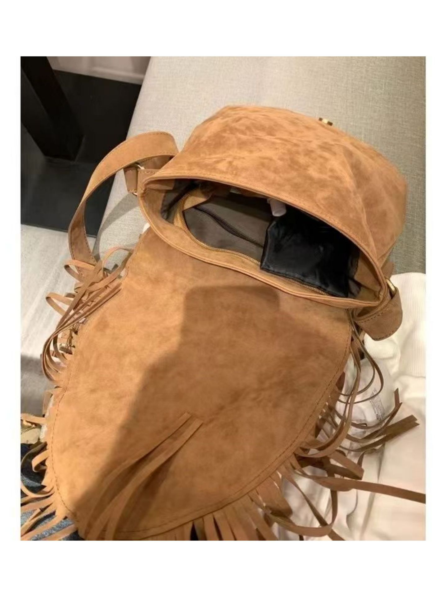 2025 새로운 모조 스웨이드 아메리칸 보헤미안 술 가방 여성 복고풍 안장 가방 패션 어깨 작은 가방 크로스 바디