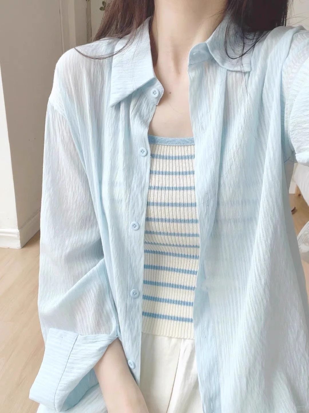 캐주얼 스타일 자외선 차단 셔츠 여성 쉬폰 셔츠 긴팔 2025 신작 여름 가볍고 얇은 가디건 얇은 코트