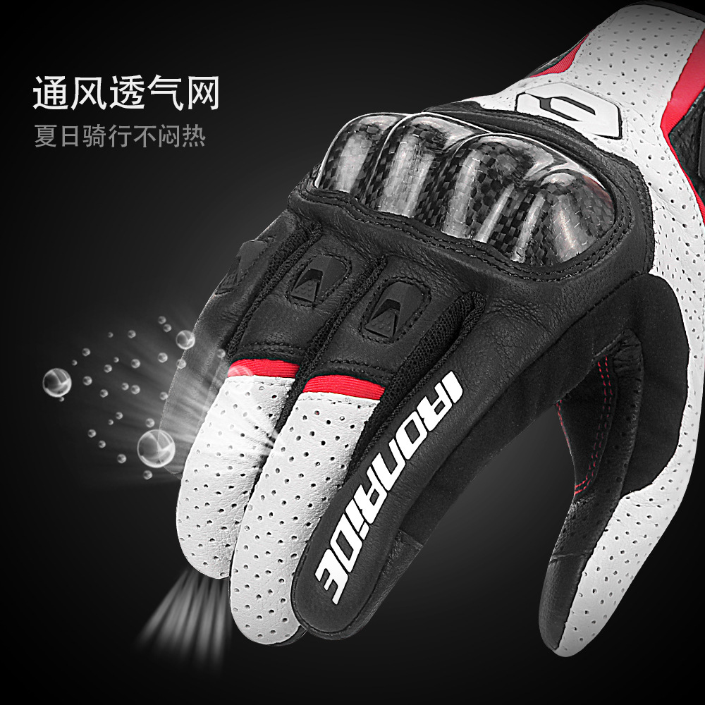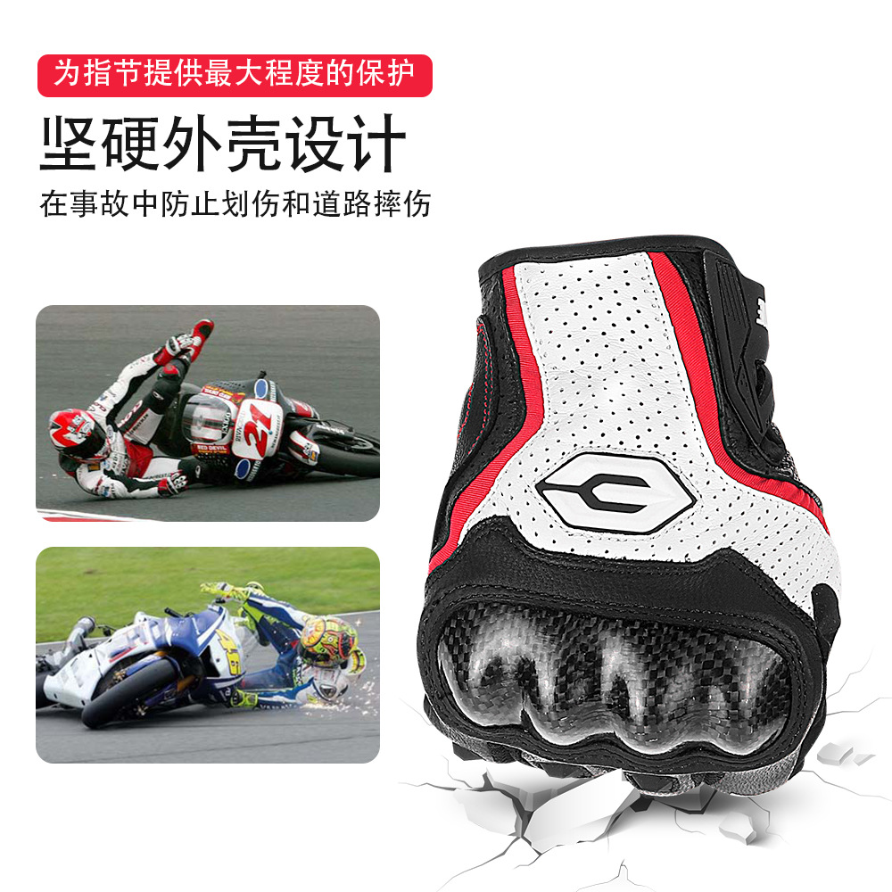 오토바이 라이딩 장갑, 가죽 여름용 카본 파이버 낙상 방지 통기성 오프로드 레이싱 보호 오토바이 장갑