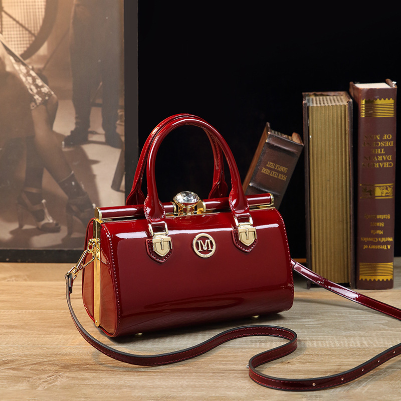 정품 가죽 여성용 가방 크로스 바디 백 심플 뉴 엄마 가방 중년 특허 가죽 핸드백 밝은 가죽 클립 패션 숄더백