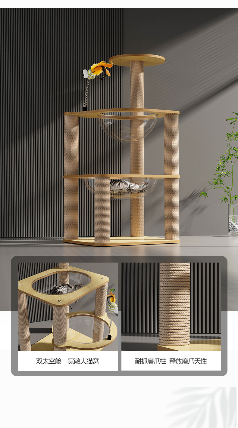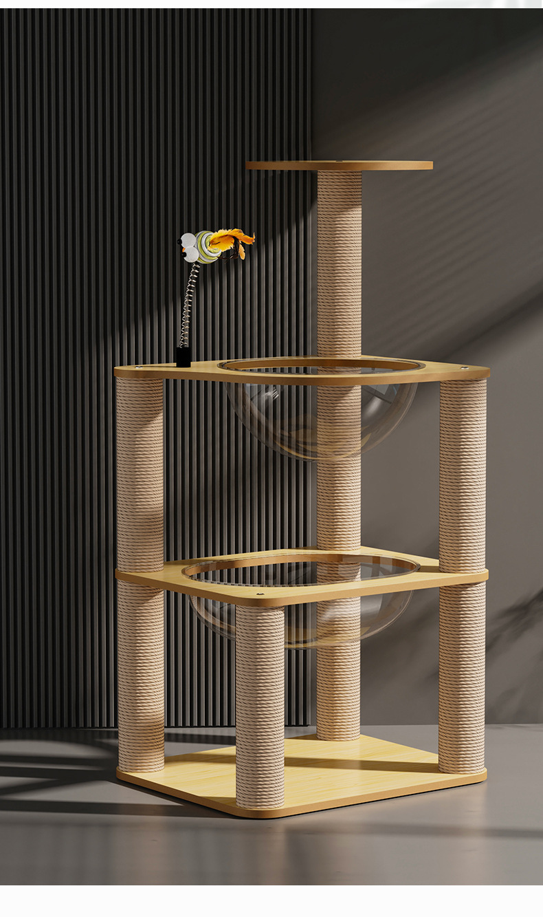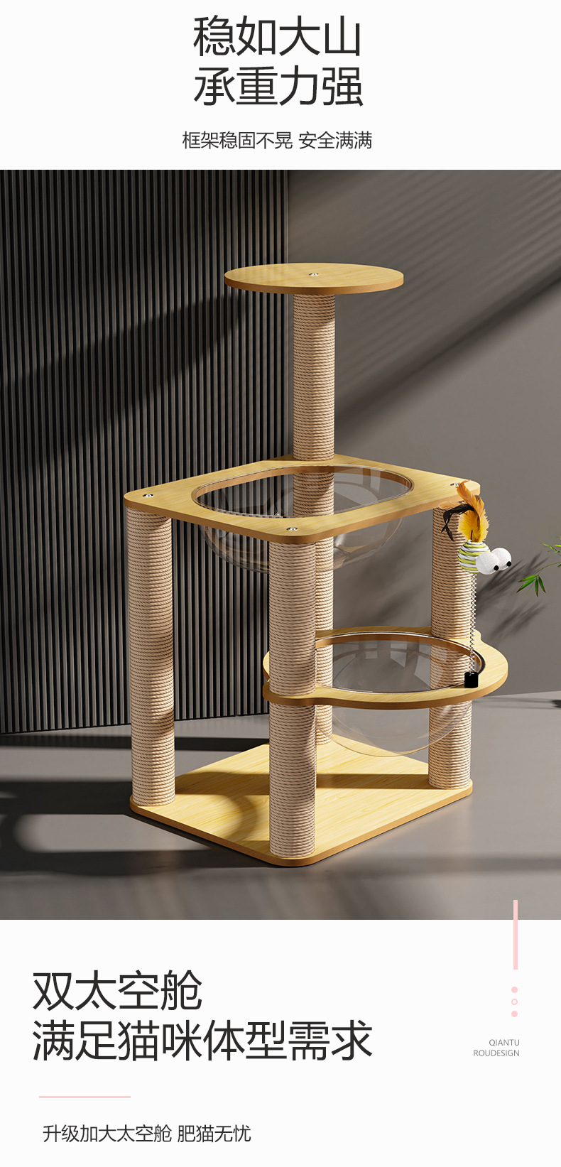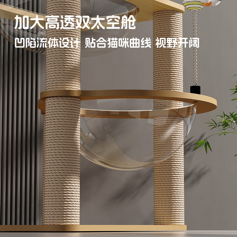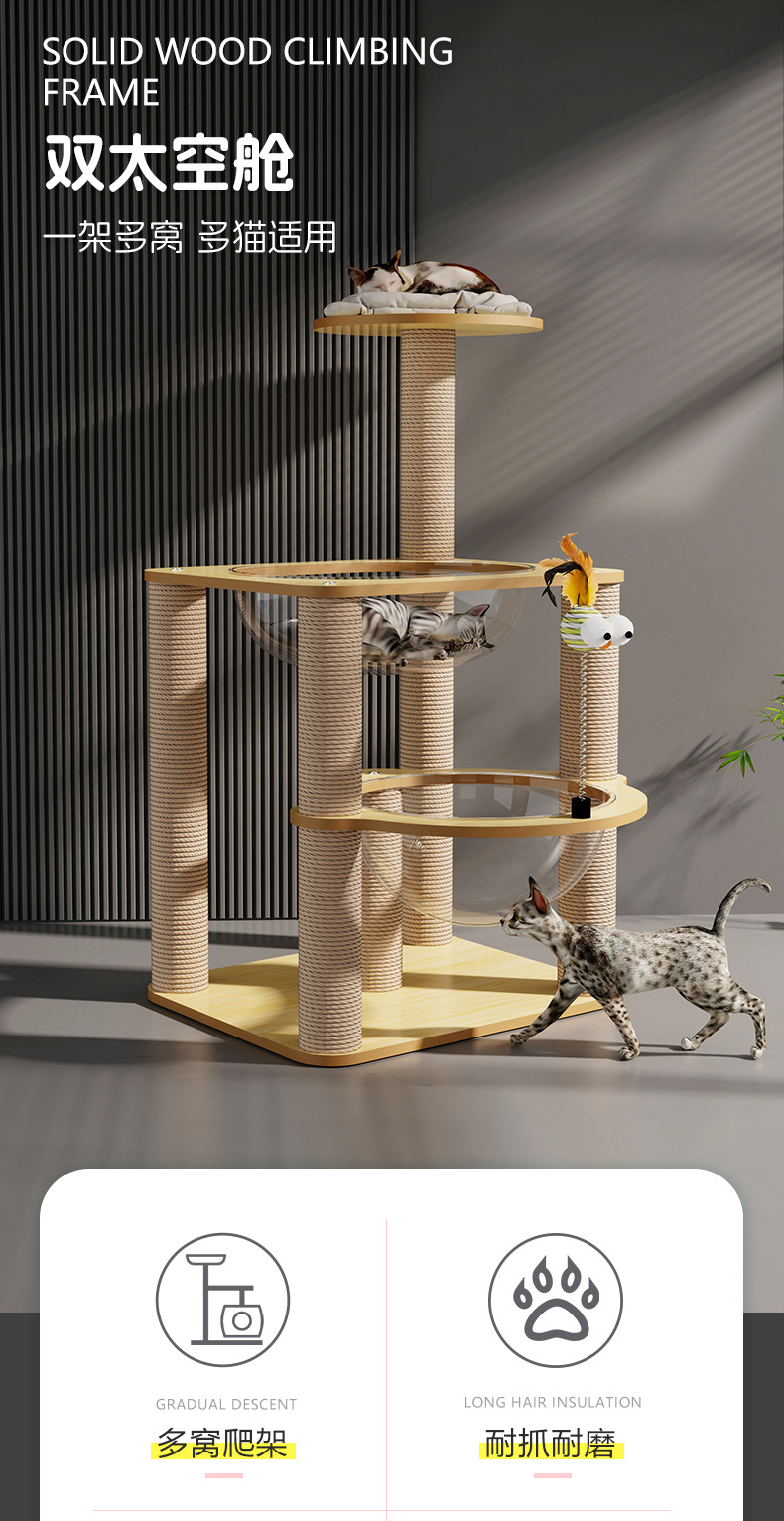 이중층 우주 캡슐 고양이 클라이밍 프레임, 고양이 둥지, 일체형 다층 고양이 점프 플랫폼, 고양이 놀이 및 수면 일체형 소형 사이잘 고양이 스크래치 포스트