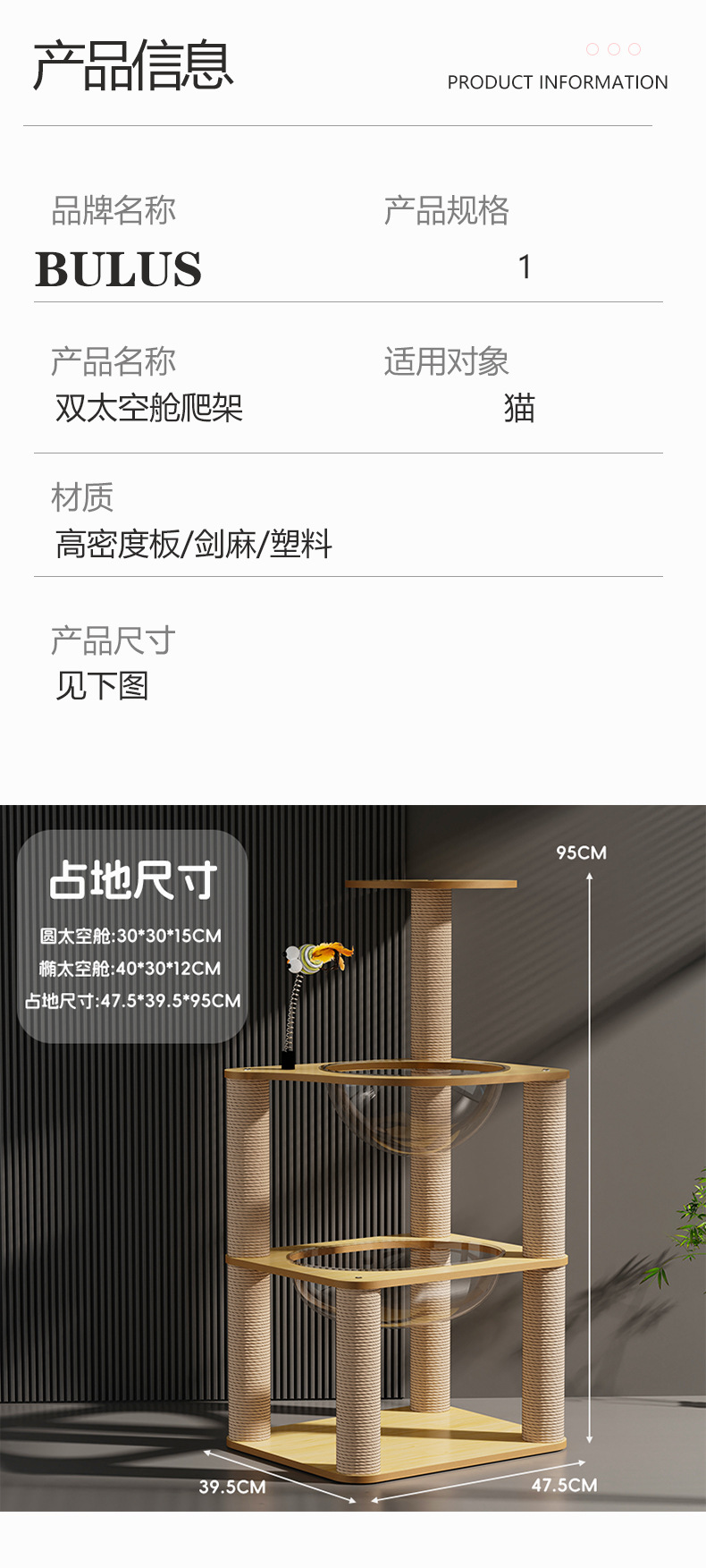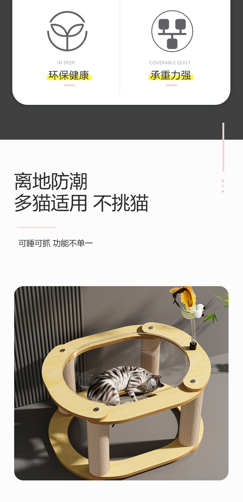 이층 우주 캡슐 고양이 등반 프레임(상단 원형 및 하단 타원형)