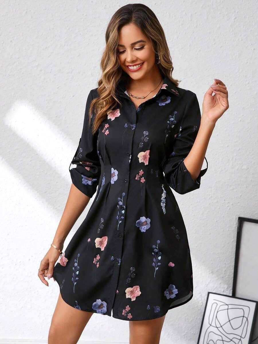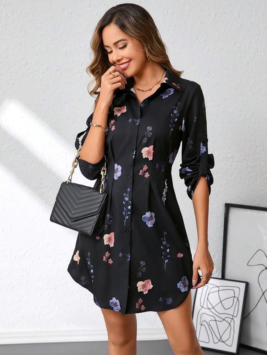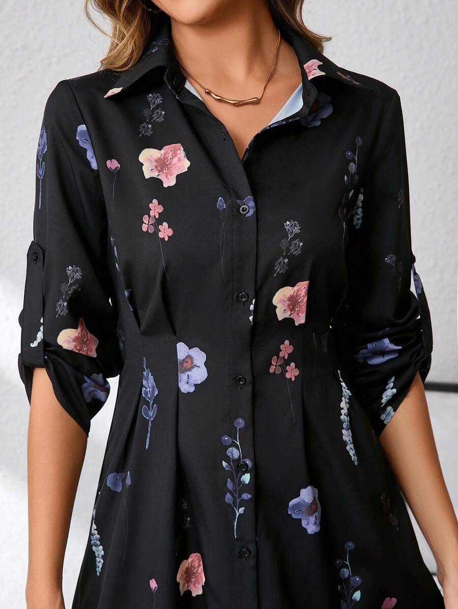 2025 Amazon Independent Station 대외 무역 유럽과 미국의 국경 간 새로운 꽃 패턴 여성 긴팔 셔츠 드레스