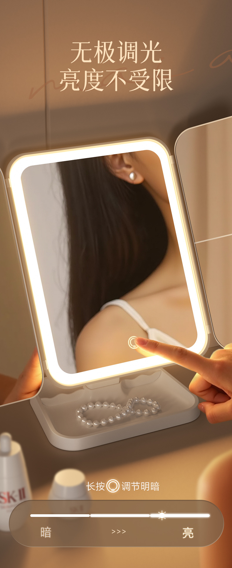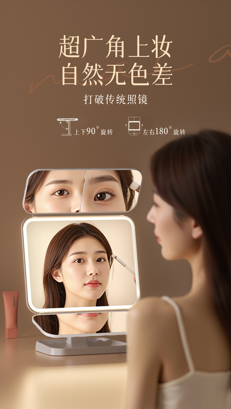 거울 화장 거울 LED 데스크탑 데스크탑 접이식 가정용 학생 기숙사 확대 화장대 미용 거울