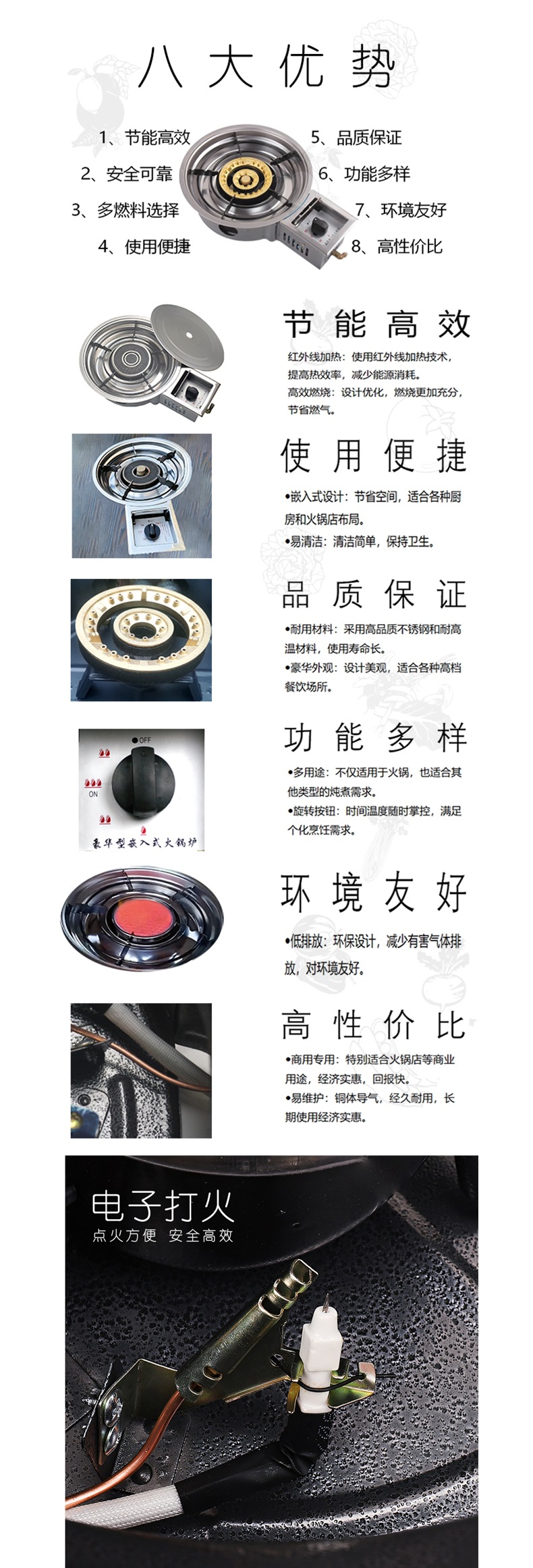 상업용 한국식 임베디드 핫 스토브 전기 스토브 가스 스토브 적외선 에너지 절약형 화염 보호 액화 가스 천연 가스