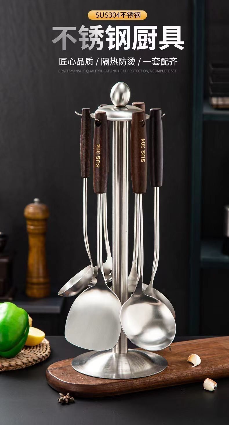 스테인리스 주걱 나무 손잡이 조리용 숟가락 가정용 주방 방열 조리도구 세트