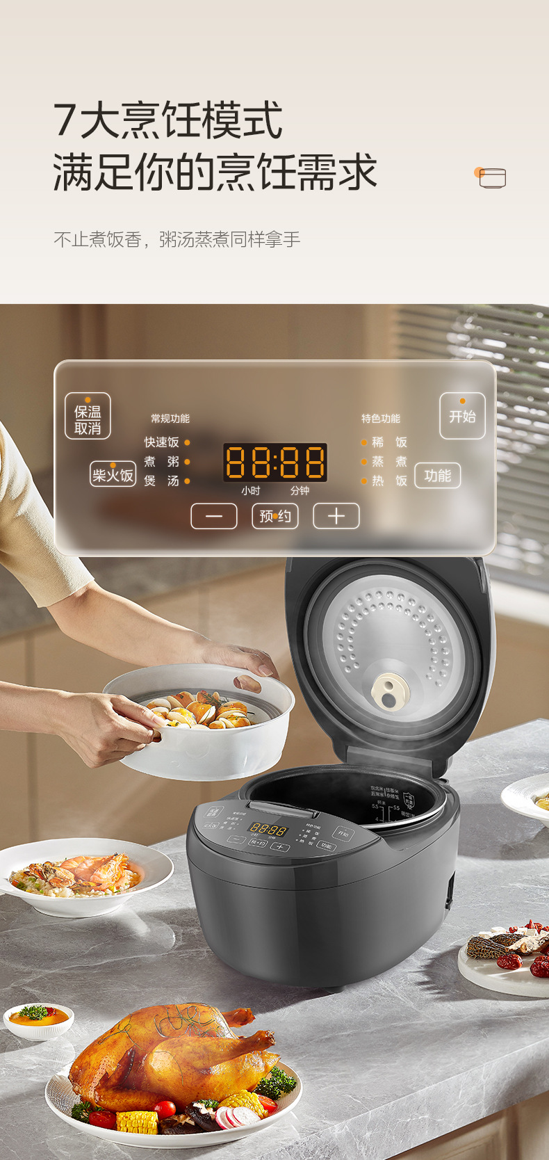 전기밥솥 가정용 전기밥솥 소형 다기능 붙지 않는 밥솥 3L24H 예약