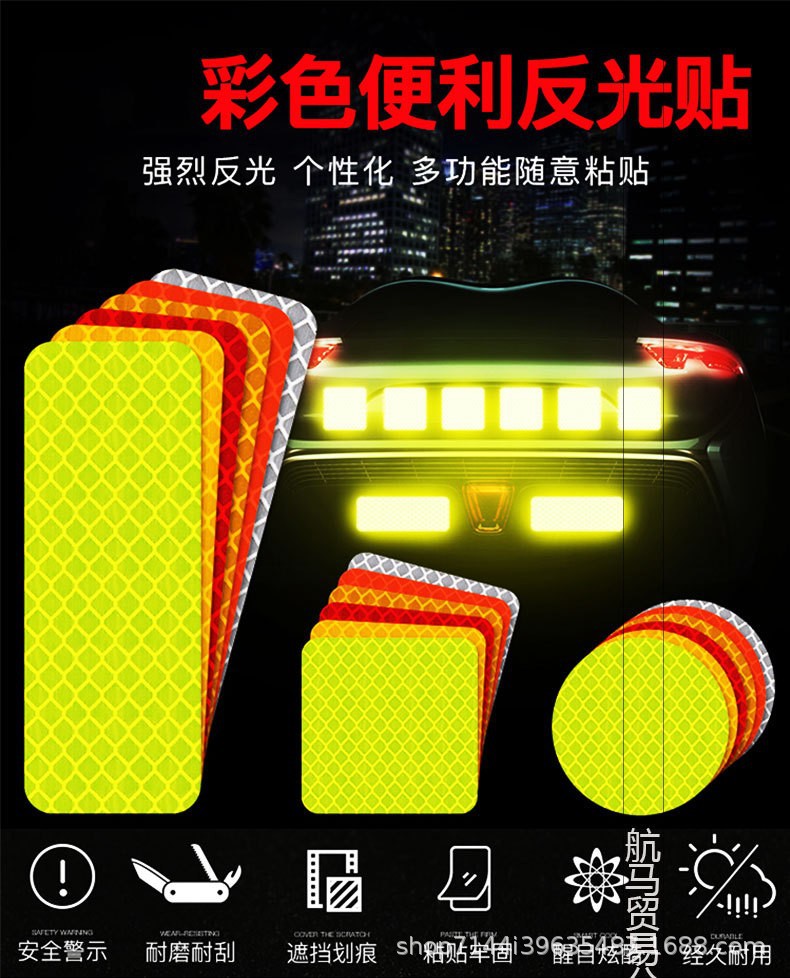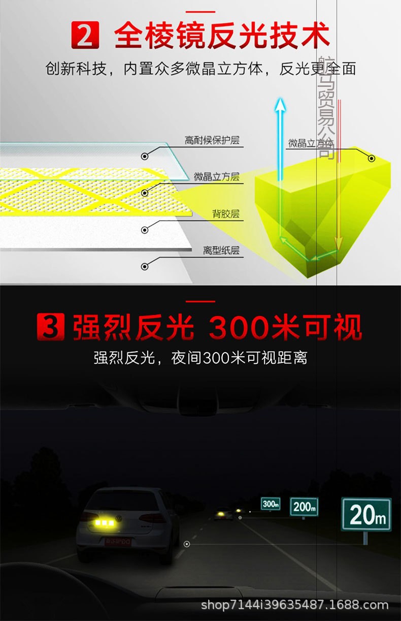 반사 자동차 스티커, 야광 자동차 스티커, 경고 표시, 자전거 전기 오토바이 라이딩 휠 눈썹 바디 스티커